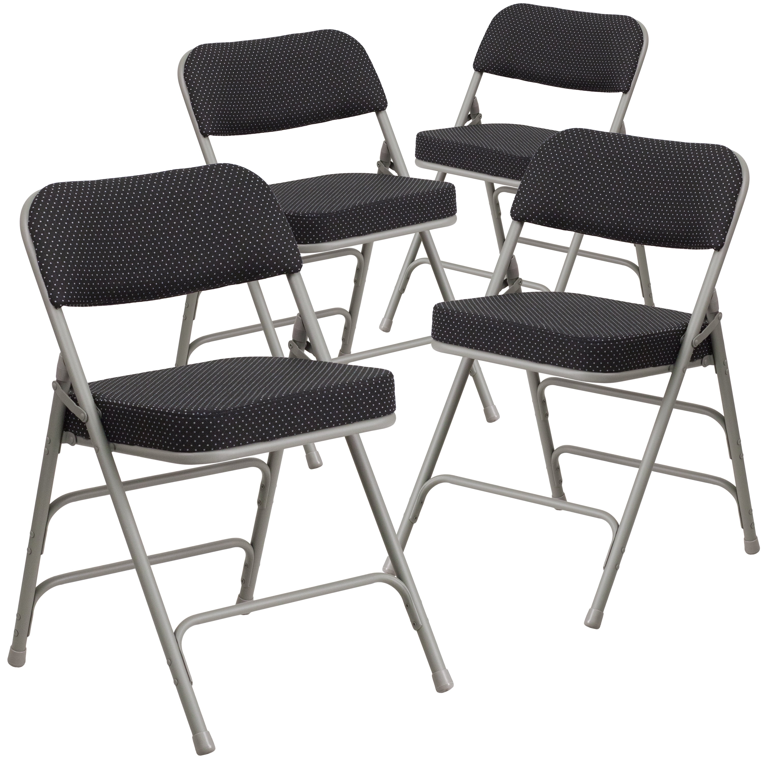 Flash Furniture 4 Pack HERCULES Series Premium Curved Triple Braced & Double Hinged Black Pin-Dot Fabric Metal Folding Chair