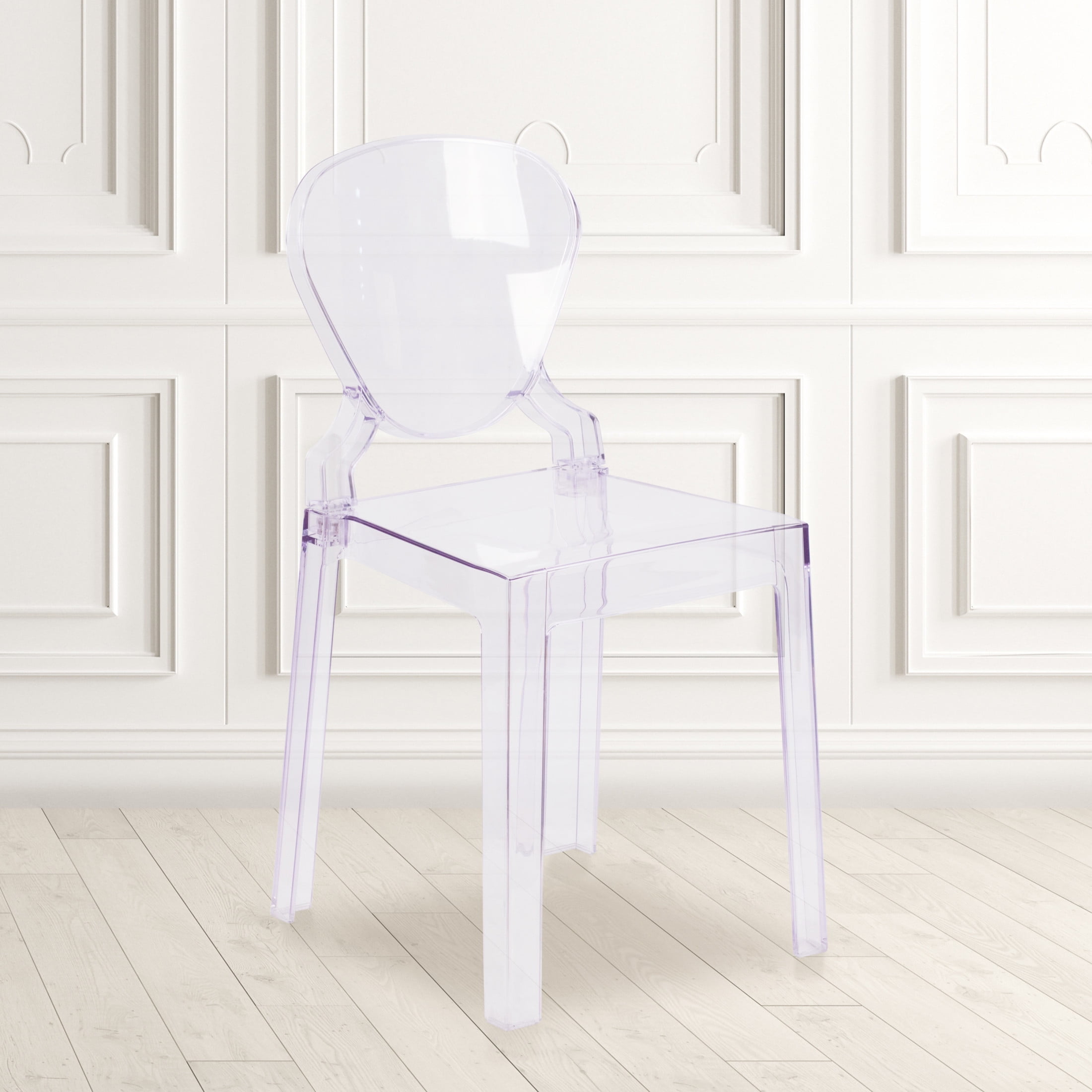 The transparent ghost chair brings modern design, elegance and function to your home, restaurant and special events. This modern chair with its near invisibility highlights your artwork and other furniture, lightens a crowded space and can make a small room appear larger. The contoured, polycarbonate molded seat provides comfort. Protective floor glides protect your floor by sliding smoothly when you need to move these beautiful chairs. Designed for indoor-outdoor and commercial use, the understated ghost chair is a classic accent chair that highlights almost any decor without blocking the view.