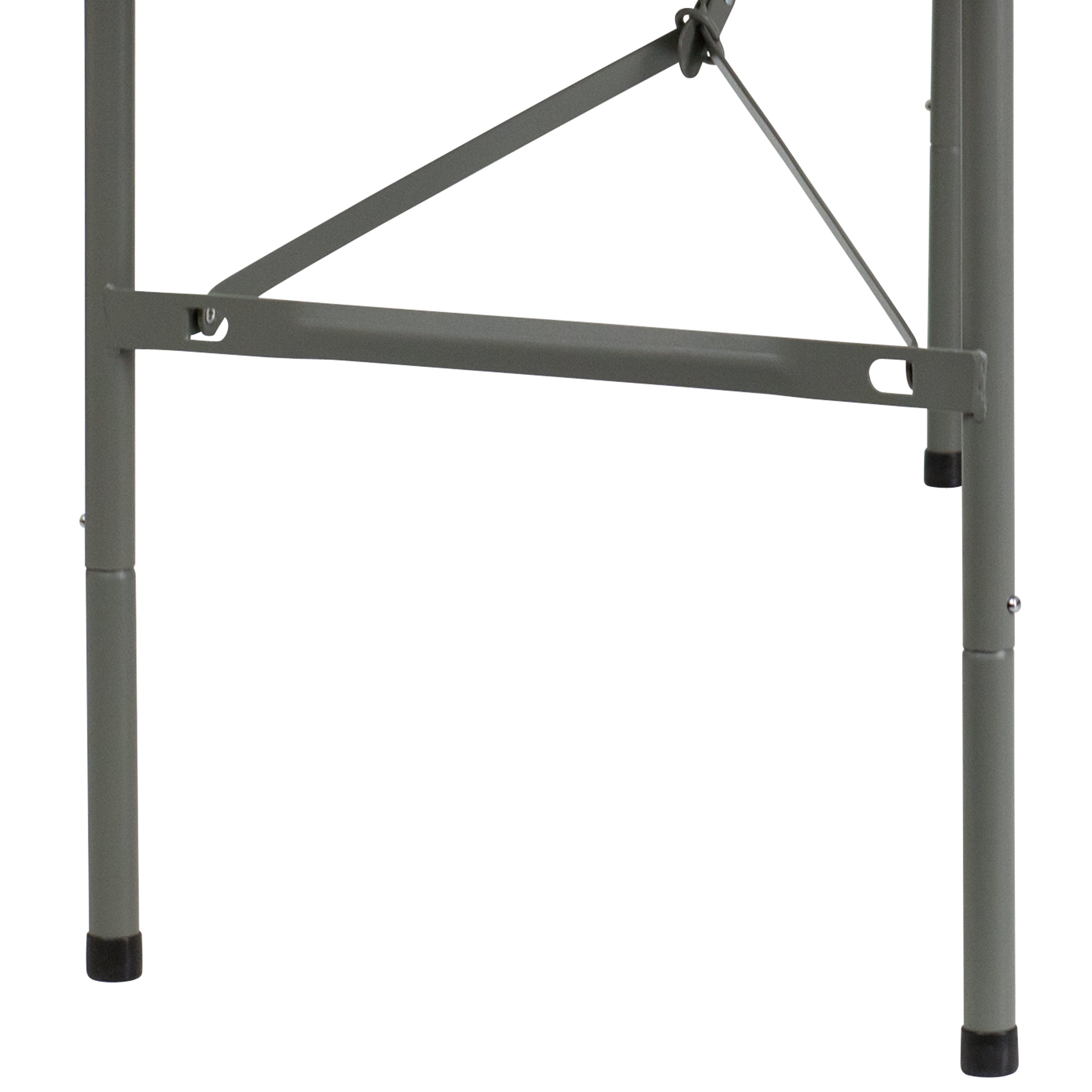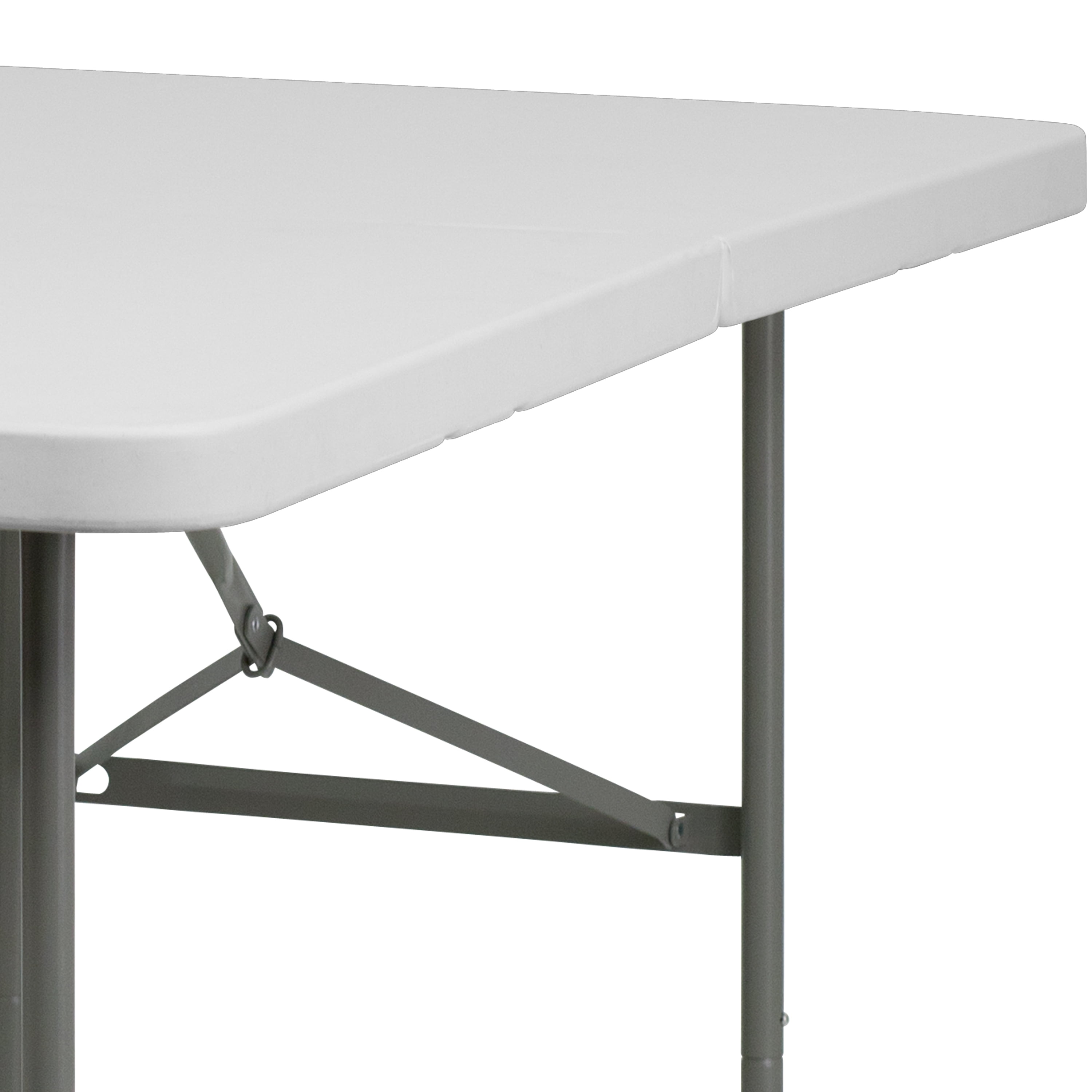 Ready To Use Commercial Table 5′ Folding Table Seats up to 6 Adults 220 lb. Static Load Capacity 1.75″ Thick Granite White Top is waterproof, impact and stain resistant Folds in half for storage and travel Includes convenient carrying handle Gray Powder Coated Locking Legs with protective floor caps Legs fold underneath top for flat storage