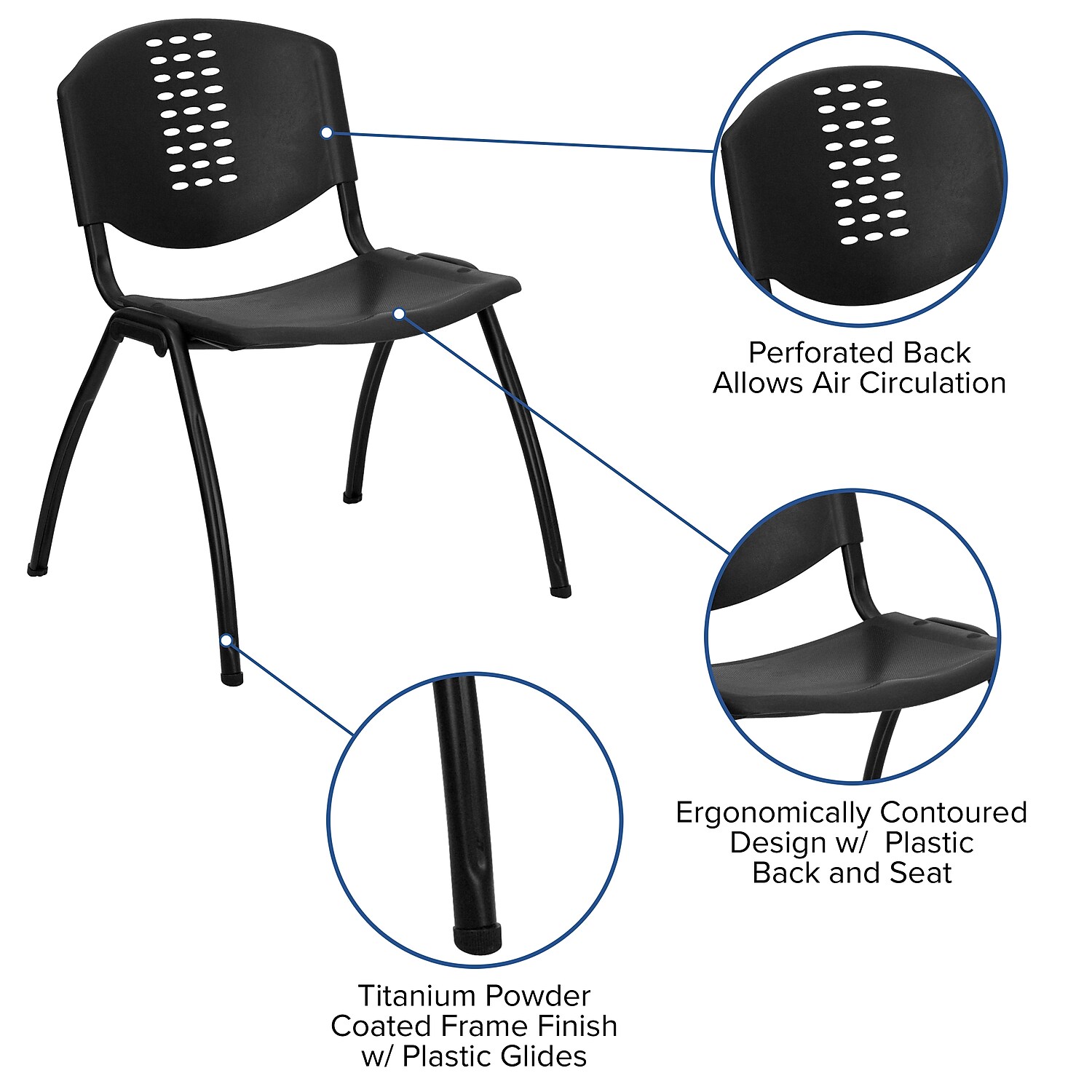Flash Furniture 5 Pack HERCULES Series 880 lb. Capacity Black Plastic Stack Chair with Oval Cutout Back and Black Frame