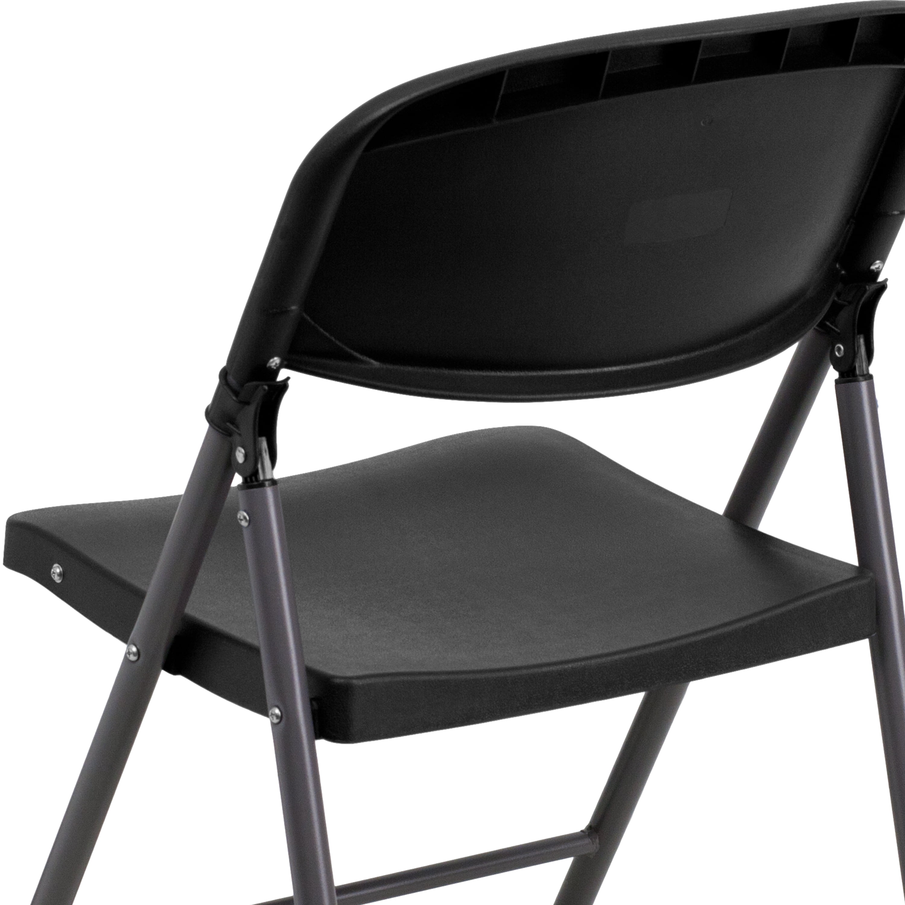 Flash Furniture 6 Pack HERCULES Series 330 lb. Capacity Black Plastic Folding Chair with Charcoal Frame