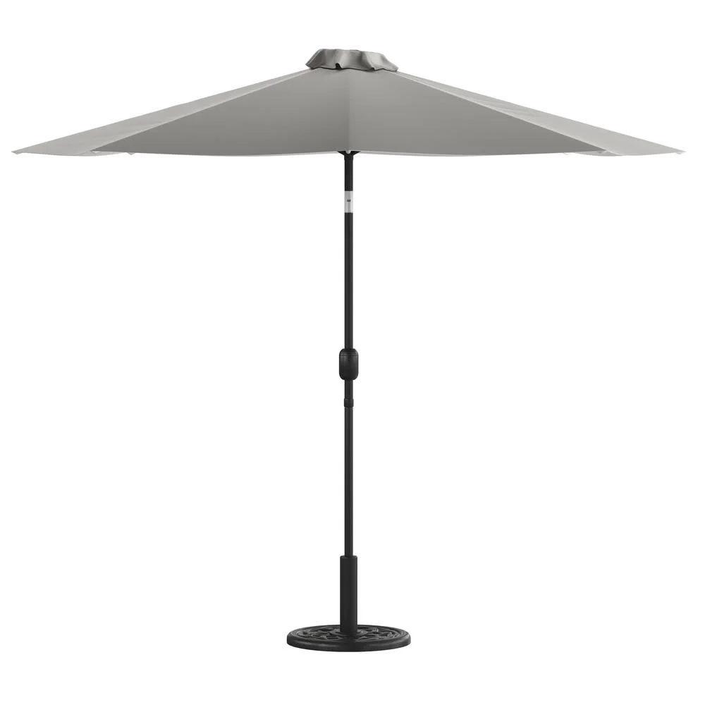 Flash Furniture 8′ Gray Octagon Patio Umbrella and Base with Stand Adjustable 9 FT Round Patio Umbrella and Concrete Base Bundled Set for home or business use Patio Umbrella: 5.5-104.5″W x 5.5- 104.5″D x 96.5″H Water Resistant Polyester Fabric Top, aluminum crank, push button tilt Rust and Corrosion Resistant Powder Coated 1.5 Inch Diameter Poles for longevity and durability Quick Setup: Press in the lock button and attach pole extension Universal Cement Umbrella Base: 19.25″W x 19.25″D x 3.25″H Plastic Polymer Covering resists cracking and rotting Powder Coated Steel Post is weather resistant, Post Size: 2.25″W x 2.25″D x 10″H Includes 3 Adapters to accommodate up to a 2 inch pole diameter Freestanding 9 ft. patio umbrella and base set ideal for outdoor dining, poolside shade and hanging out on the deck PRODUCT MEASUREMENTS: Umbrella Size: 5.5-104.5″W x 5.5-104.5″D x 101.25″H; Base Size: 19.25″W x 19.25″D x 3.25″H; Post Size: 2.25″W x 2.25″D x 10″H Flash Furniture 8′ Gray Octagon Patio Umbrella and Base with Stand Adjustable 9 FT Round Patio Umbrella and Concrete Base Bundled Set for home or business use Patio Umbrella: 5.5-104.5″W x 5.5- 104.5″D x 96.5″H Water Resistant Polyester Fabric Top, aluminum crank, push button tilt Rust and Corrosion Resistant Powder Coated 1.5 Inch Diameter Poles for longevity and durability Quick Setup: Press in the lock button and attach pole extension Universal Cement Umbrella Base: 19.25″W x 19.25″D x 3.25″H Plastic Polymer Covering resists cracking and rotting Powder Coated Steel Post is weather resistant, Post Size: 2.25″W x 2.25″D x 10″H Includes 3 Adapters to accommodate up to a 2 inch pole diameter Freestanding 9 ft. patio umbrella and base set ideal for outdoor dining, poolside shade and hanging out on the deck PRODUCT MEASUREMENTS: Umbrella Size: 5.5-104.5″W x 5.5-104.5″D x 101.25″H; Base Size: 19.25″W x 19.25″D x 3.25″H; Post Size: 2.25″W x 2.25″D x 10″H Flash Furniture 8′ Gray Octagon Patio Umbrella and Base with Stand Adjustable 9 FT Round Patio Umbrella and Concrete Base Bundled Set for home or business use Patio Umbrella: 5.5-104.5″W x 5.5- 104.5″D x 96.5″H Water Resistant Polyester Fabric Top, aluminum crank, push button tilt Rust and Corrosion Resistant Powder Coated 1.5 Inch Diameter Poles for longevity and durability Quick Setup: Press in the lock button and attach pole extension Universal Cement Umbrella Base: 19.25″W x 19.25″D x 3.25″H Plastic Polymer Covering resists cracking and rotting Powder Coated Steel Post is weather resistant, Post Size: 2.25″W x 2.25″D x 10″H Includes 3 Adapters to accommodate up to a 2 inch pole diameter Freestanding 9 ft. patio umbrella and base set ideal for outdoor dining, poolside shade and hanging out on the deck PRODUCT MEASUREMENTS: Umbrella Size: 5.5-104.5″W x 5.5-104.5″D x 101.25″H; Base Size: 19.25″W x 19.25″D x 3.25″H; Post Size: 2.25″W x 2.25″D x 10″H Flash Furniture 8′ Gray Octagon Patio Umbrella and Base with Stand Adjustable 9 FT Round Patio Umbrella and Concrete Base Bundled Set for home or business use Patio Umbrella: 5.5-104.5″W x 5.5- 104.5″D x 96.5″H Water Resistant Polyester Fabric Top, aluminum crank, push button tilt Rust and Corrosion Resistant Powder Coated 1.5 Inch Diameter Poles for longevity and durability Quick Setup: Press in the lock button and attach pole extension Universal Cement Umbrella Base: 19.25″W x 19.25″D x 3.25″H Plastic Polymer Covering resists cracking and rotting Powder Coated Steel Post is weather resistant, Post Size: 2.25″W x 2.25″D x 10″H Includes 3 Adapters to accommodate up to a 2 inch pole diameter Freestanding 9 ft. patio umbrella and base set ideal for outdoor dining, poolside shade and hanging out on the deck PRODUCT MEASUREMENTS: Umbrella Size: 5.5-104.5″W x 5.5-104.5″D x 101.25″H; Base Size: 19.25″W x 19.25″D x 3.25″H; Post Size: 2.25″W x 2.25″D x 10″H