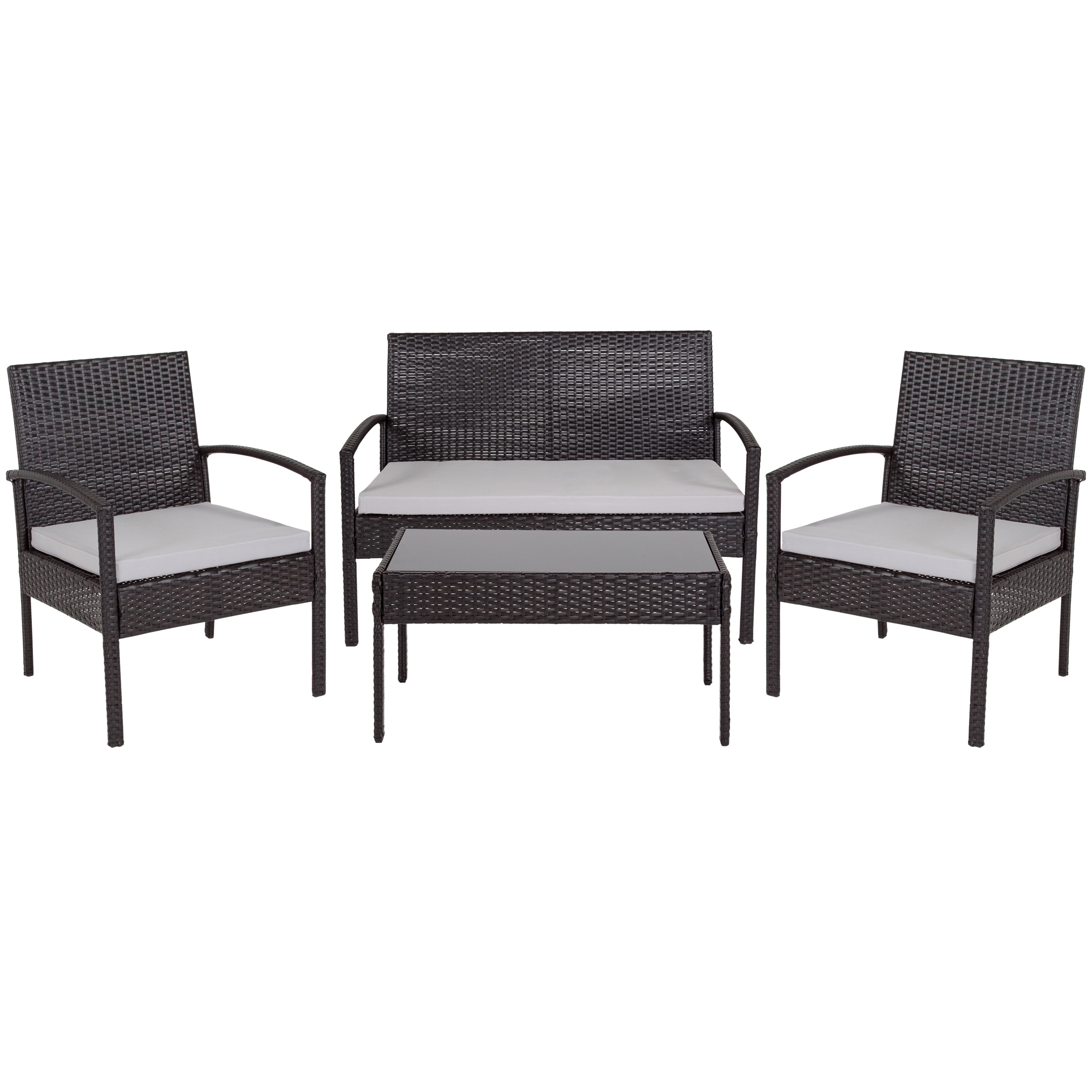 Flash Furniture Aransas Series 4 Piece Black Patio Set with Steel Frame and Gray Cushions