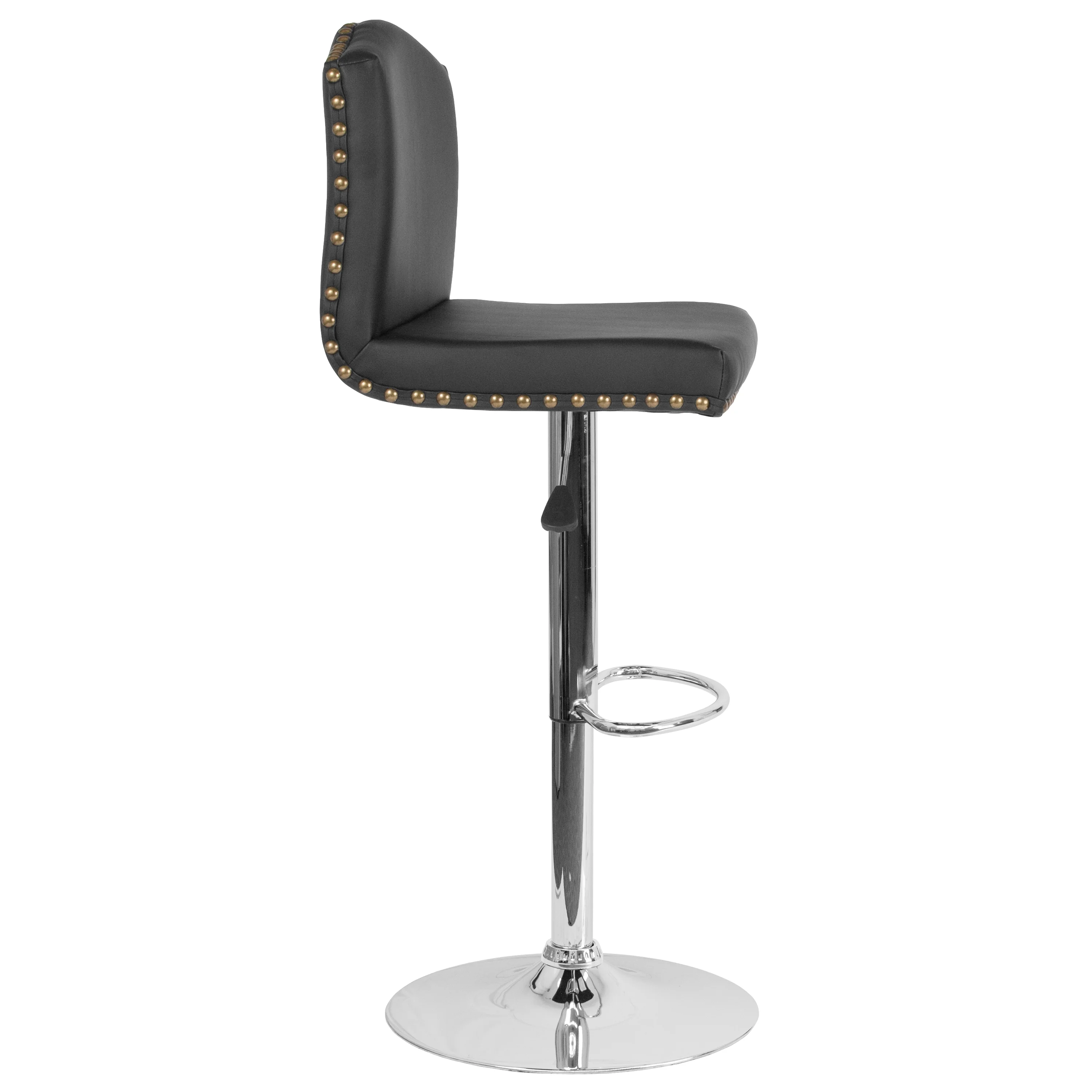 Flash Furniture Bellagio Contemporary Adjustable Height Barstool with Accent Nail Trim in Black LeatherSoft