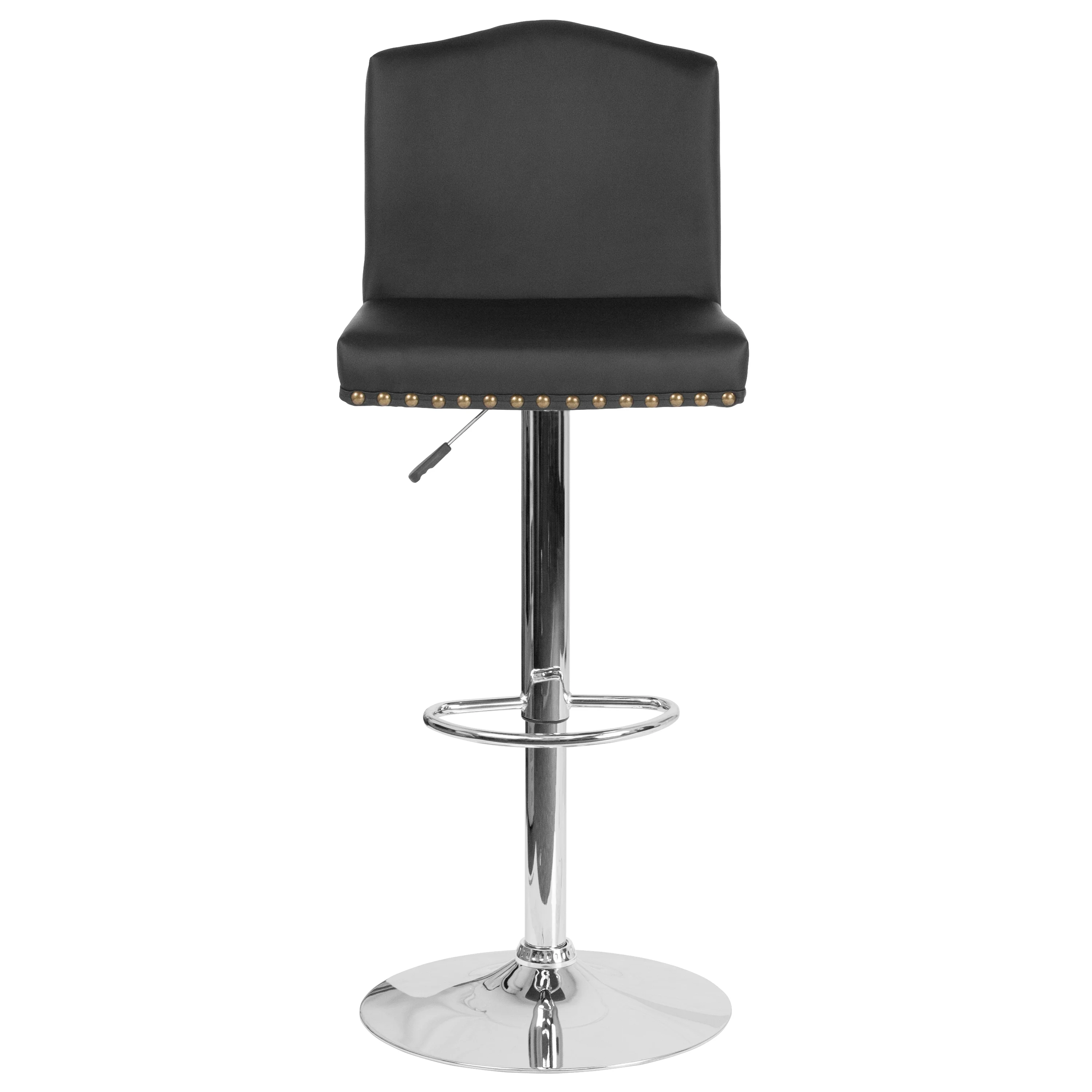 Flash Furniture Bellagio Contemporary Adjustable Height Barstool with Accent Nail Trim in Black LeatherSoft Contemporary Style Stool Arched Back Design Black LeatherSoft Upholstery for Softness and Durability Individual Gold Nail Accents CAL 117 Fire Retardant Foam Height Adjustable 360 Degree Swivel Seat with Gas Lift Seat Adjusts from Counter to Bar Height Footrest, Chrome Base Base Diameter: 17.625″ Designed for Residential Use Only PRODUCT MEASUREMENTS: Overall Size: 17″W x 17″D x 37-46.5″H; Seat Size: 17″W x 15″D x 24.5-33″H; Back Size: 17″W x 13.5″H