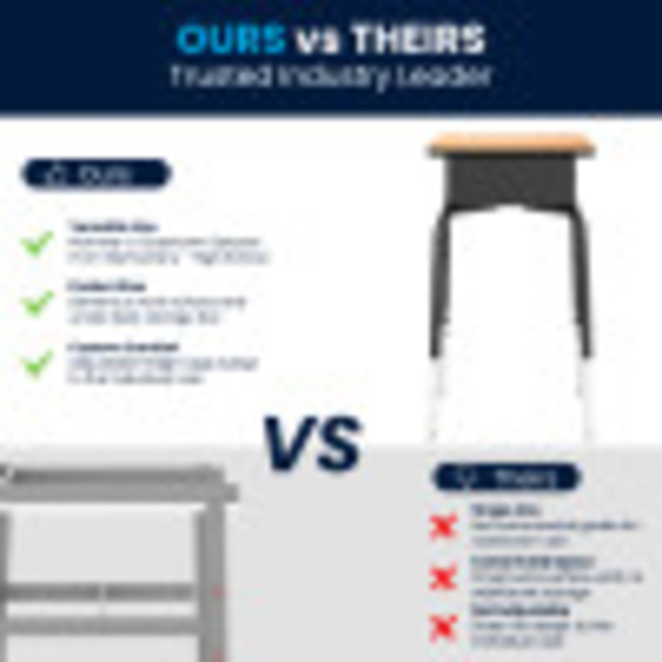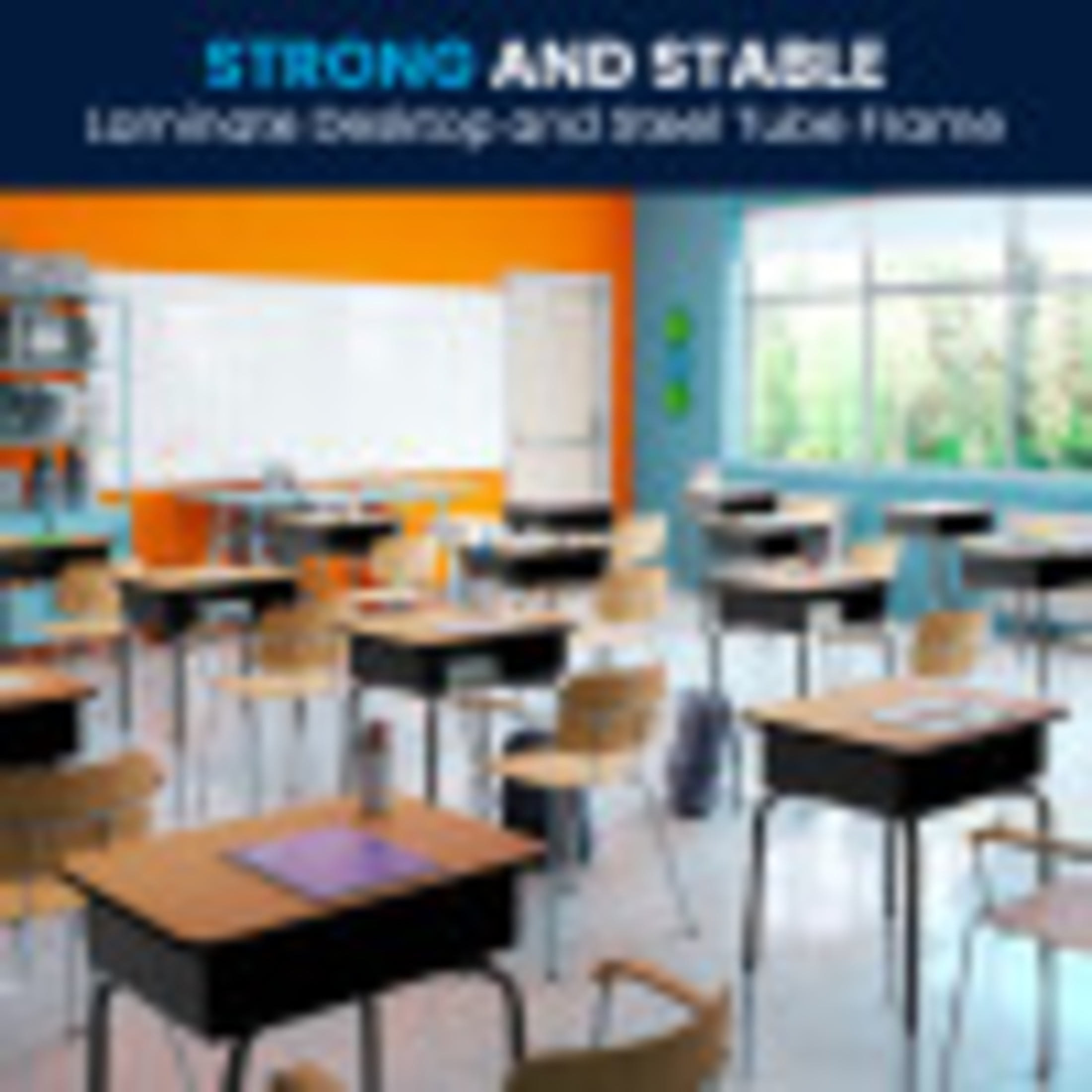 Amplify any classroom or workspace with the functional convenience of the Flash Furniture Billie Student Desk. This classroom desk makes for the perfect addition to any classroom for students from elementary through high school, a dedicated workspace for homework, or a home school desk for remote classes. Great for hardworking students of all sizes, the school desk is designed with height-adjustable legs to fit the needs of each student, and the legs feature adjustable nylon glides that keep the desk from wobbling on uneven floor surfaces. The classic open front desk features a 0.625″ thick high-pressure laminate top with a black lacquer edge treatment for additional safety, offering plenty of room for your students to spread out their assignments, open textbooks, and write or draw. Under the desktop, a spacious, heavy-duty metal book box provides ample storage space for students to tuck away their books, writing utensils, papers, and other school supplies or personal belongings, keeping items organized and easily accessible. The specialty crafted, one-of-a-kind crisscross tubular frame attaches to the book box at 5 points to ensure maximum stability.