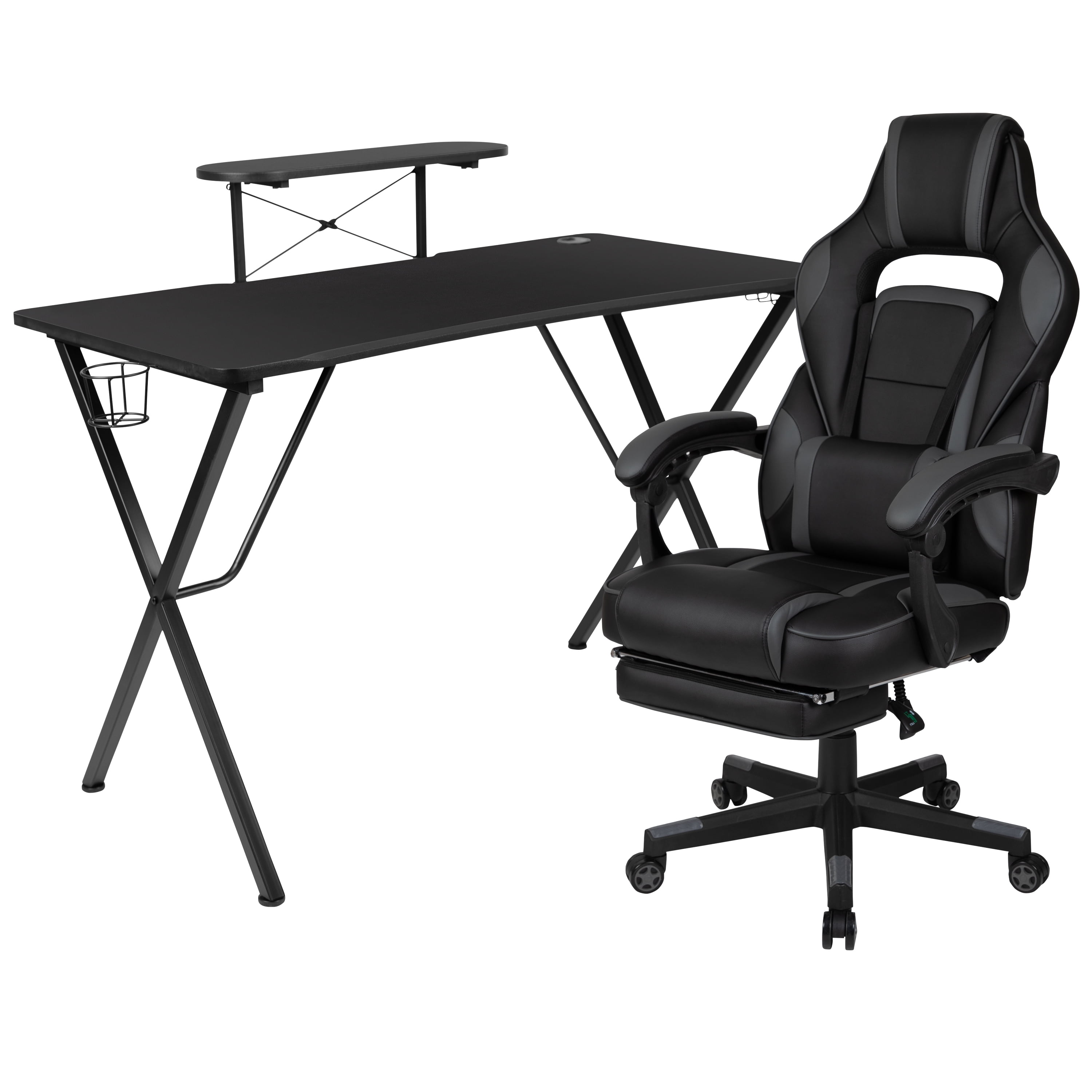 Flash Furniture Black Gaming Desk with Cup Holder/Headphone Hook/Monitor Stand & Black Reclining Back/Arms Gaming Chair with Footrest