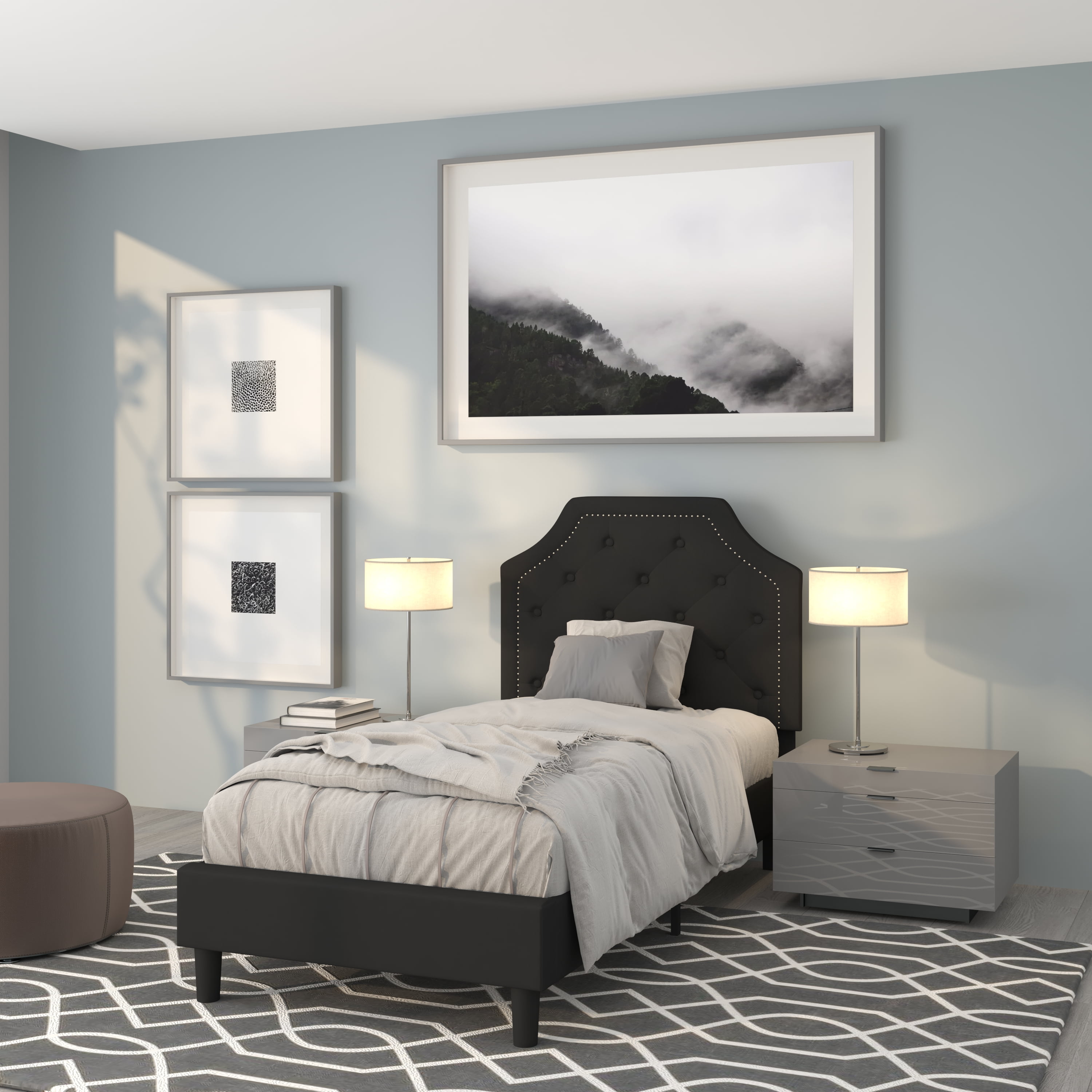 Flash Furniture Brighton Twin Size Tufted Upholstered Platform Bed in Black Fabric