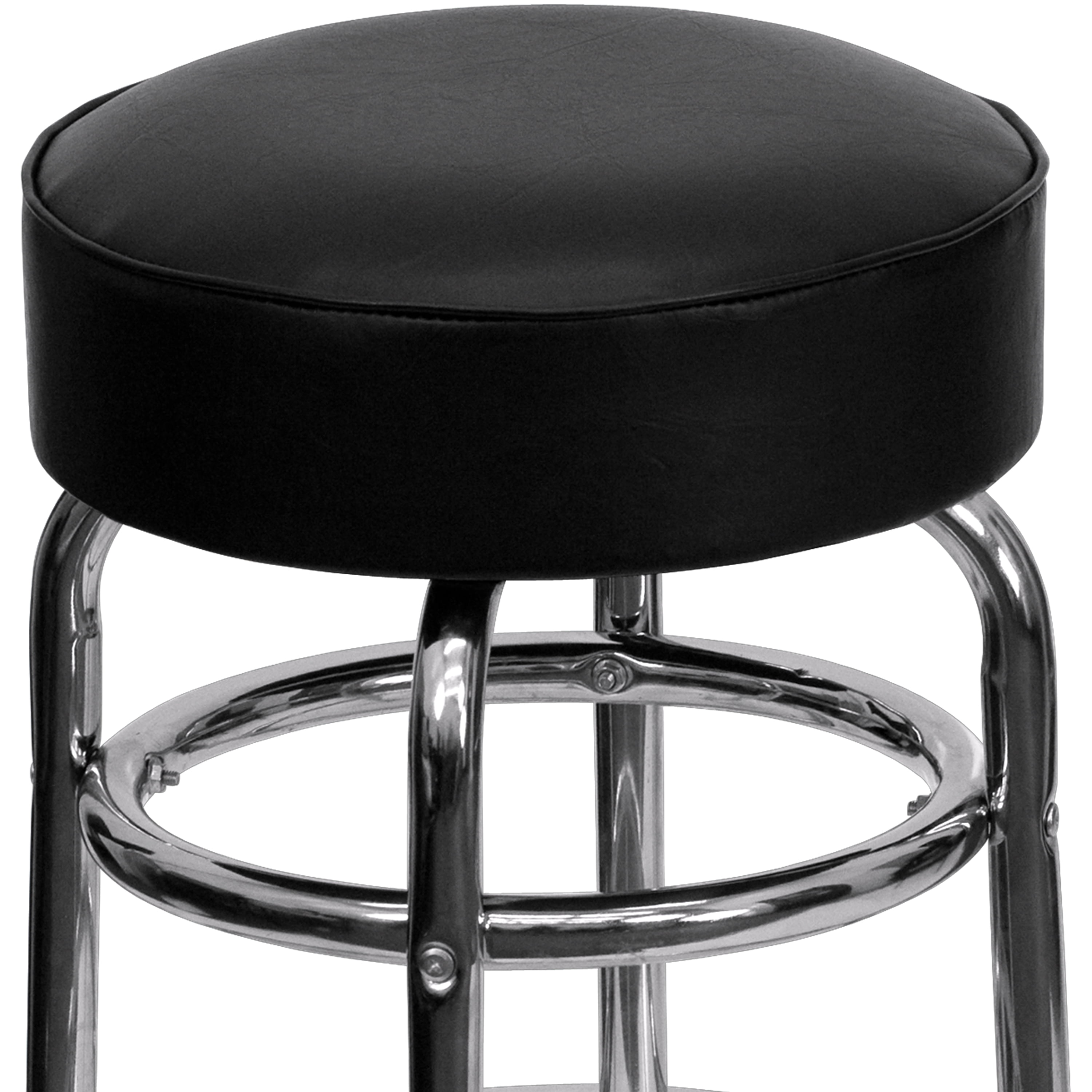 Flash Furniture Bruno Double Ring Chrome Barstool with Black Seat