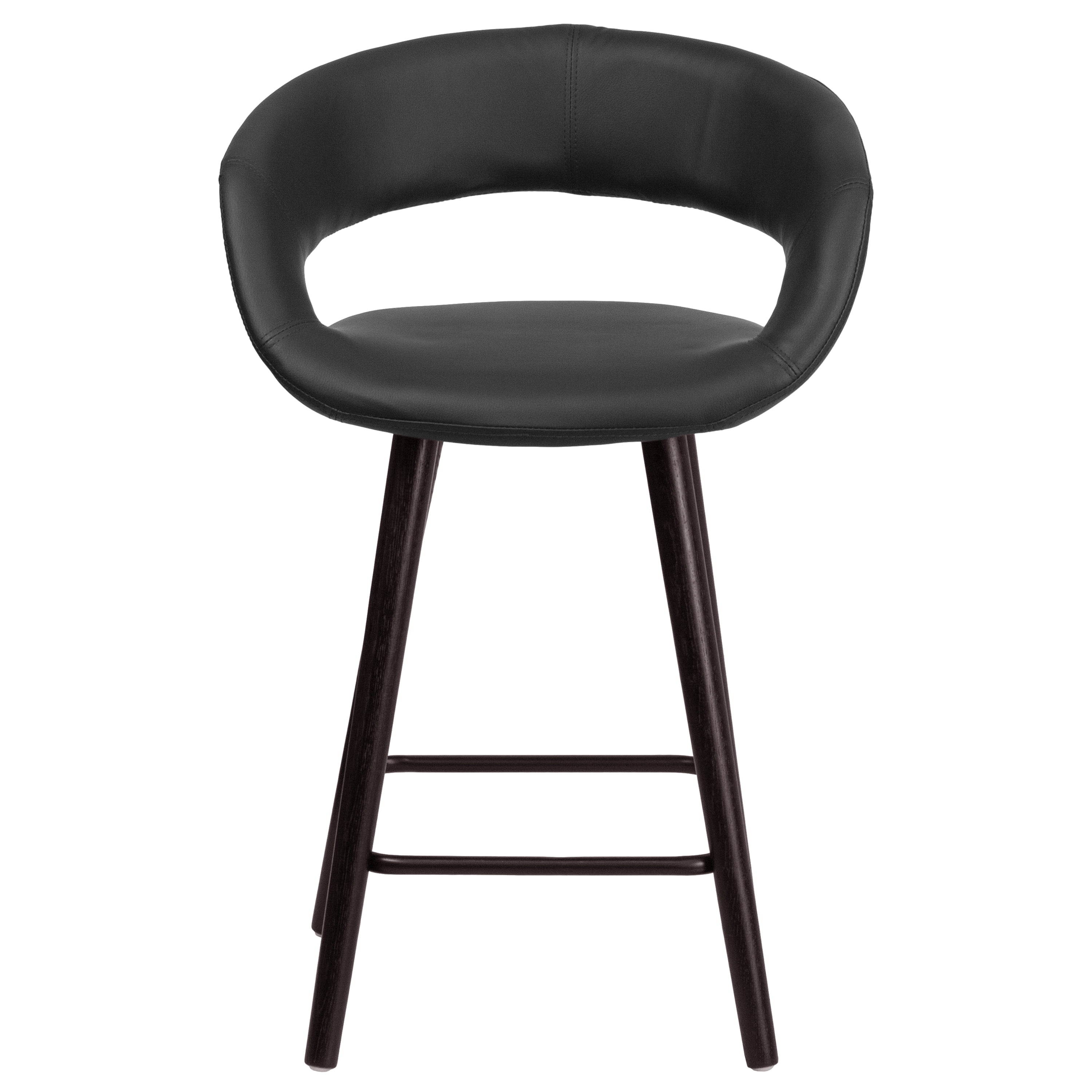 Flash Furniture Brynn Series 23.75” High Contemporary Cappuccino Wood Counter Height Stool in Black Vinyl Contemporary Wood Counter Height Bar Stool Rounded Low-Back Design Black Vinyl Upholstery Padded Seat with CAL 117 Fire Retardant Foam Seat Size: 16″W x 15.5″D Footrest provides better sitting experience Cappuccino Wood Finish Floor Glides prevent scratches and provide smooth gliding Designed for Residential Use Only PRODUCT MEASUREMENTS: Overall Size: 22″W x 19″D x 33.25″H; Seat Size: 16″W x 15.5″D x 23.75″H; Back Size: 10″W x 10″H; Arm Size: 31″H from floor; 7″H from seat