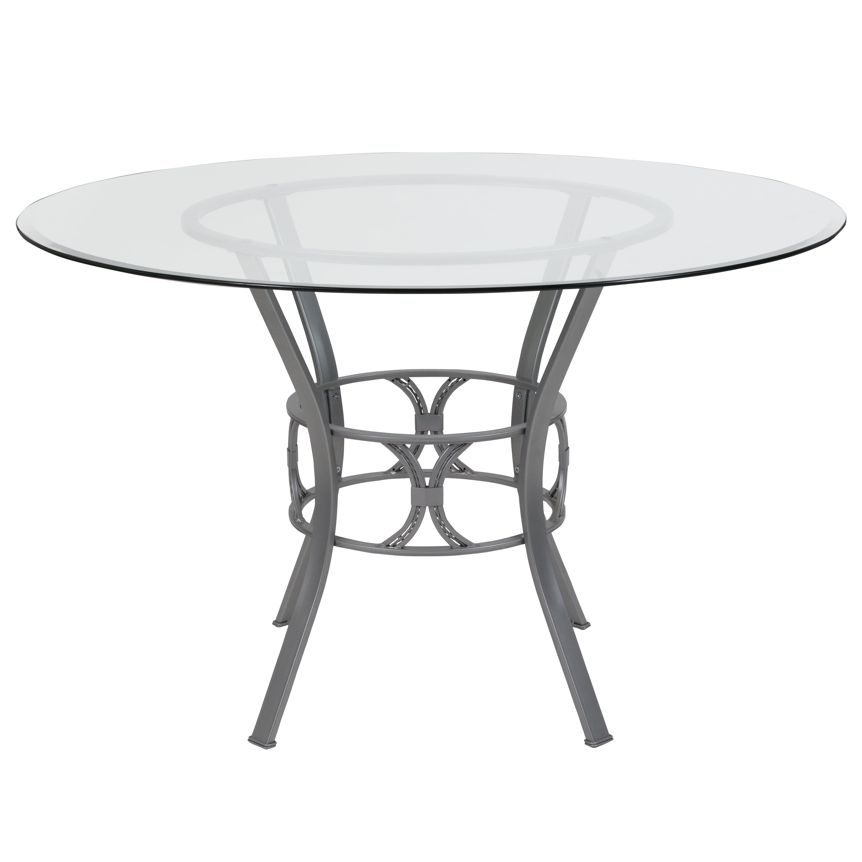 Flash Furniture Carlisle 48” Round Glass Dining Table with Silver Metal Frame