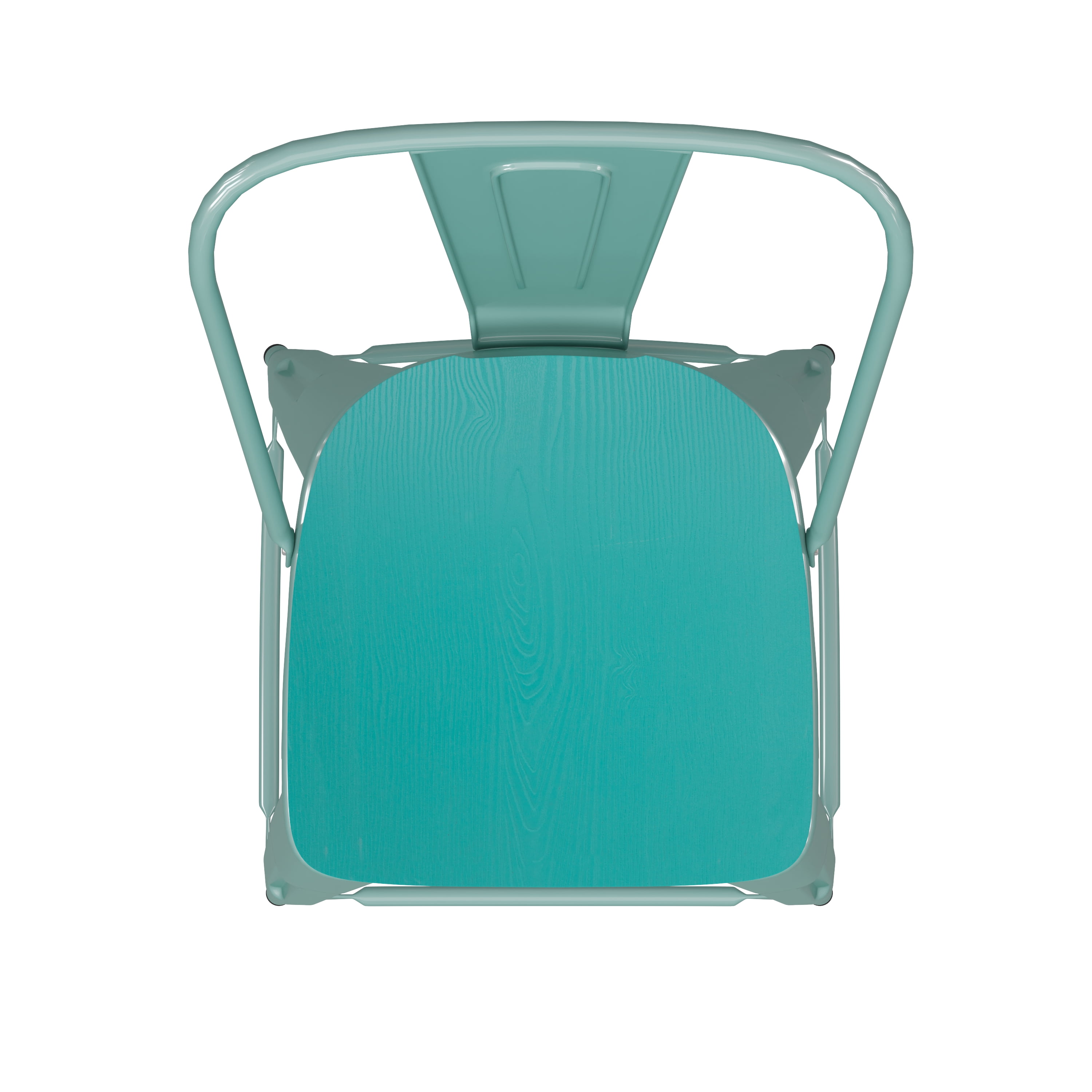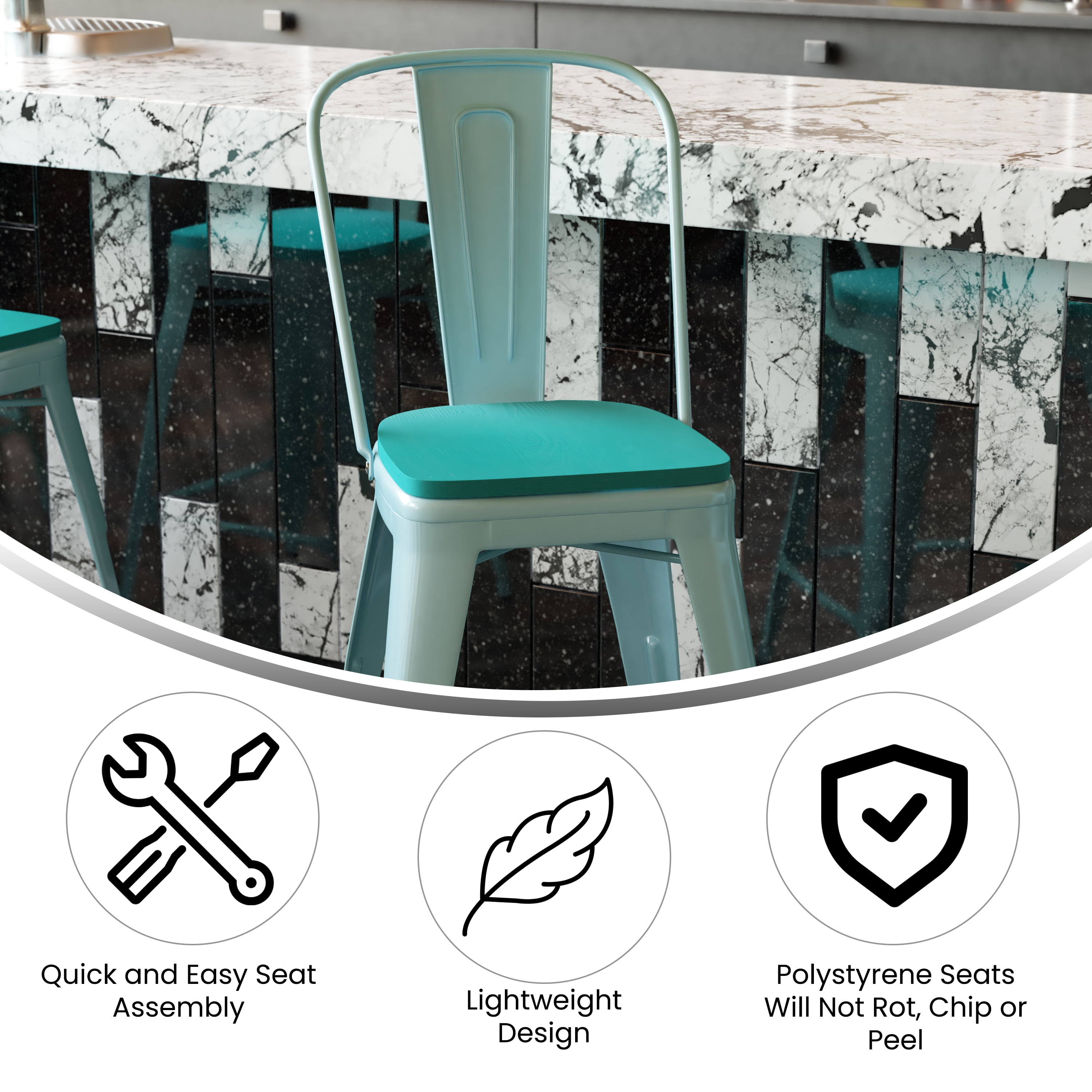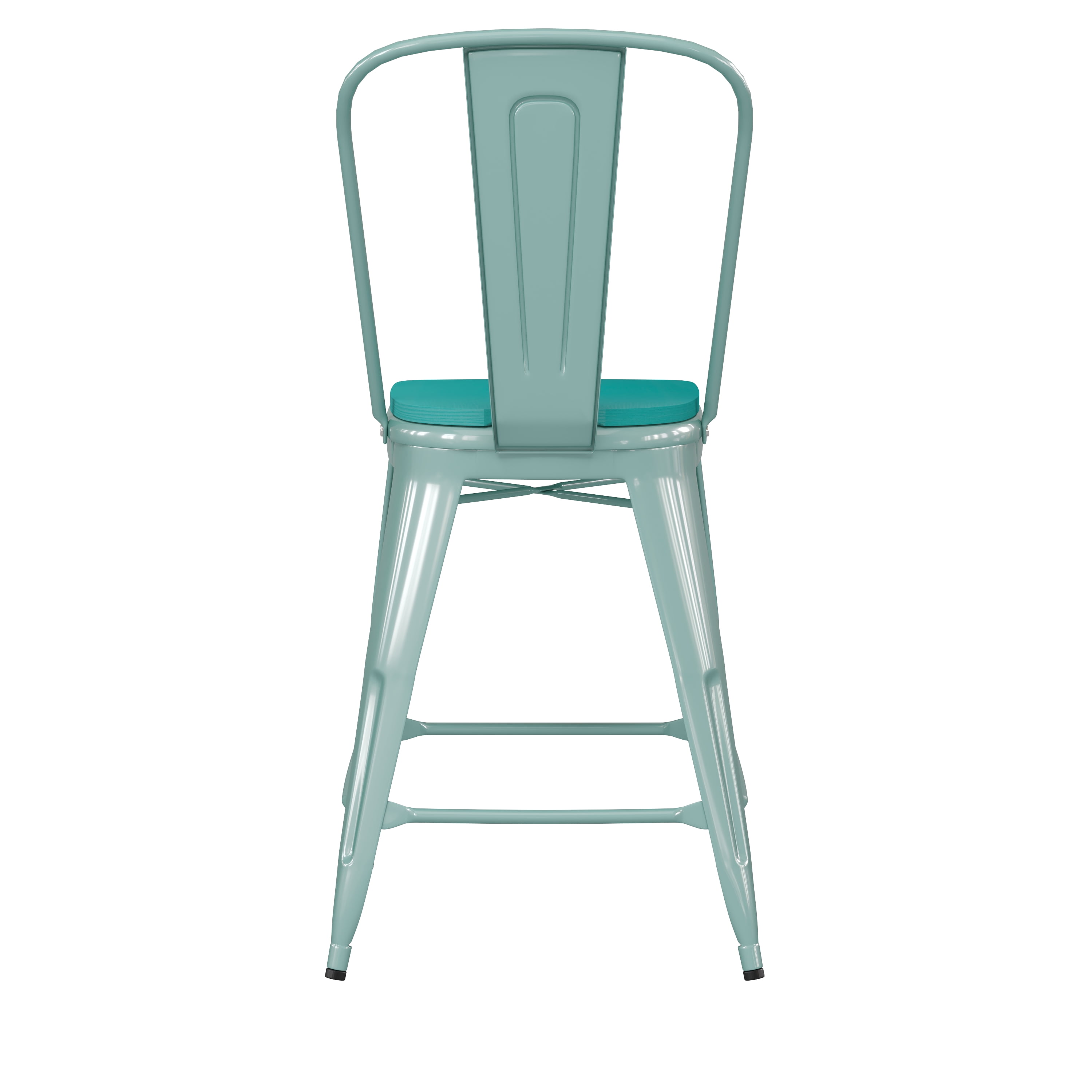 Flash Furniture Carly Commercial Grade 24″ High Mint Green Metal Indoor-Outdoor Counter Height Stool with Back with Mint Green Poly Resin Wood Seat