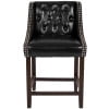 Flash Furniture Carmel Series 24″ High Transitional Tufted Walnut Counter Height Stool with Accent Nail Trim in Black LeatherSoft