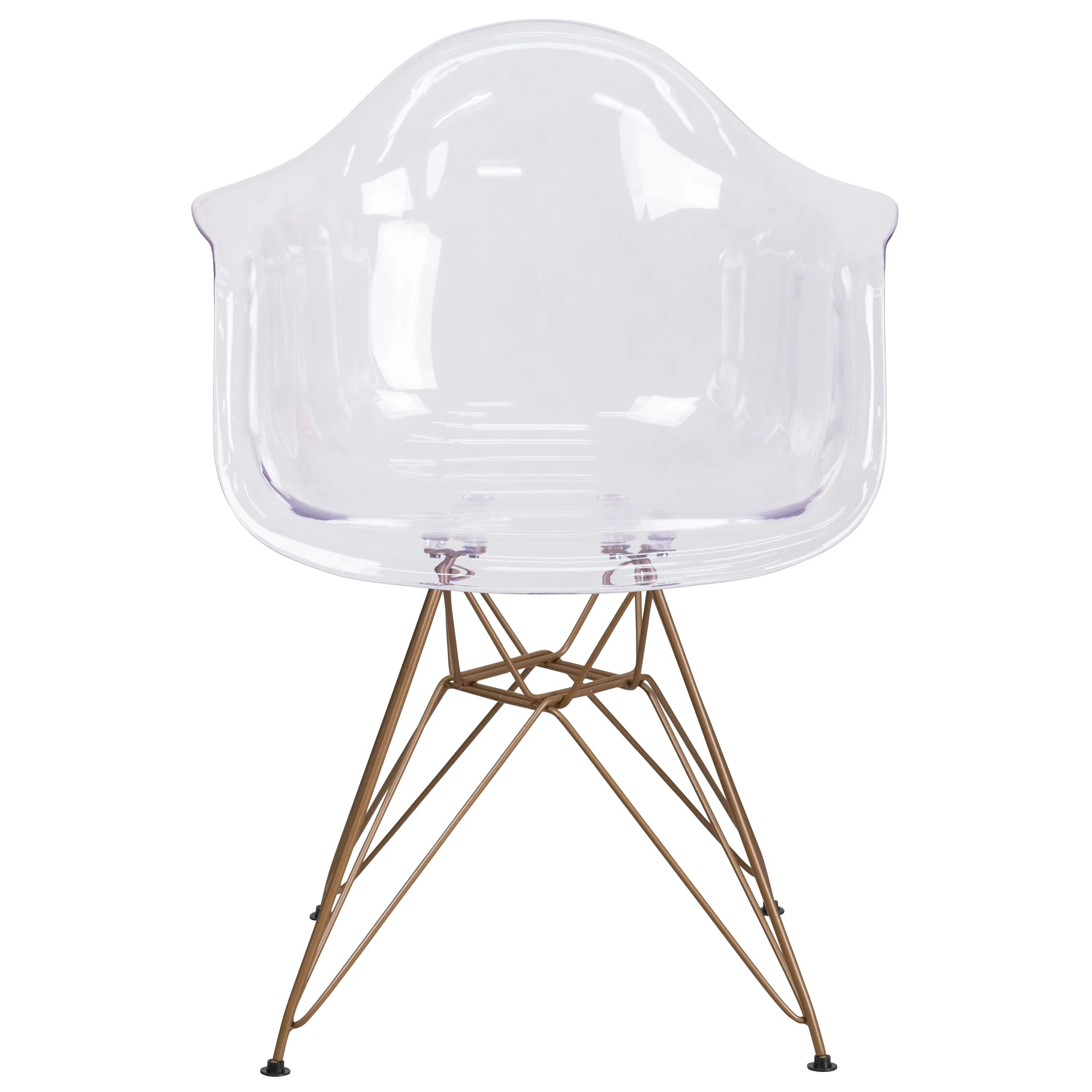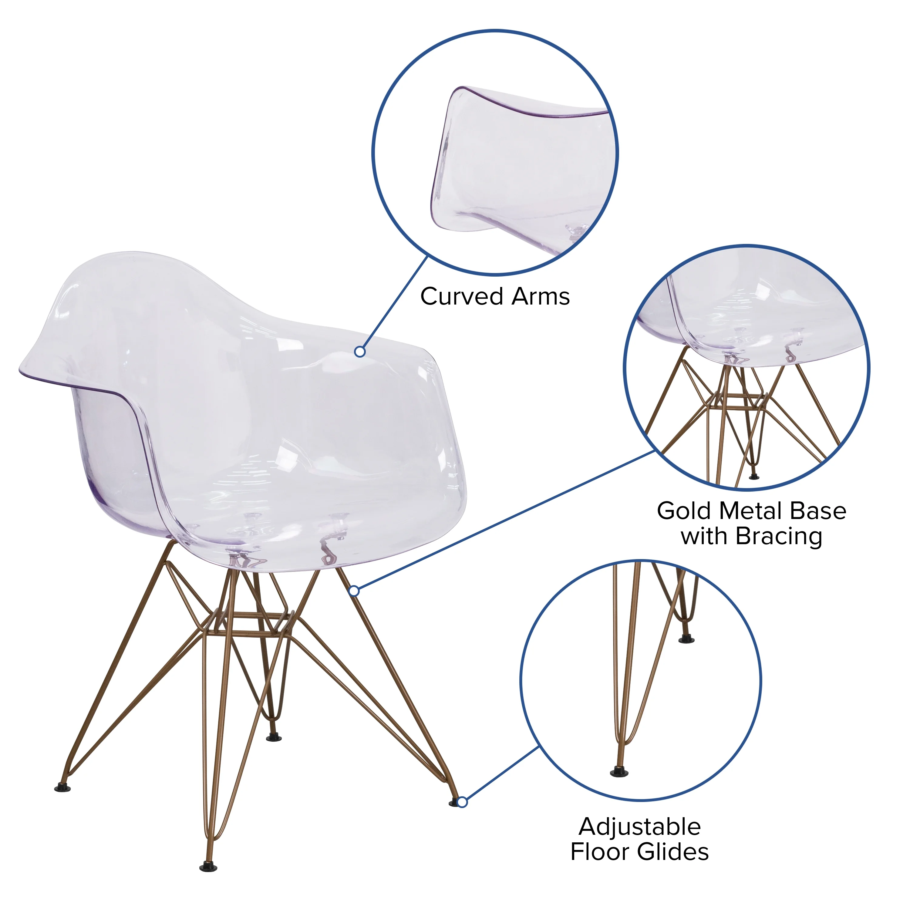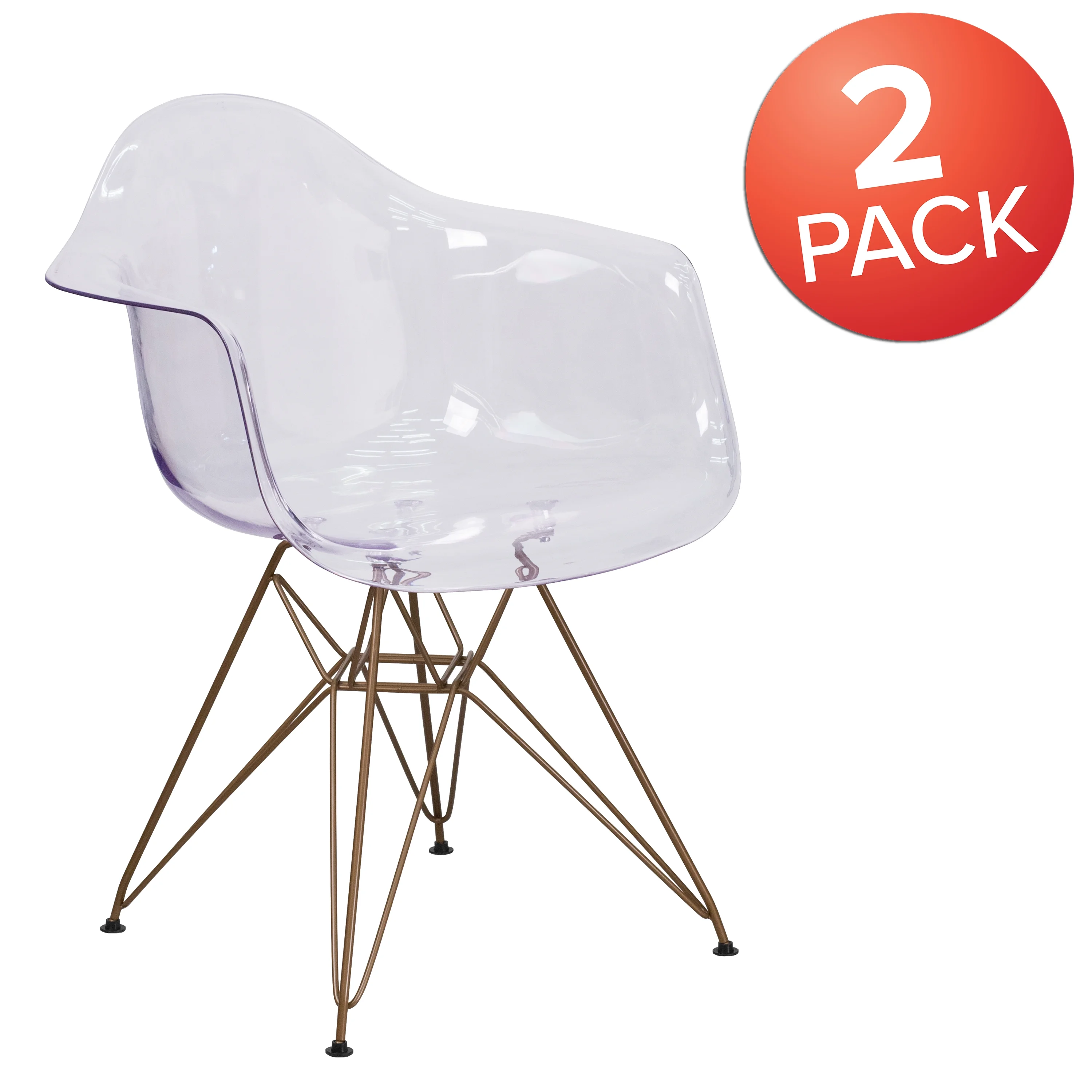 Flash Furniture Casper 2 Pack Allure Series Transparent Side Chair with Gold Base
