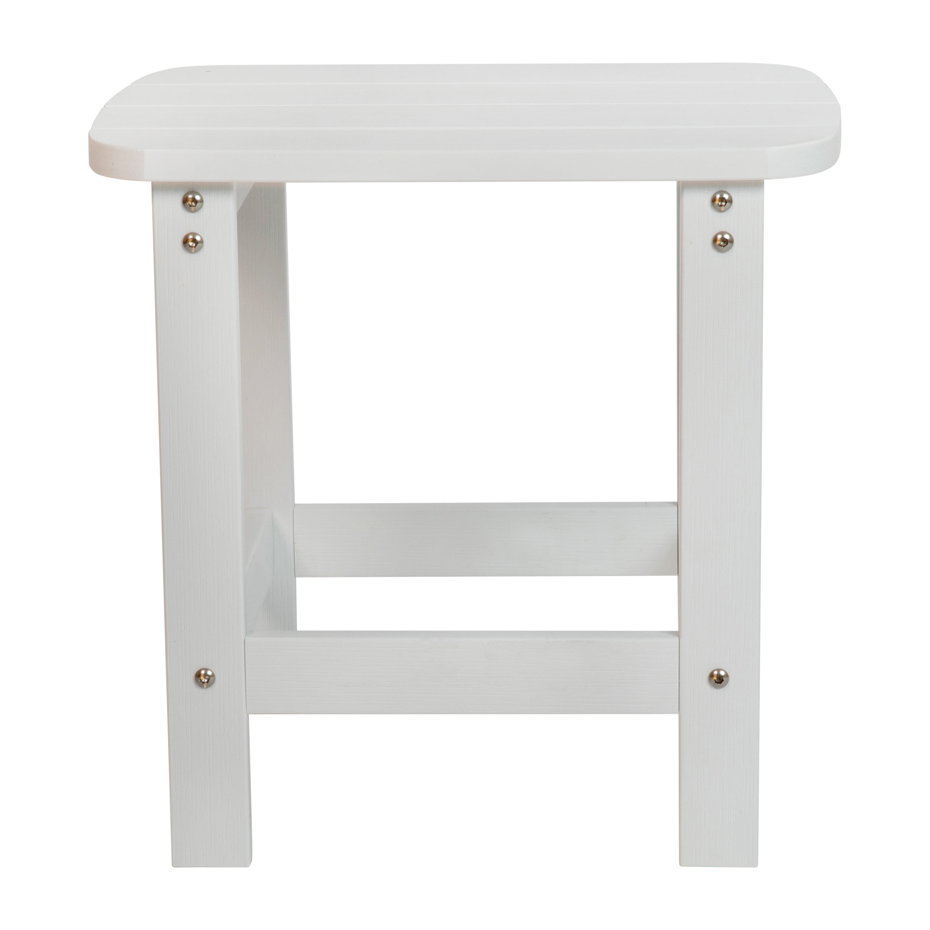 Contemporary Adirondack Side Table for year round use Horizontal Lattice Top mirrors the look of classic Adirondack chairs Suitable for Indoor or Outdoor Use Weather-Resistant Polystyrene Frame won’t splinter, peel or chip UV Treated to prevent fading and discoloration Stainless Steel Hardware is rust resistant Assembles in 30 Minutes or Less for quick use Colorful Adirondack style patio table great for all environments such as poolside, camping and tailgating Mix or match with our All-Weather Poly Resin Wood Adirondack Chairs