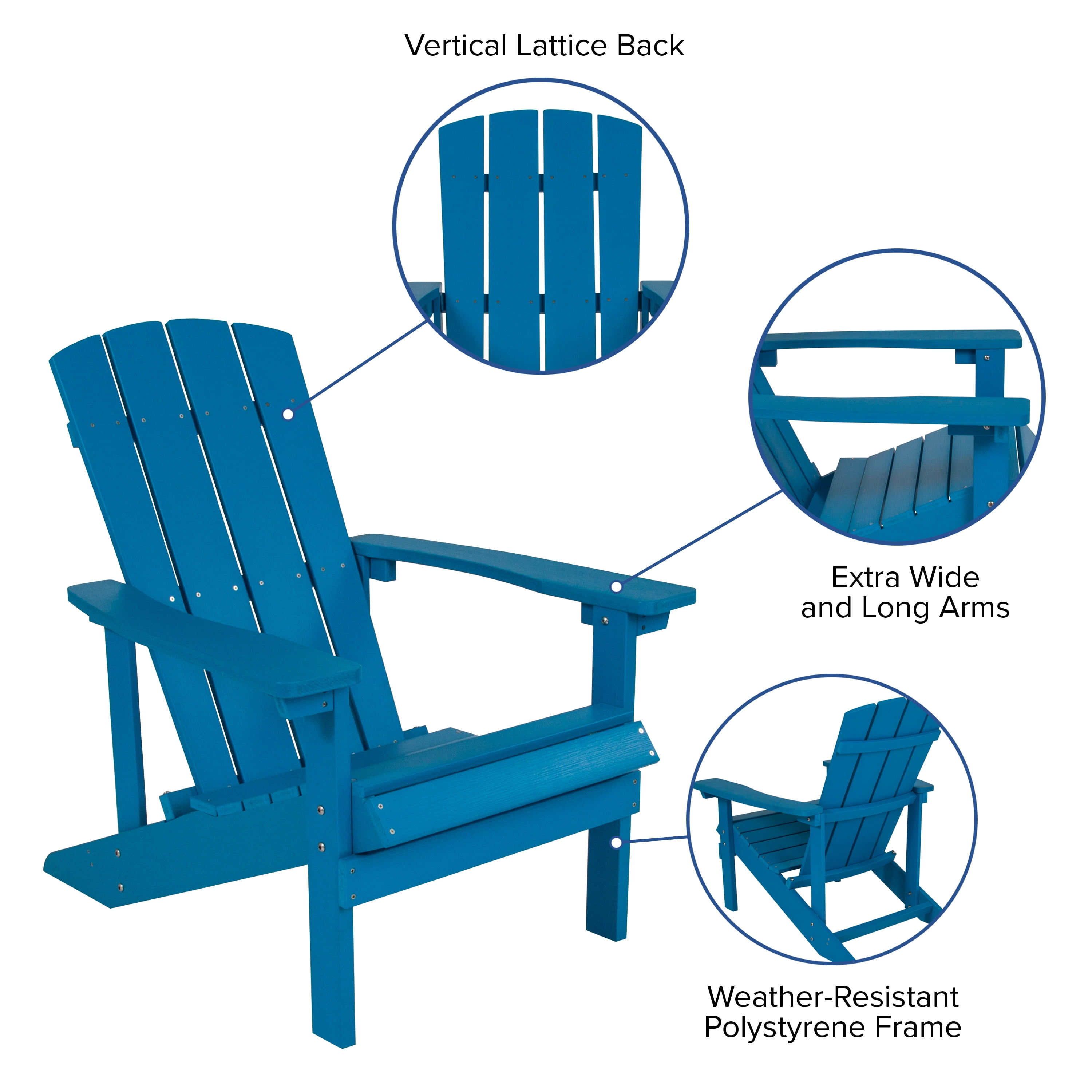 Flash Furniture Charlestown Set of 2 All-Weather Poly Resin Wood Adirondack Chairs in Blue with Blue Cushions for Deck, Porch, and Patio