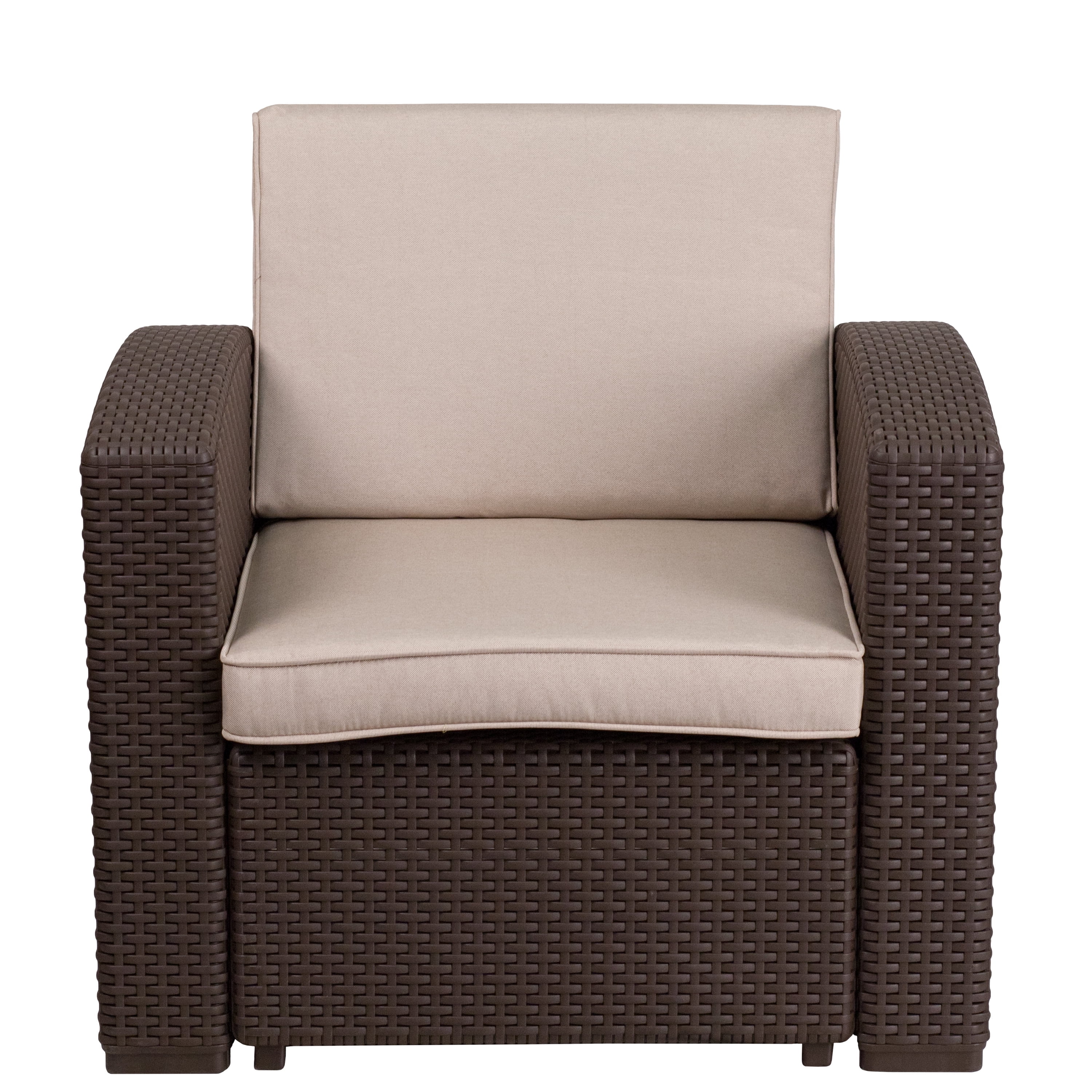 Flash Furniture Chocolate Brown Faux Rattan Chair with All-Weather Beige Cushion