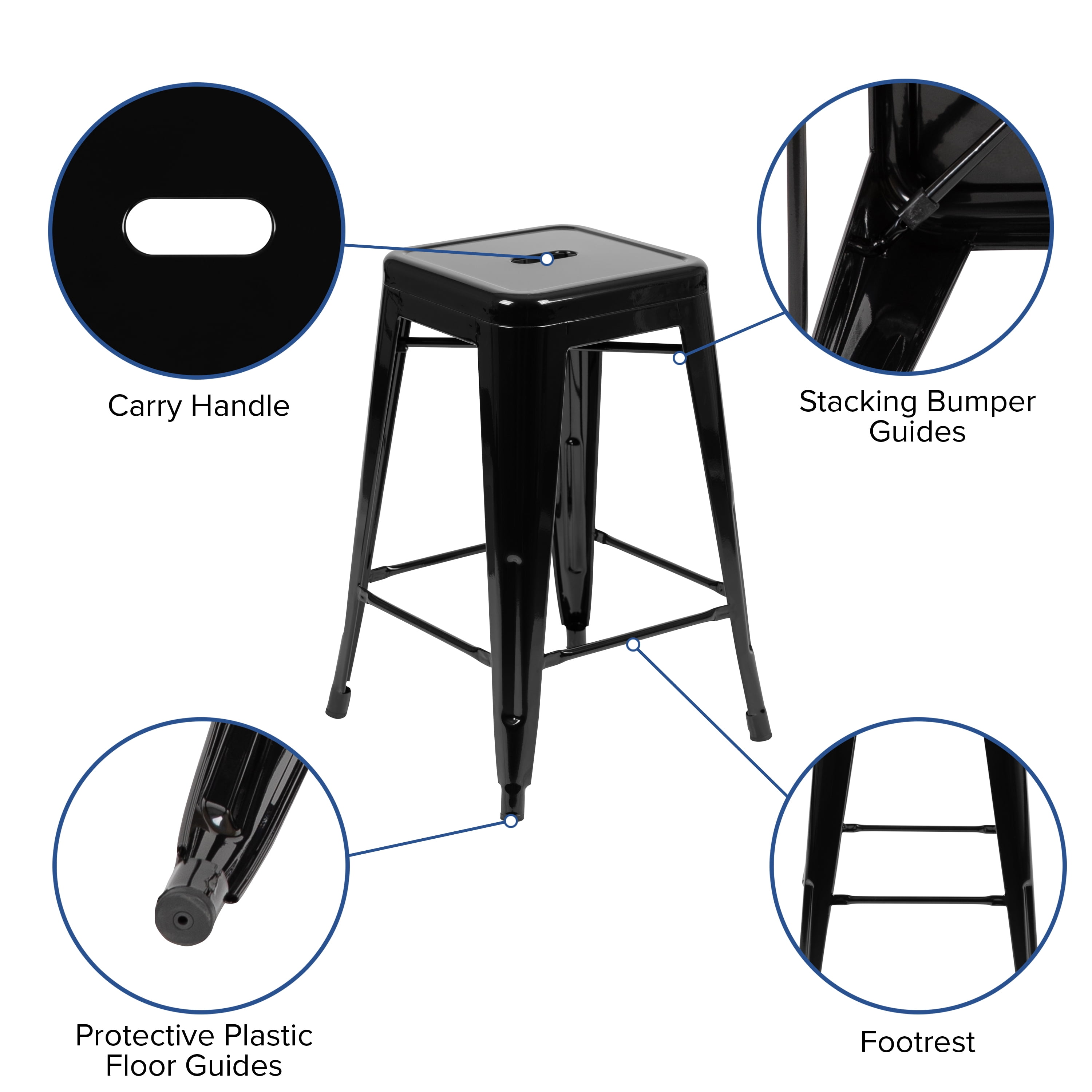 Flash Furniture Cierra 24″ High Metal Counter-Height, Indoor Bar Stool in Black – Stackable Set of 4 Modern Industrial Metal Stool in Black Ready-to-use – No Assembly Required 440 lb. Weight Capacity Stack Quantity: 10 Space Saving Backless Design Cross Brace with frame protective caps Protective Plastic Floor Glides Suitable for kitchen islands and restaurants Designed for Indoor Use Only PRODUCT MEASUREMENTS: Overall Size: 16″W x 16″D x 24″H; Seat Size: 12″W x 12″D x 24″H; No Assembly Required