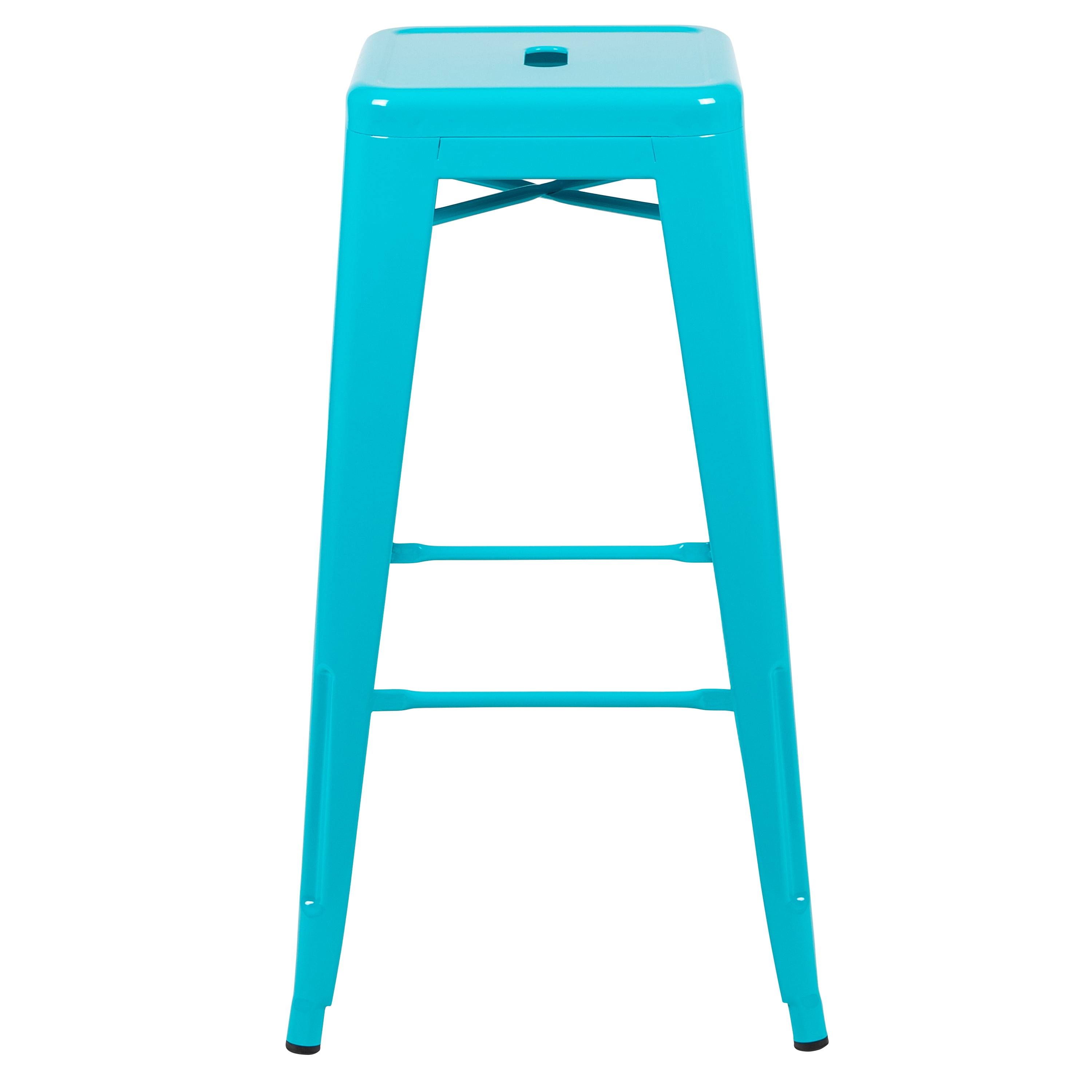 Flash Furniture Cierra 30″ High Metal Indoor Bar Stool in Teal – Stackable Set of 4