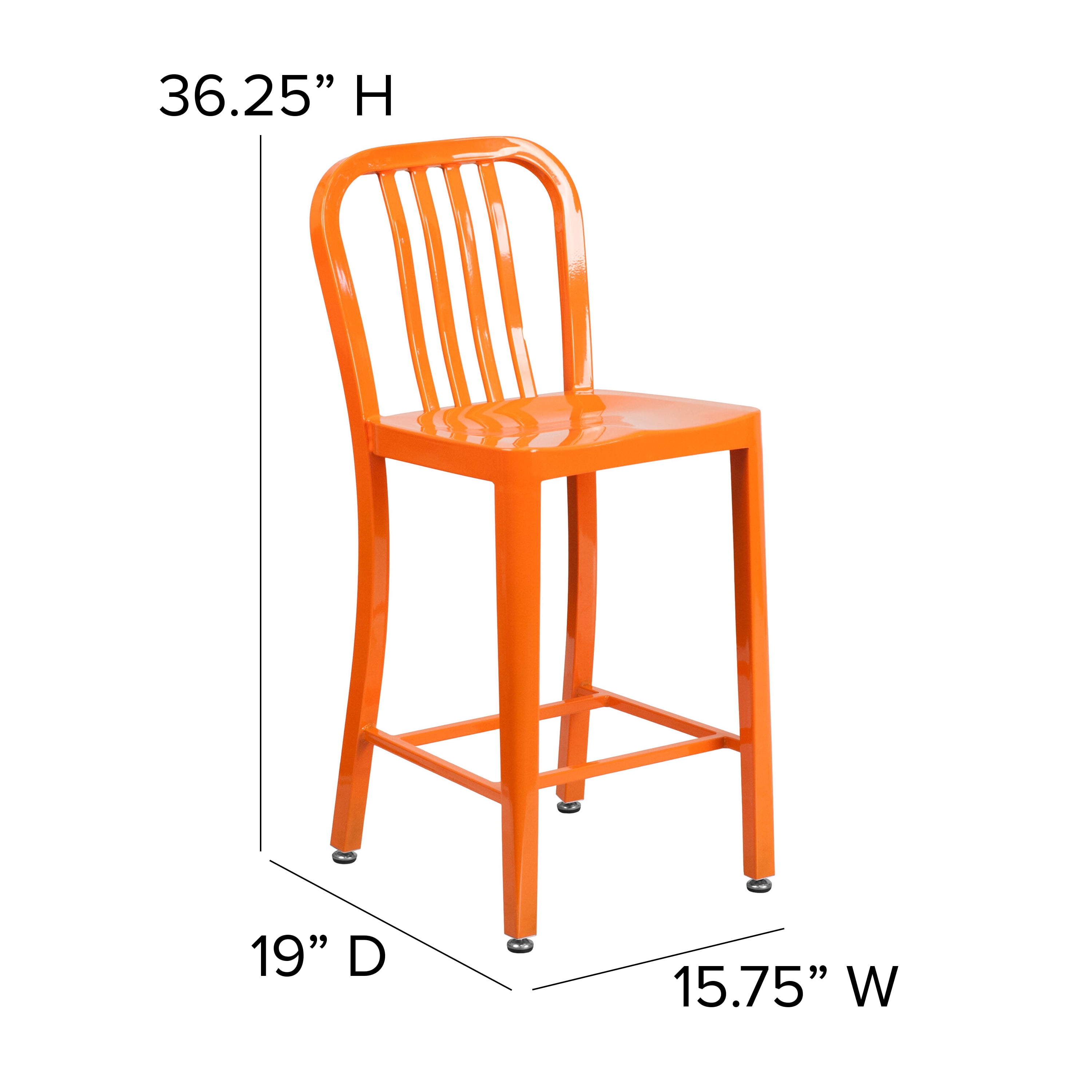 Invite family and friends over to hang out at your home bar on these comfortable colorful metal dining stools. Bring outdoors to enjoy the warm weather on your patio while sitting around your counter height fire pit table. The versatile 24″ bar stool will look great in any environment: kitchen, restaurants, bars, bistros, or your local greasy spoon. If you’re looking for a trendy stool for your restaurant that will hold its style throughout the years, this colorful restaurant counter height bar stool will not disappoint. Crafted from durable galvanized steel metal upgradeed in a glossy finish, this orange metal stool with back was designed to withstand regular use in the fast-paced restaurant industry. Patrons have a suitable resting place for their feet for comfort counter height table doesn’t include a footrest. Uneven floors are no problem with adjustable screw leveling floor glides. Pair these kitchen stools with our matching orange metal chairs and bar stools to have seating at your dining table, kitchen island and home bar. Coordinate the seating in your restaurant with the same style of seating at your bar and restaurant tables. These counter height chairs can be used year-round outside, for longevity protect the frame from long periods of wet weather.