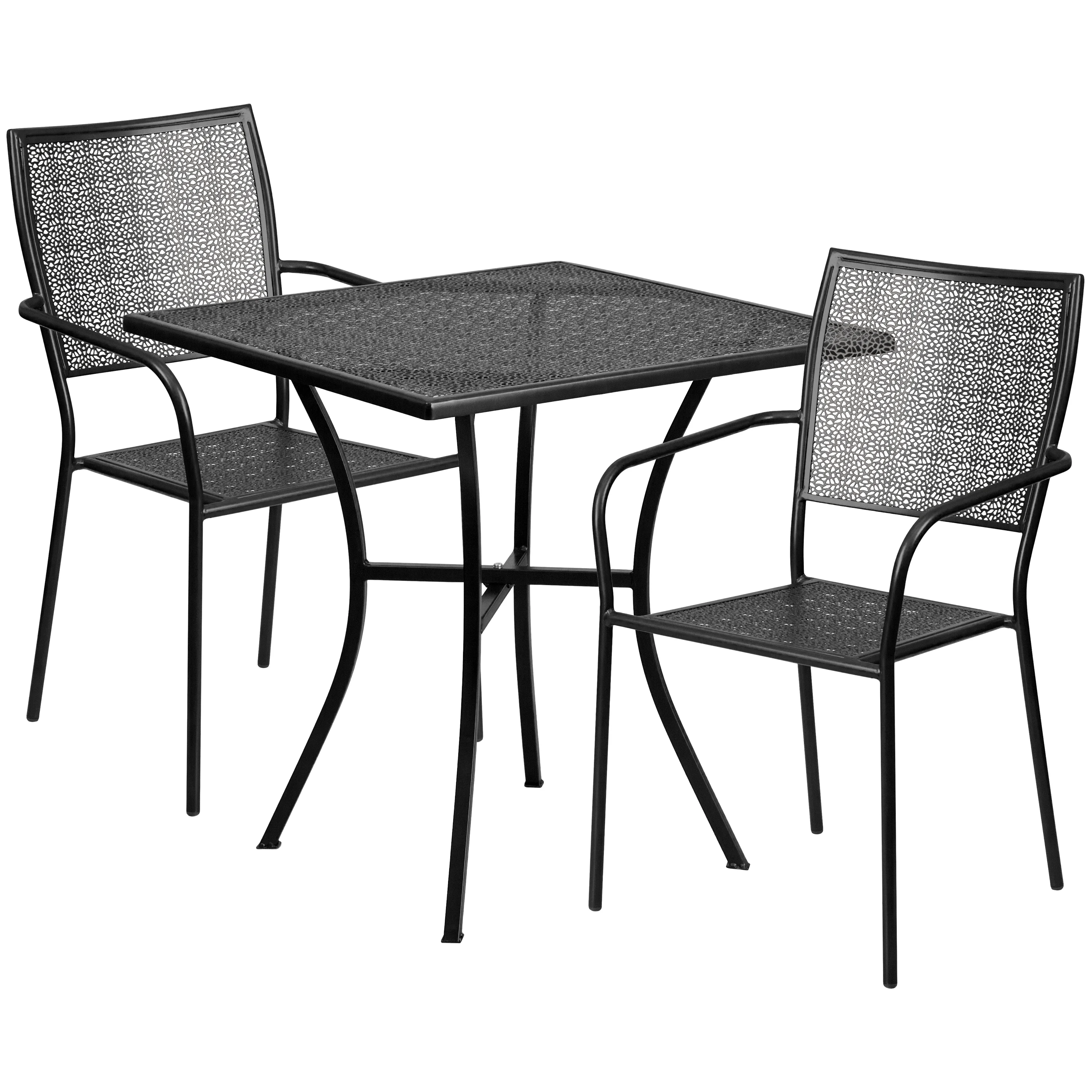 Flash Furniture Commercial Grade 28″ Square Black Indoor-Outdoor Steel Patio Table Set with 2 Square Back Chairs