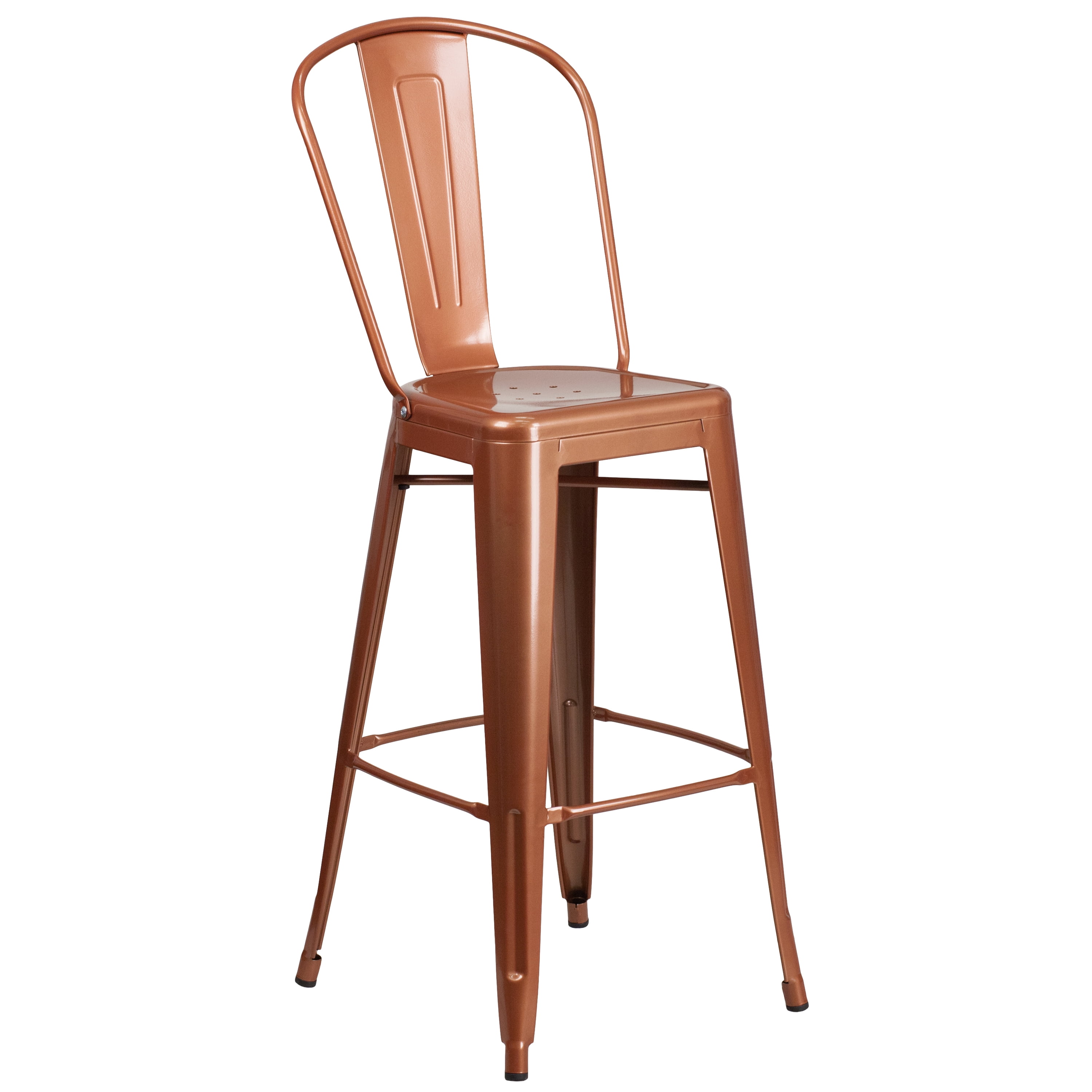 Create an eclectic look around your pub height dining room table or a set up a cozy space in your kitchen to enjoy a cup of joe and light breakfast with this vibrant dining stool. You’ll be pleasantly surprised how well these colorful metal bar stools blend in with your existing furnishings. Durably constructed, this bar height stool will instantly modernize your restaurant, cafe, or bar by adding splashes of color. Metal barstools with backs provide a comfortable sitting experience, the full back is ergonomically curved and includes a vertical slat. The lower support braces double as a footrest, promoting proper posture. Drain holes prevent pooling in the center of the seat for a faster turn around to seat customers. For longevity, care should be taken to protect from long periods of wet weather. Whether it’s time to update your employee breakroom with some colorful furniture or add some durable seating to your patio furniture collection, this timeless indoor outdoor bar stool delivers.