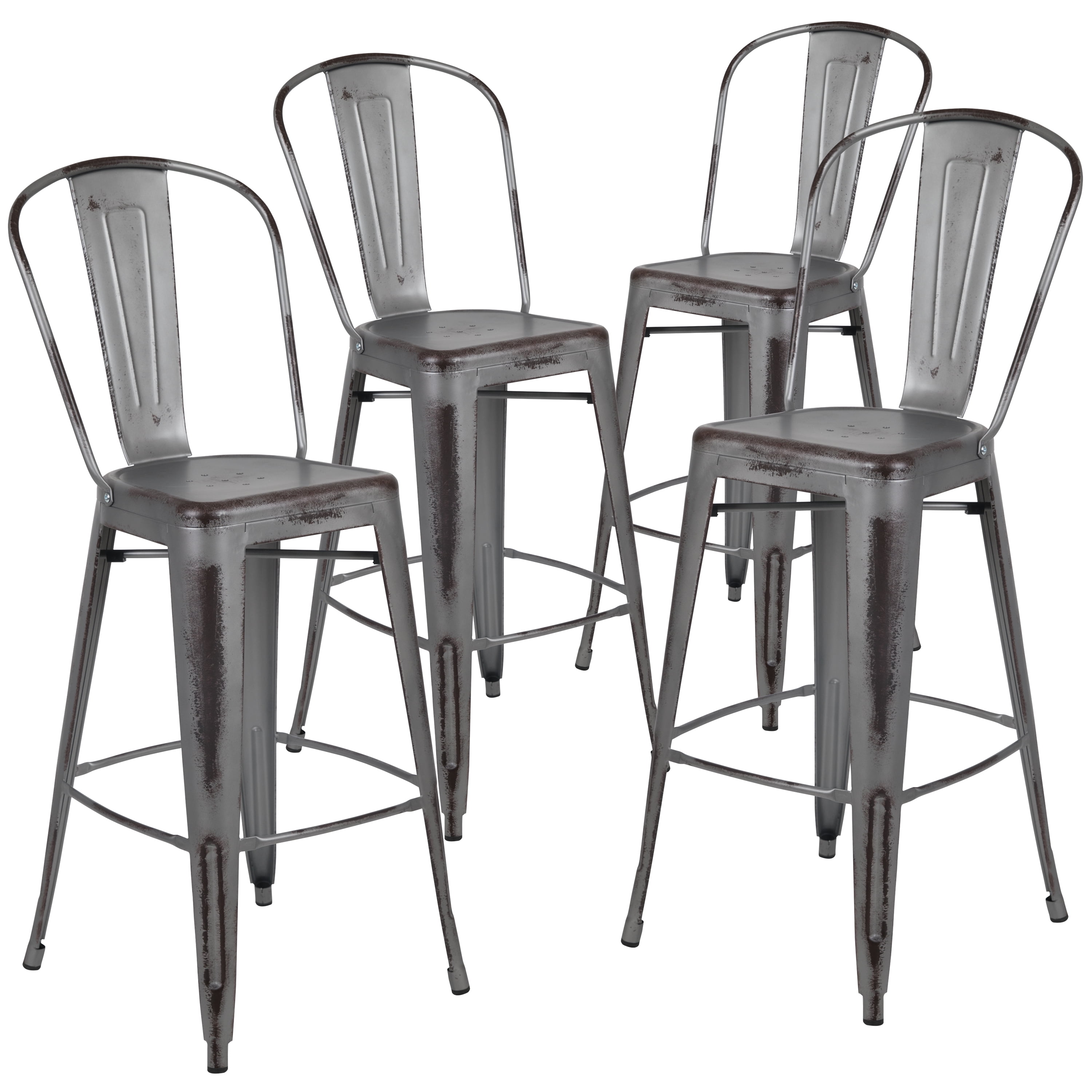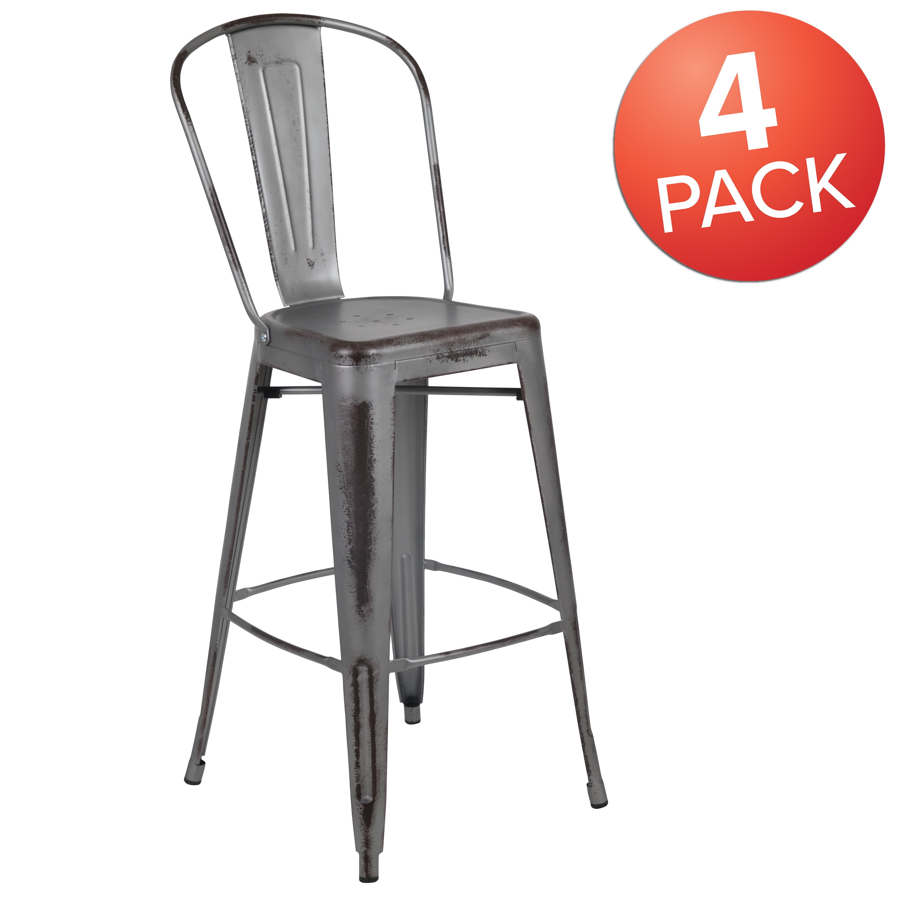 Create an eclectic look around your pub height dining room table or a set up a cozy space in your kitchen to enjoy a cup of joe and light breakfast with this distressed dining stool. You’ll be pleasantly surprised how well these distressed metal bar stools blend in with your existing furnishings. Durably constructed, this bar height stool will instantly modernize your restaurant, cafe, or bar by adding splashes of color. Metal barstools with backs provide a comfortable sitting experience, the full back is ergonomically curved and includes a vertical slat. The lower support braces double as a footrest, promoting proper posture. Drain holes prevent pooling in the center of the seat for a faster turn around to seat customers. For longevity, care should be taken to protect from long periods of wet weather. Whether it’s time to update your employee breakroom with some colorful furniture or add some durable seating to your patio furniture collection, this timeless indoor outdoor bar stool delivers.
