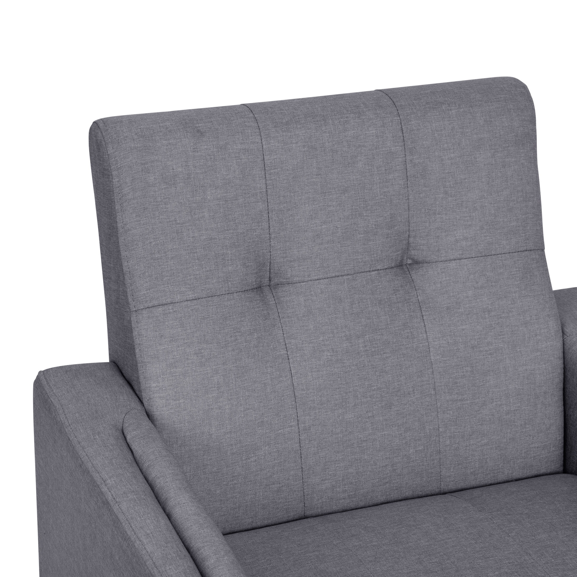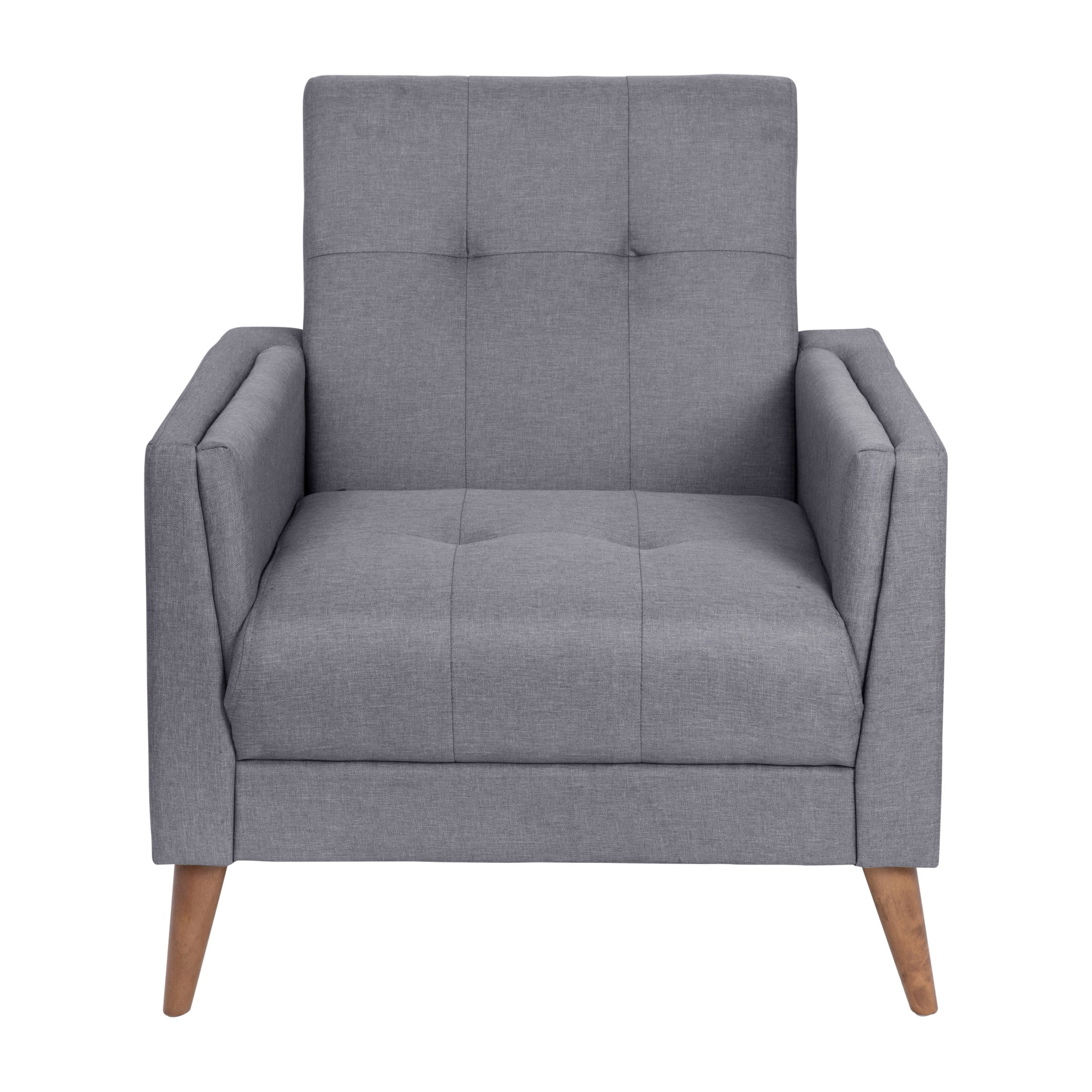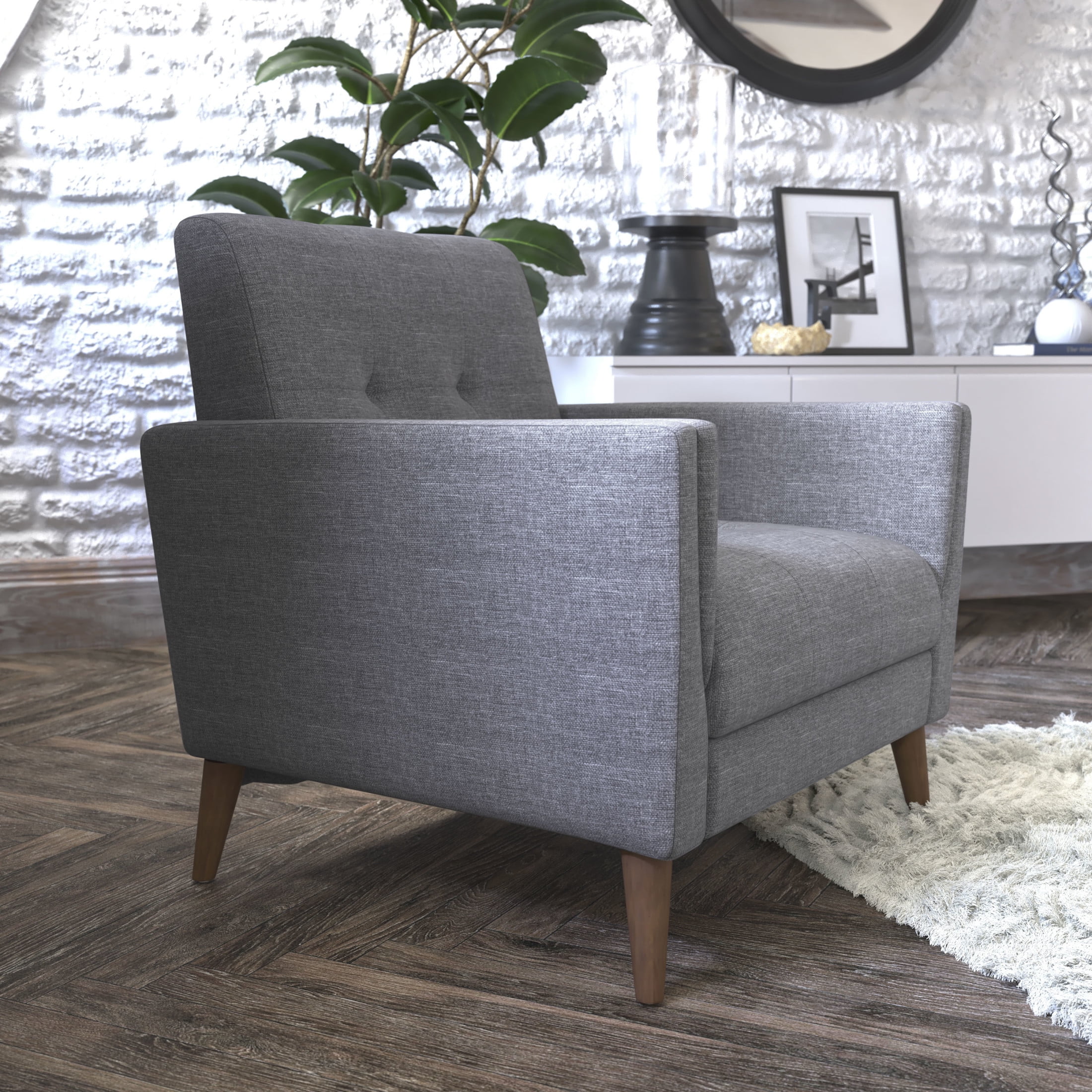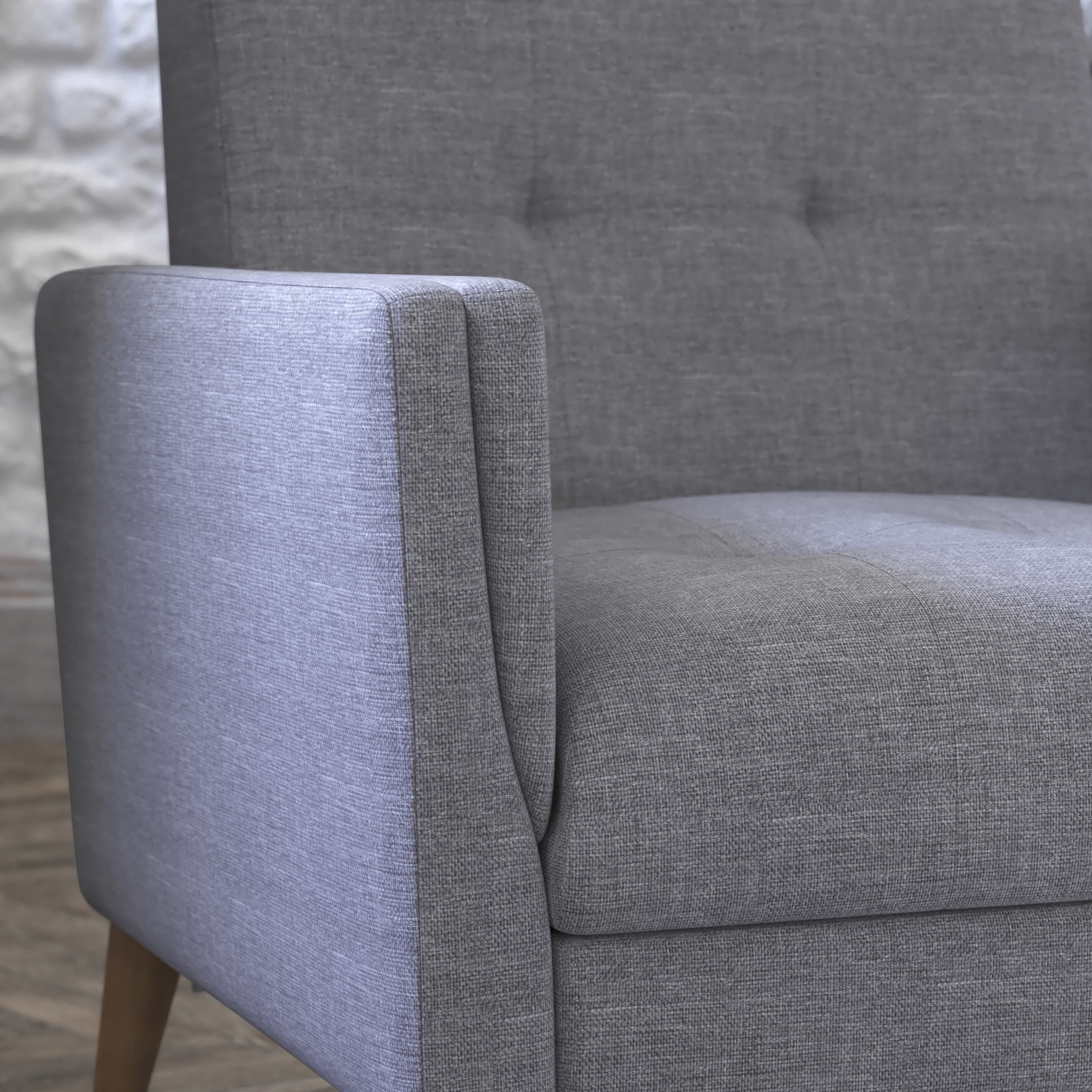 Flash Furniture Conrad Living Room Chair, Slate Gray Fabric Mid-Century Modern Commercial Grade Upholstered Chair Slate Gray Faux Linen Fabric Upholstery and Tufted Back and Seat Cushions Extra Supportive Foam and Pocket Spring Cushions Solid Wood Legs and Wooden Frame Hold up to 300 LBS. Static Weight Floor Protector Fixed Floor Glides Wipes Clean with a Damp Cloth Quick and Easy Assembly with Included Tools and Instructions PRODUCT MEASUREMENTS: Overall Size: 30.25″W x 30″D x 31.5″H; Seat Size: 21.5″W x 23″D x 17.75″H; Back Size: 21″W x 16.5″H; Arm Size: 22.75″H from floor; 6″H from seat