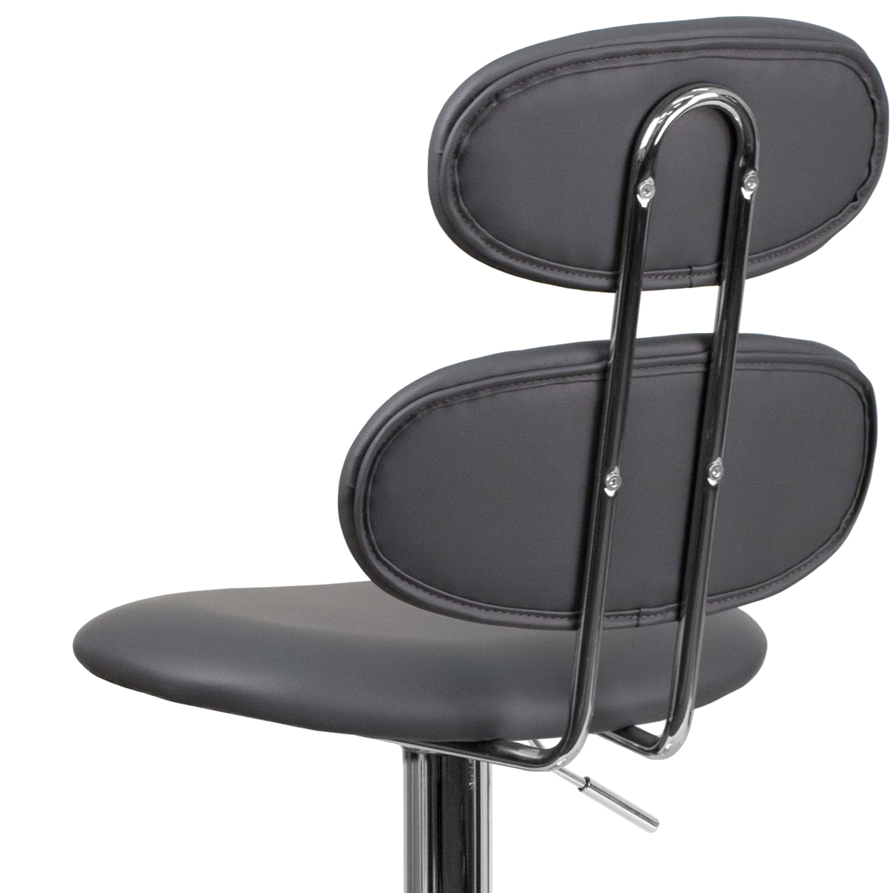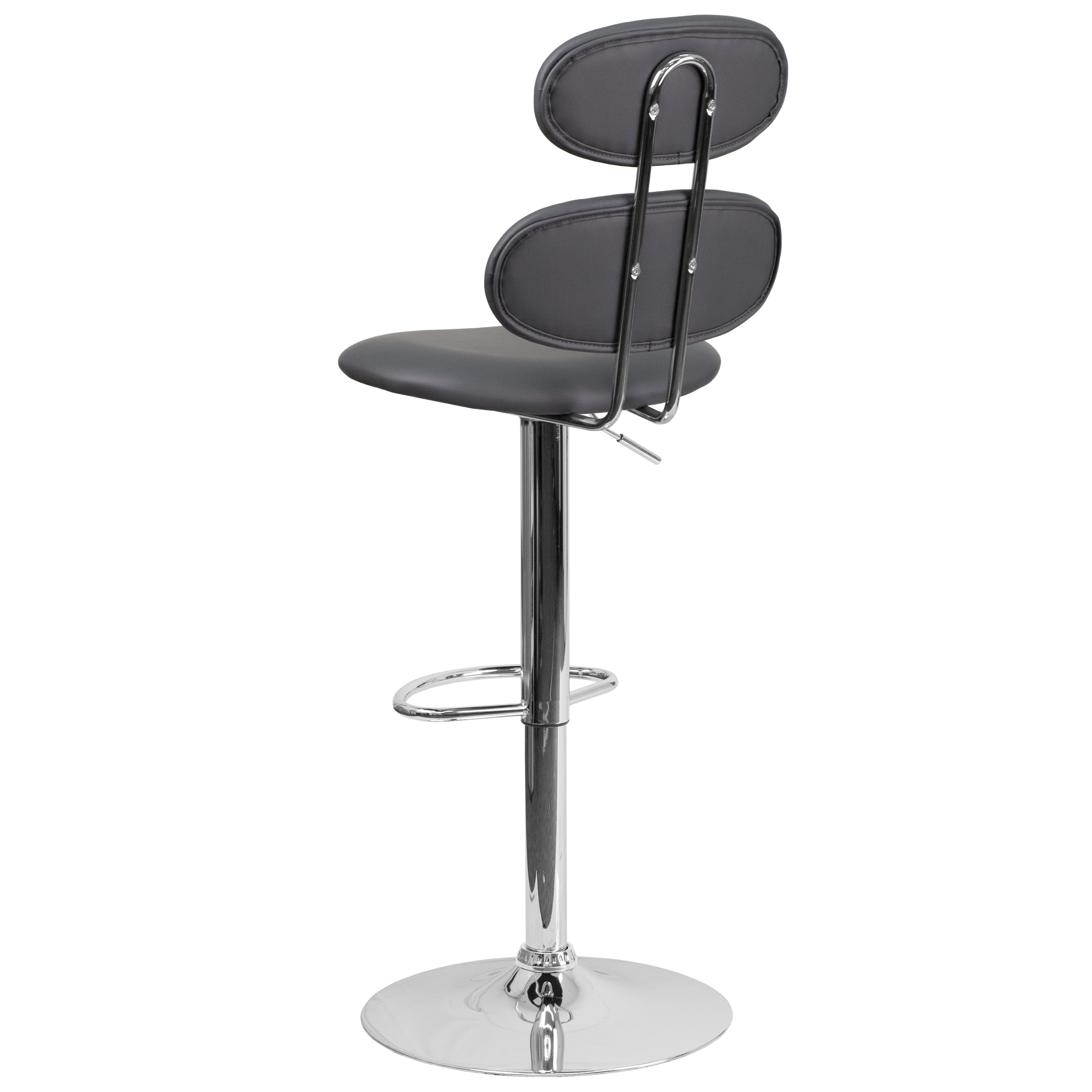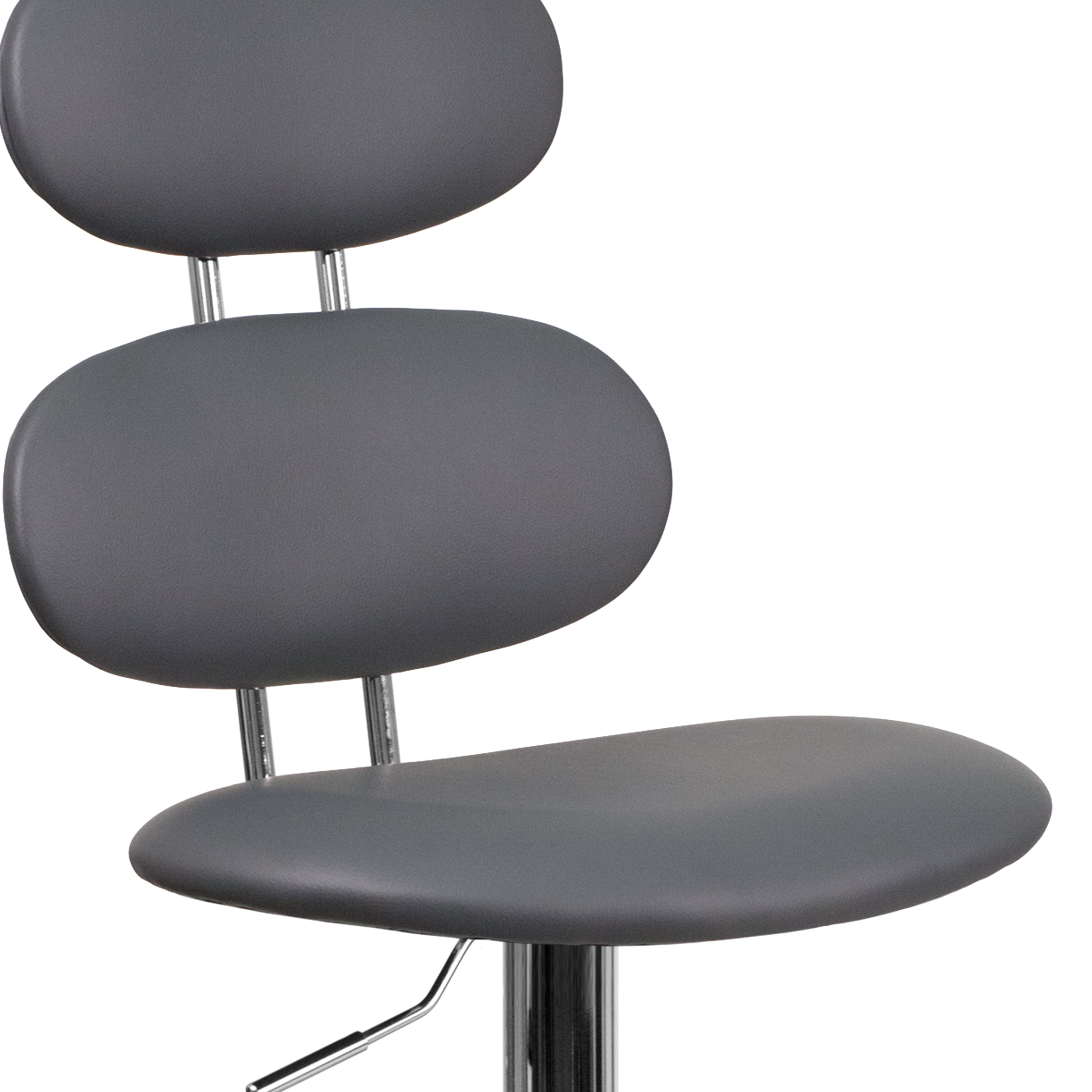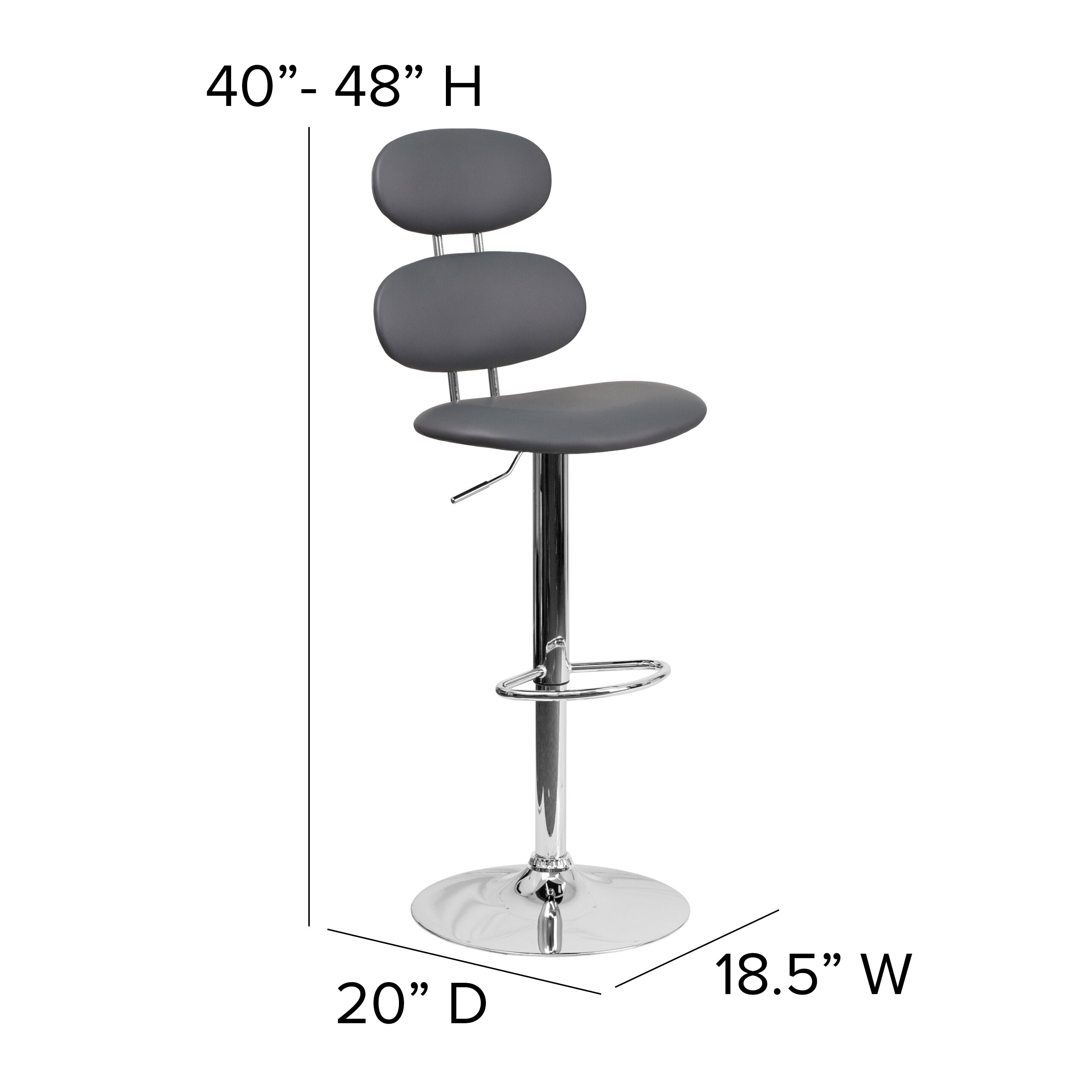 Flash Furniture Contemporary Gray Vinyl Adjustable Height Barstool with Ellipse Back and Chrome Base