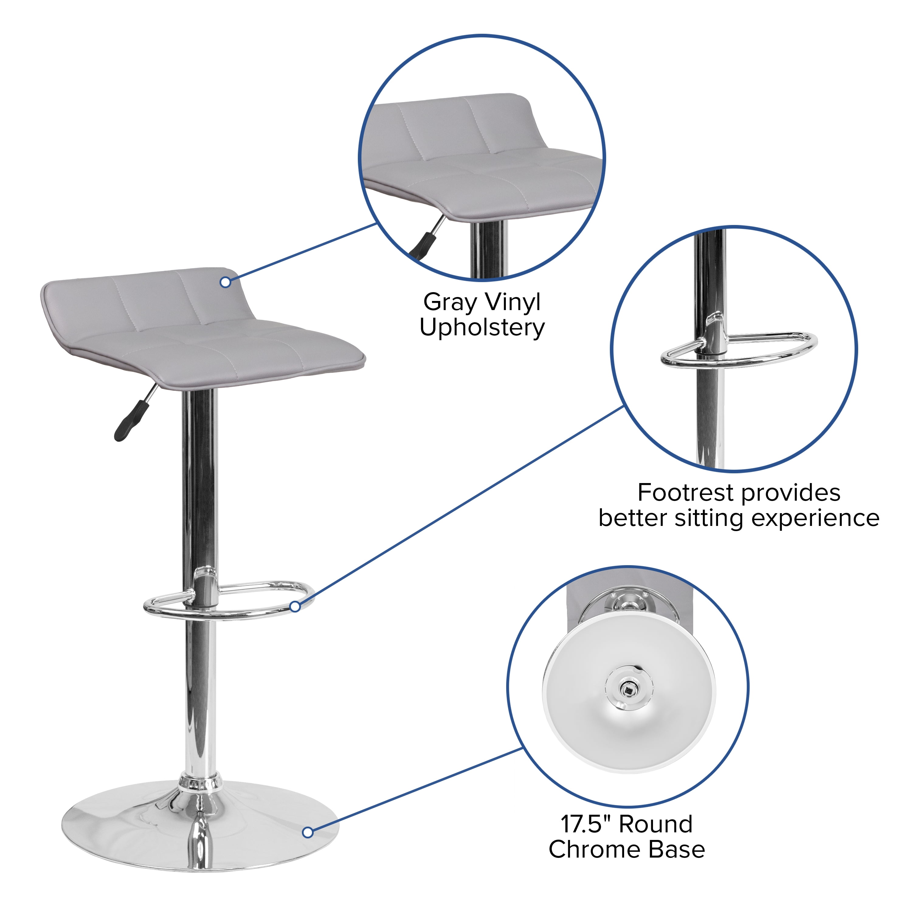 Flash Furniture Contemporary Gray Vinyl Adjustable Height Barstool with Quilted Wave Seat and Chrome Base