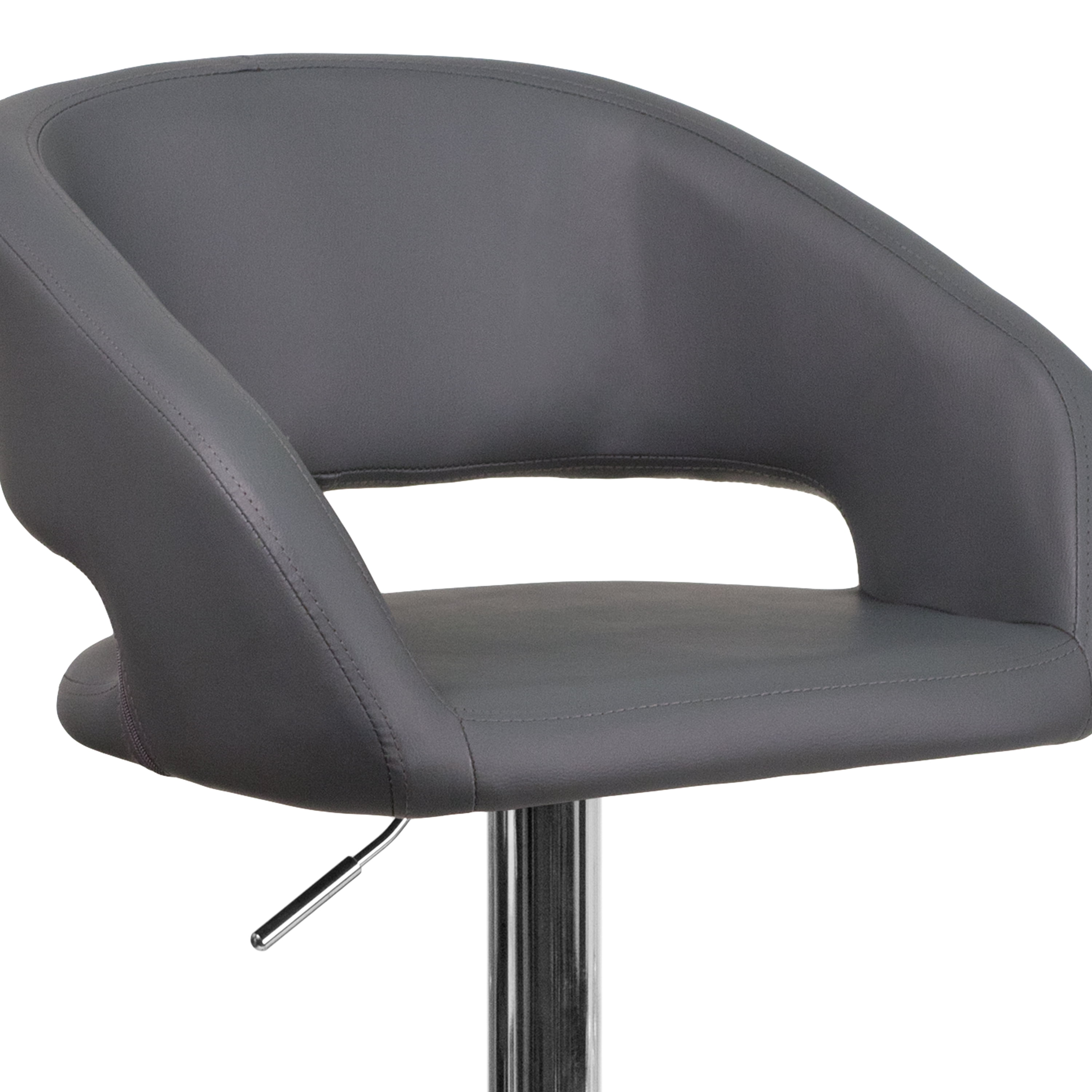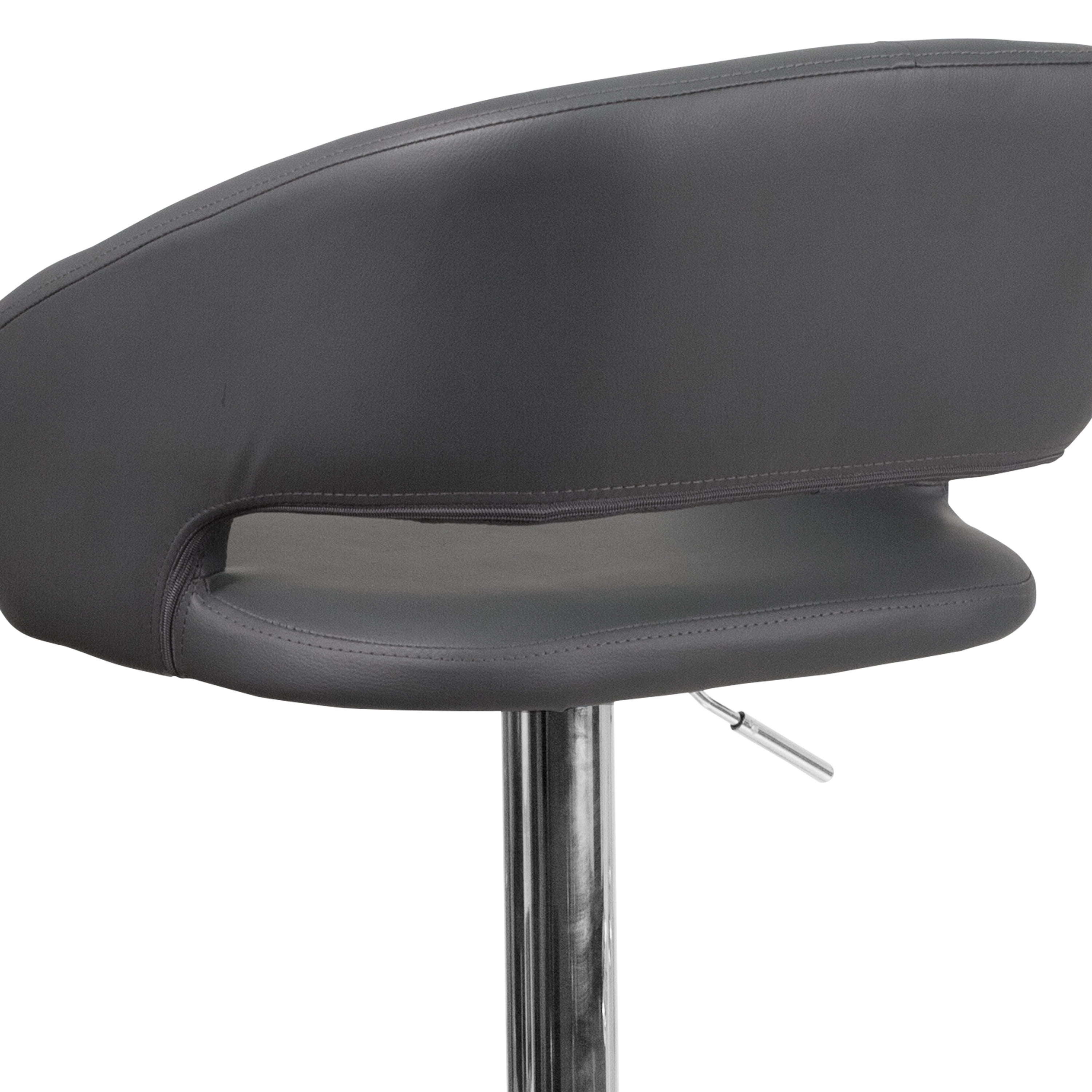 Flash Furniture Contemporary Gray Vinyl Adjustable Height Barstool with Rounded Mid-Back and Chrome Base