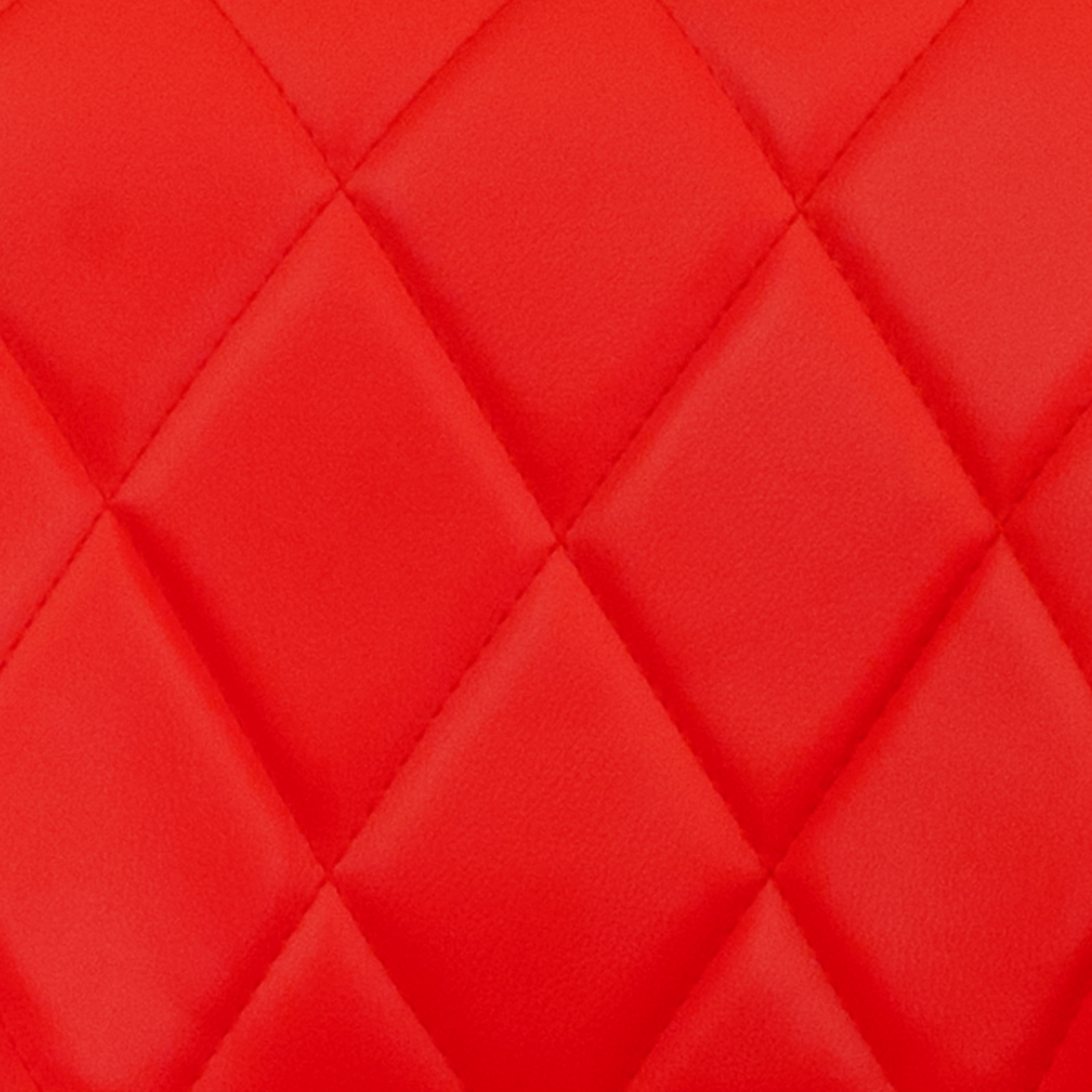 Classic style with a little zing perfectly describes this red upholstered adjustable height barstool with a diamond patterned back. A bucket seat design will make this a great accent chair around the bar area or kitchen and the easy to clean vinyl upholstery is an added bonus. The height adjustable swivel seat adjusts from counter to bar height with the handle located below the seat while the chrome footrest supports your feet while also providing a contemporary chic design. To help protect your floors, the base features an embedded plastic ring.