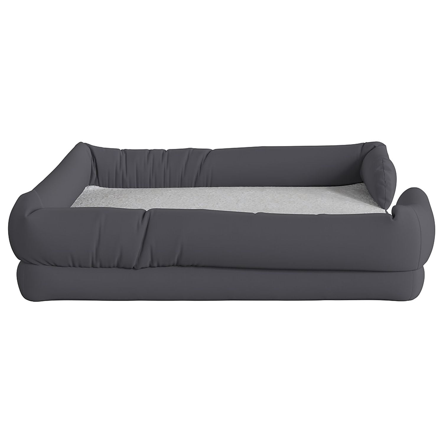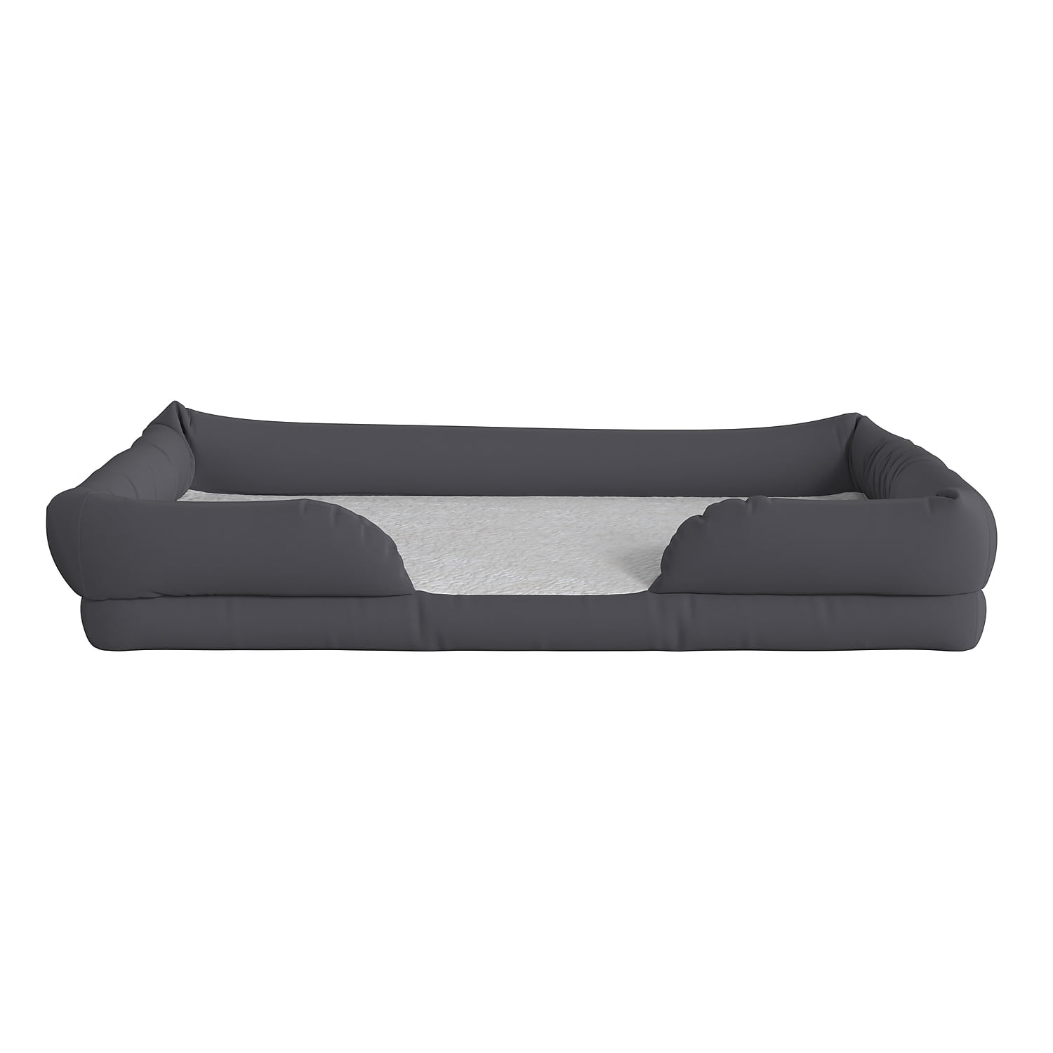 44″ x 34″ Comfy Orthopedic Memory Foam Dog Bed for Small Breeds up to 44 Pounds Gray Polyester Bolster Style Sides and Back provide comfort and safety White Olefin Interior Sleep Surface is soft and comfortable Memory Foam Upper Layer provides cushioned softness Foam Bottom Layer prevents contact with hard flooring surfaces Non-Slip Bottom keeps bed in place during entry and exit Machine Washable in Cold Water; Tumble Dry Low Heat to maintain cleanliness Cushioned lounge bed ideal for medium dogs, cats, rabbits and other pets PRODUCT MEASUREMENTS: Overall Size: 44″W x 34″D x 3-7″H