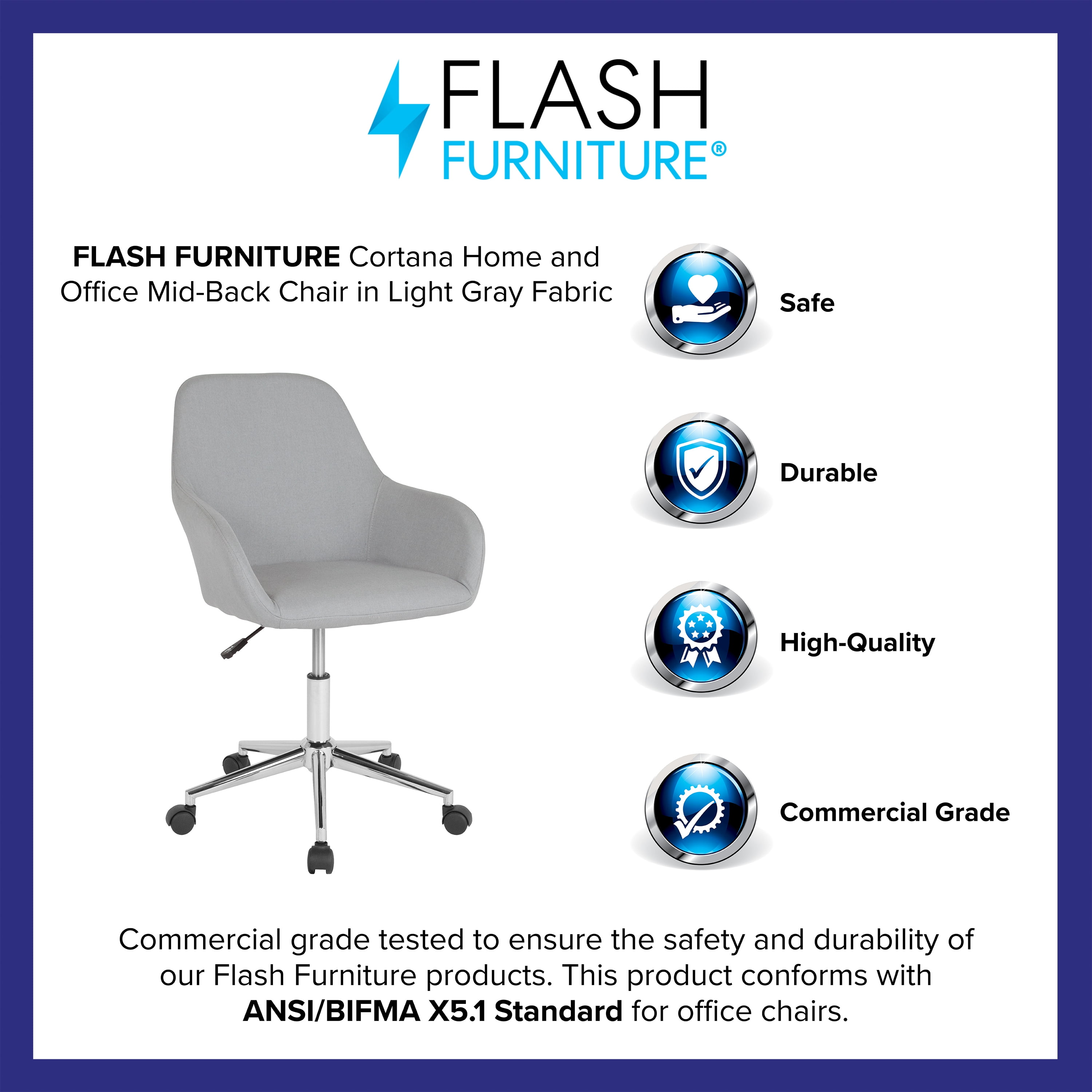 Flash Furniture Cortana Home and Office Mid-Back Chair in Light Gray Fabric