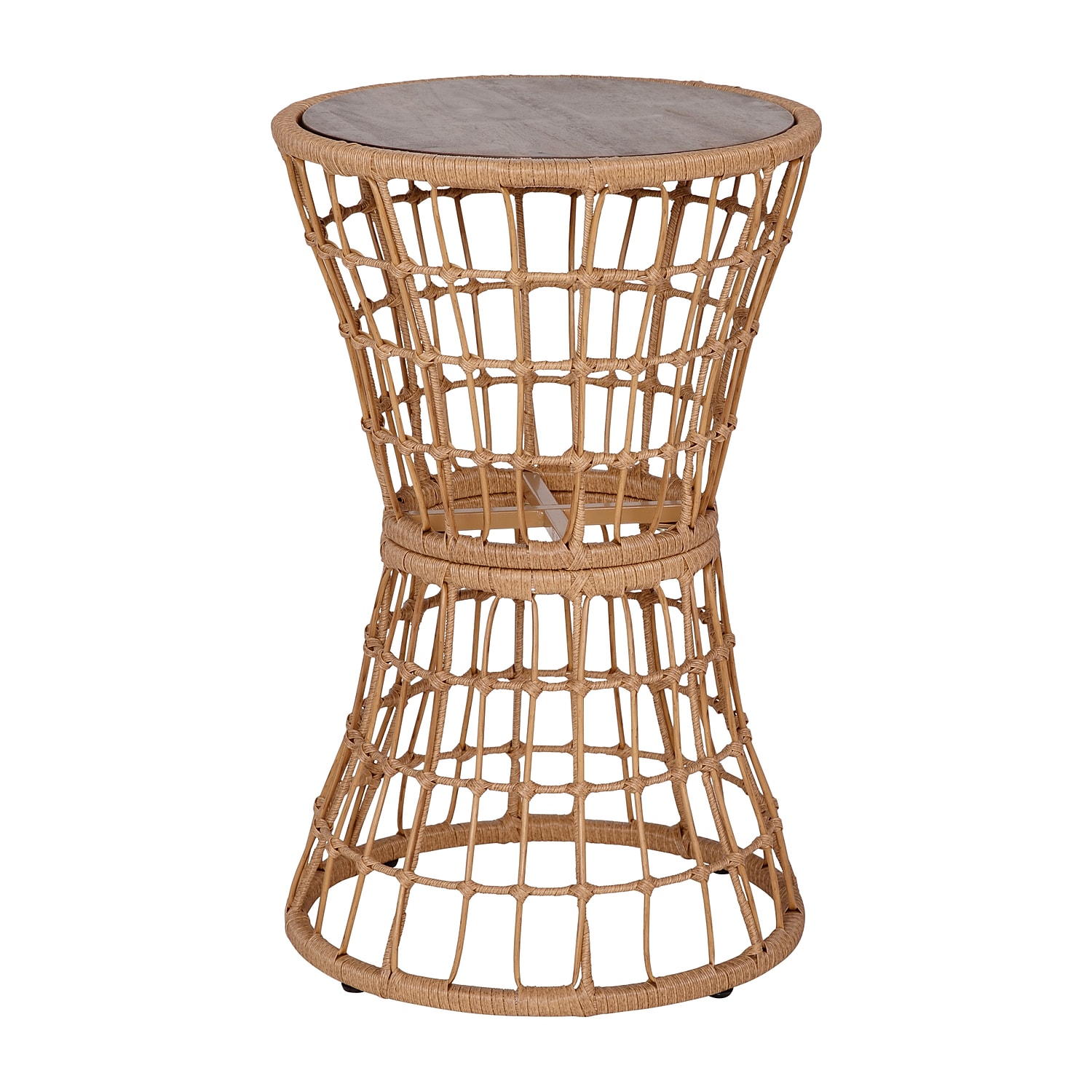 Flash Furniture Devon 3-Piece Rattan Bistro Chairs and Side Table, Natural/Light Gray