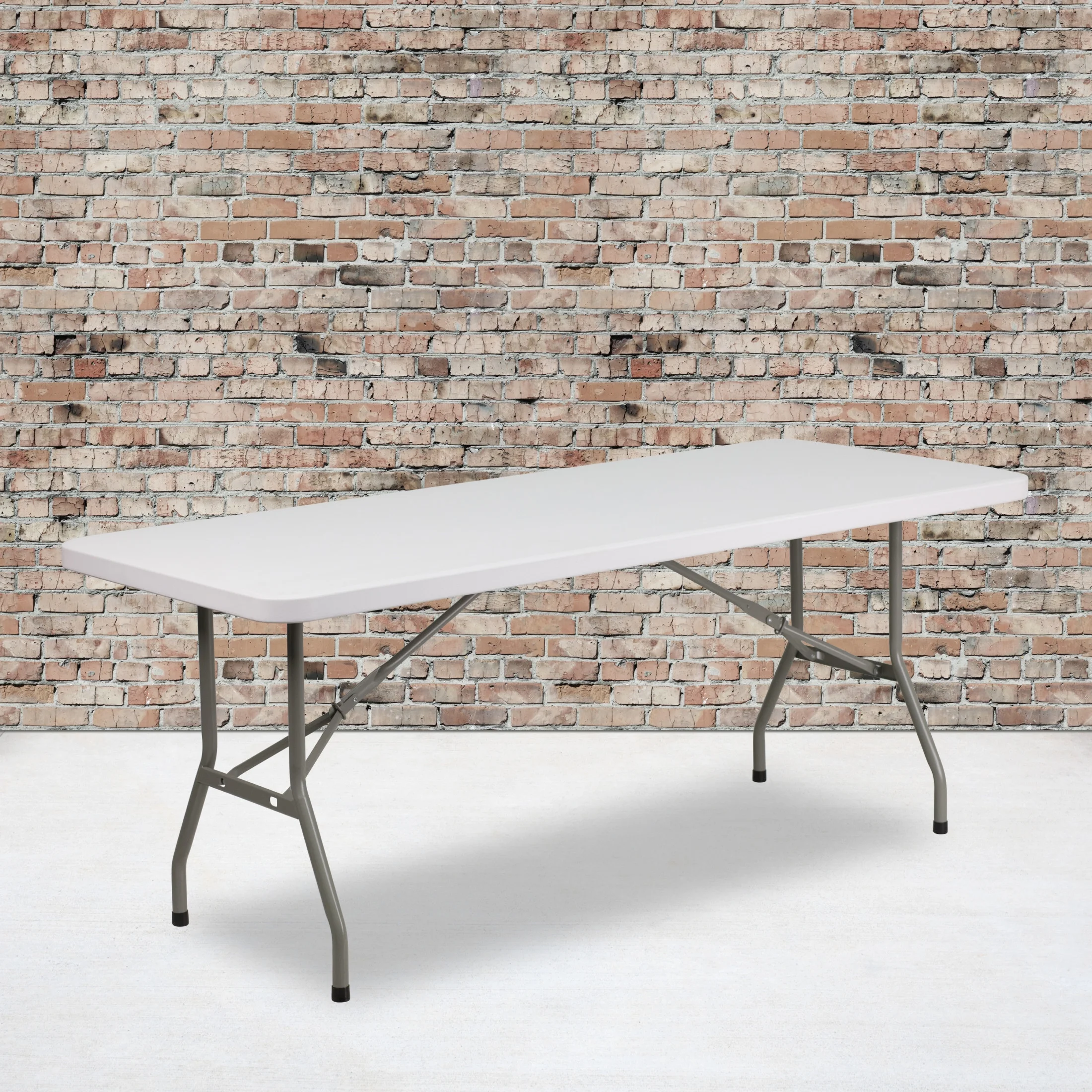 Flash Furniture Elon 6′ Rectangular All-Occasion Plastic Event Folding Table, White Comfortably seats up to 8 adults at various indoor or outdoor events Convenient foldable design for easy transportation and storage Powder-coated locking legs with non-marring floor caps 1.75″ thick waterproof and impact and stain-resistant tabletop Can be used as is or dressed up with a tablecloth to achieve a custom look No assembly required; wipes down with a solvent and water-based cleaner Overall size: 30″ W x 72″ D x 29″ H; Supports up to 330 lbs. of static weight Easy to clean – wipe down with a solvent and water-based cleaner as needed Supports up to 330 lbs. of static weight Overall size: 30″W x 72″D x 29″H NO ASSEMBLY REQUIRED: Supports up to 330 lbs. of static weight and measures 30″ W x 72″ D x 29″ H with no assembly required, so you can start setting up for events right away
