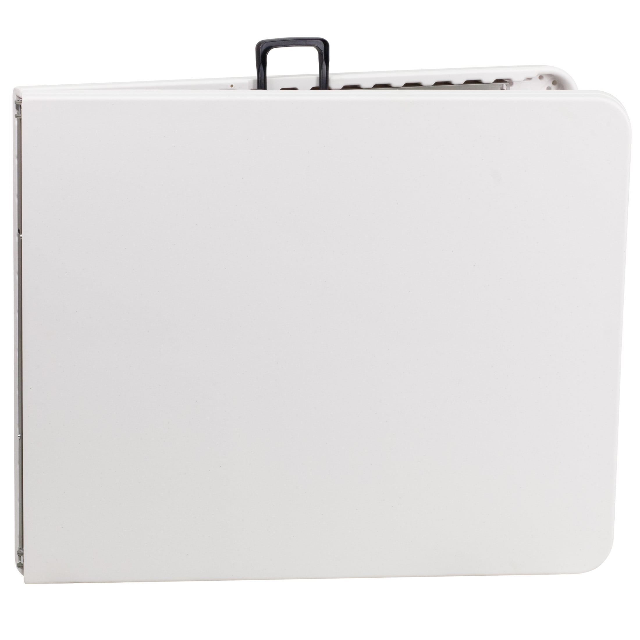 Flash Furniture Elon 6′ Rectangular Plastic Event Folding Table with Carrying Handle, White Great for a variety of indoor or outdoor home, school, or business events Comfortably seats up to 8 people during any commercial or residential event Foldable design and carrying handle for easy transportation and compact storage Can be used as is or dressed up with a tablecloth to achieve a custom look Protective non-marring floor caps Waterproof and impact and stain-resistant tabletop Durable gray powder-coated locking legs for ease of use No assembly required; clean with a solvent and water-based cleaner as needed Supports up to 330 lbs. of static weight Overall size: 30″W x 72″D x 29″H NO ASSEMBLY REQUIRED: Supports up to 330 lbs. of static weight and measures 30″ W x 72″ D x 29″ H with no assembly required, so you can start setting up for events right away