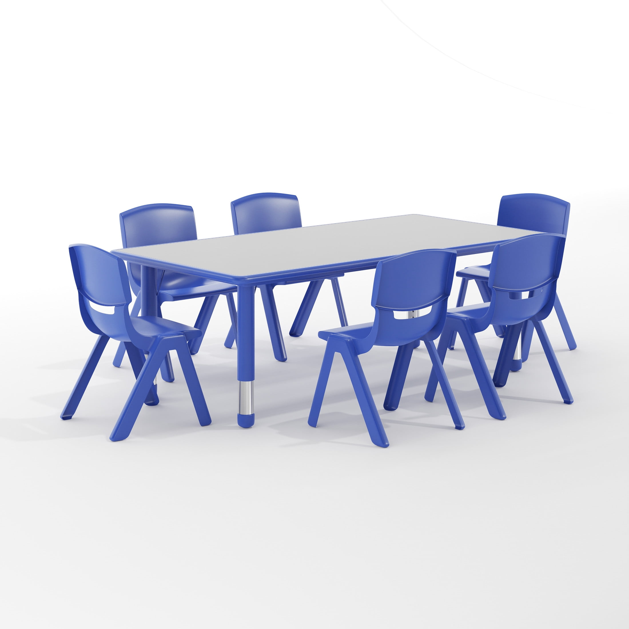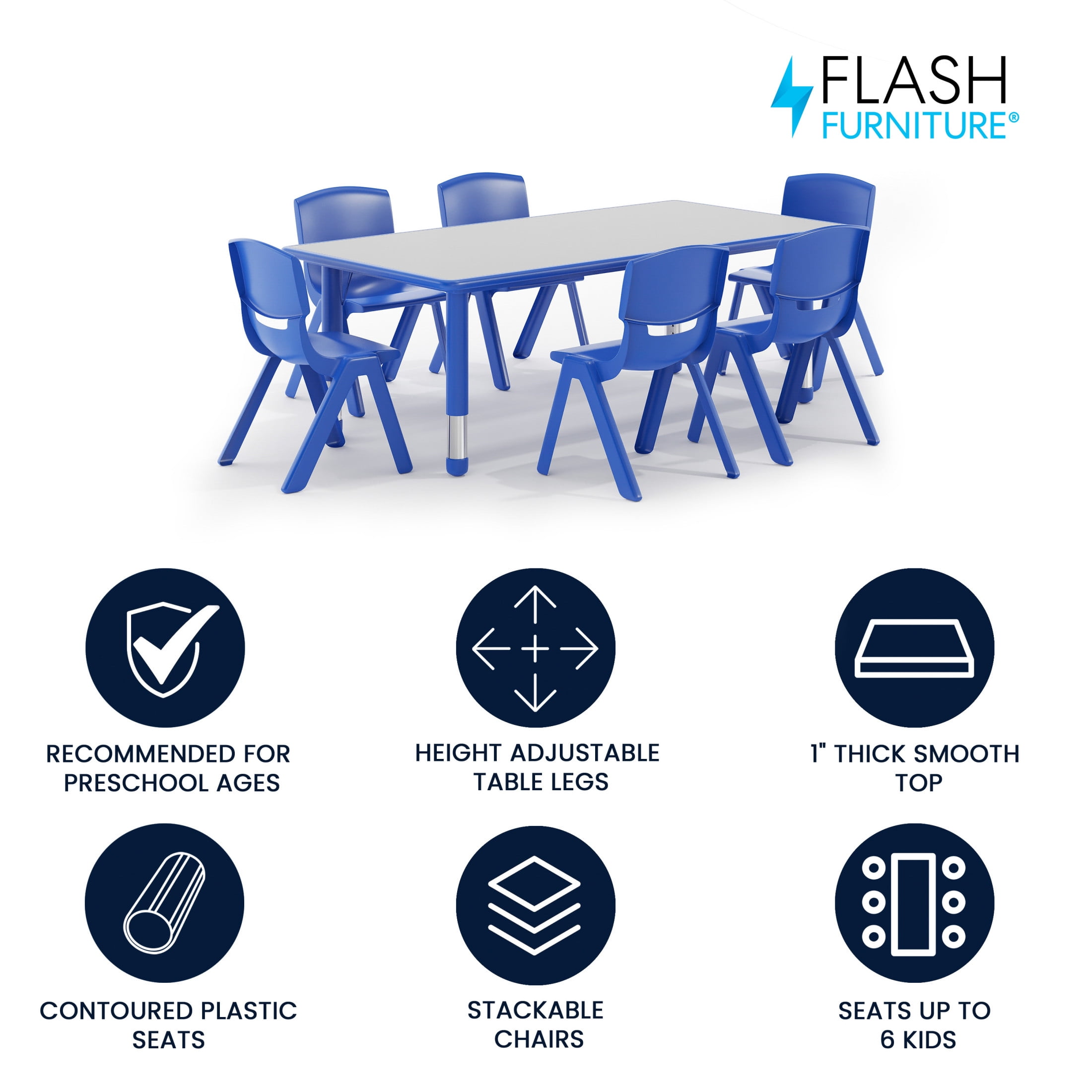 Flash Furniture Emmy Adjustable Classroom Activity Table for Kids with 6 Chairs, Blue/Gray