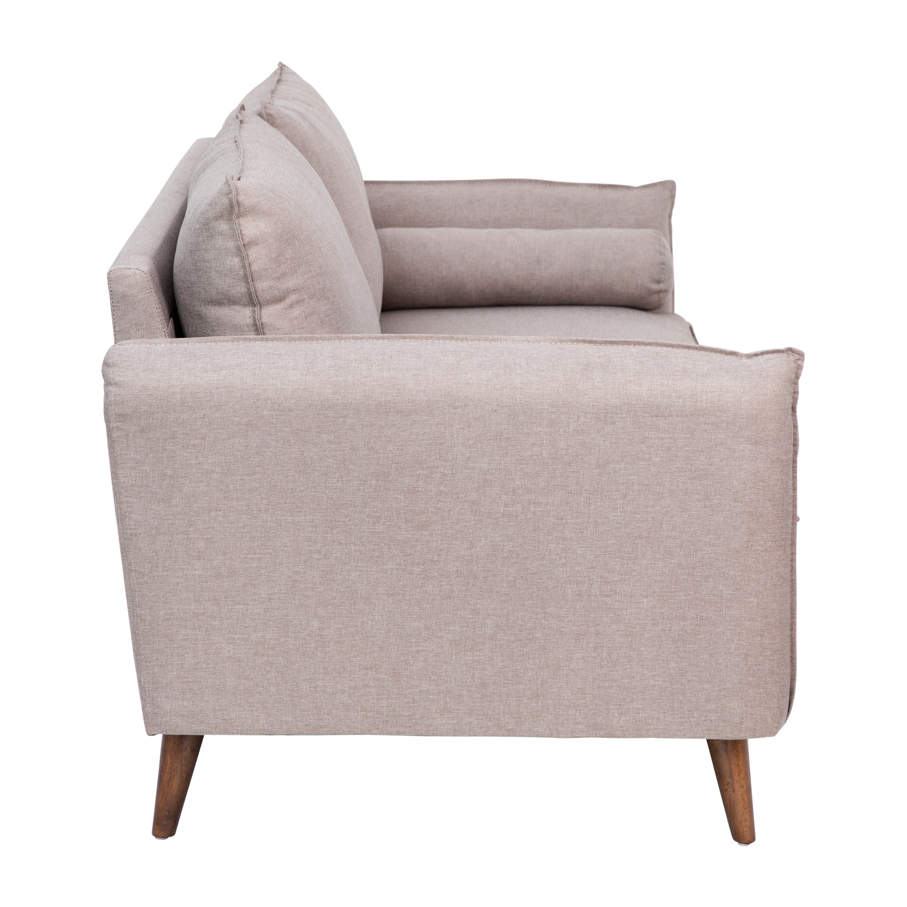 Flash Furniture Evie Collection Living Room Sofa, Taupe Fabric Mid-Century Modern Compact Upholstered Sofa Wear Resistant Stone Gray Faux Linen Upholstery Foam and Pocket Spring Back and Seat Cushions Real Wooden Legs and Frame Accommodate up to 600 LBS. Static Weight Floor Protector Fixed Plastic Glides Wipe Clean with a Damp Cloth Ships in a Single Box and Requires No Tools for Assembly in 10 Minutes Compact sofa pairs with other pieces in the collection to furnish any space PRODUCT MEASUREMENTS: Overall Size: 71.5″W x 32.5″D x 27.25-31″H; Seat Size: 49.5″W x 21-28″D x 16″H; Back Size: 49.5″W x 13-15″H; Arm Size: 25″H from floor; 9″H from seat