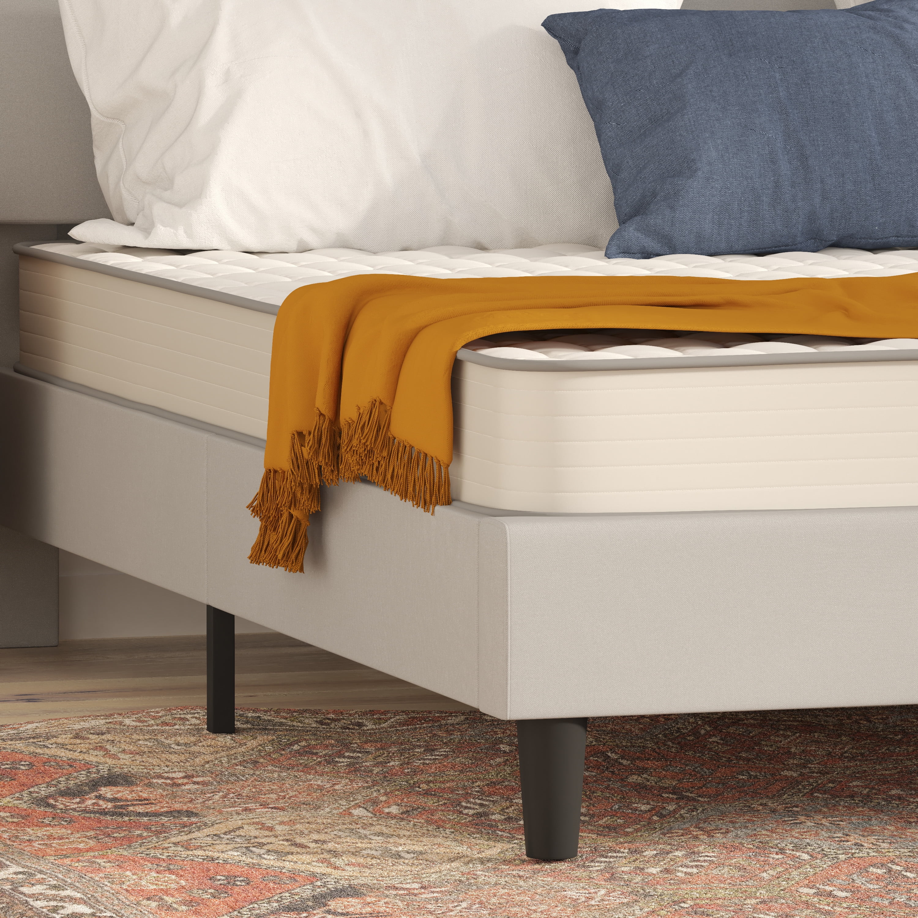 A restful nights sleep is the key to great mornings and focused, energetic days and a great mattress makes all the difference. Lay yourself down on the soft knitted fabric covering of this king bed mattress filled with premium foam and innerspring coils that provide the firmness you need, with the softness you crave. This king hybrid mattress is constructed with ultra-supportive material that cradles your body in every position, keeping your back, neck and shoulders comfortable to provide the restful sleep you and your family need. The foam is CertiPUR-US Certified so it’s free from heavy metals, phthalates, BPDE, formaldehyde and has reduced VOCs so you can rest easy knowing your indoor air quality won’t be compromised. This king-size hybrid innerspring mattress is compatible with slatted beds, platform beds, metal grids, and adjustable bed frames, when using with a standard bed frame a box spring or other foundation is required. This versatile mattress is ideal as a bunk bed mattress, day bed mattress, or RV mattress. Arriving compressed and packaged for your convenience, this king size bed in a box is easy to move wherever you need it. The top-quality construction of this hybrid mattress ensures long-lasting use and its integrated handles make transportation effortless. Perfect for your first house or apartment, or converting your child to a “big kid” bed, this king size bed mattress achieves the ideal blend of comfort, support and durability.
