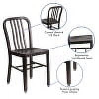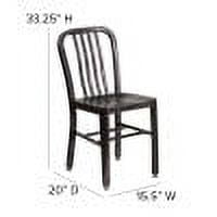 Flash Furniture Gael Commercial Grade Black-Antique Gold Metal Indoor-Outdoor Chair Industrial Modern Chair 500 lb. Static Weight Capacity Curved Vertical Slat Back Ergonomic Contoured Seat Galvanized Steel Construction Black-Antique Gold Powder Coated Frame Finish Screw Leveling Floor Glides Designed for Indoor or Outdoor Use Designed for Commercial or Residential Use PRODUCT MEASUREMENTS: Overall Size: 15.5″W x 20″D x 33.25″H; Seat Size: 15.5″W x 14″D x 18.5″H; Back Size: 15.5″W x 16.5″H