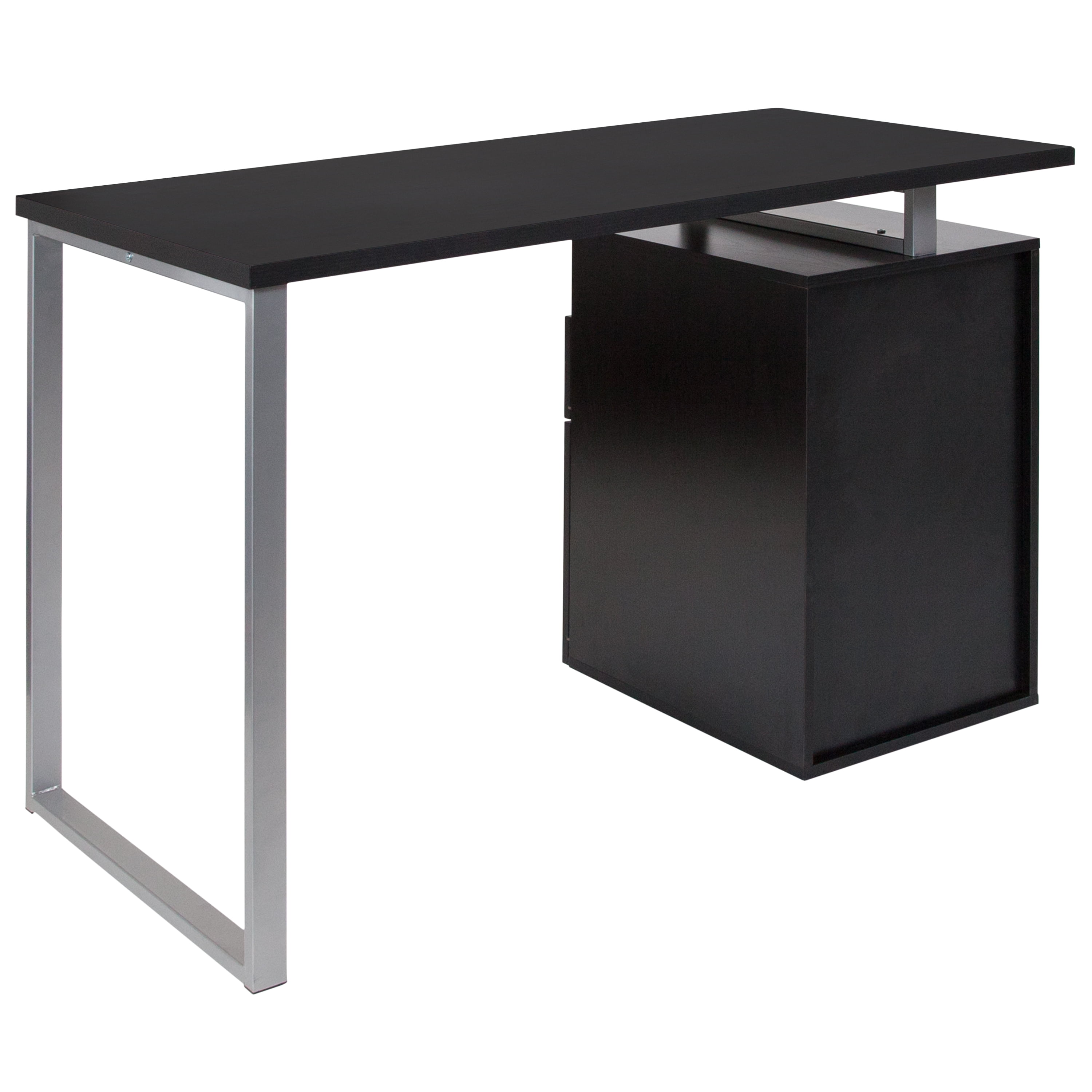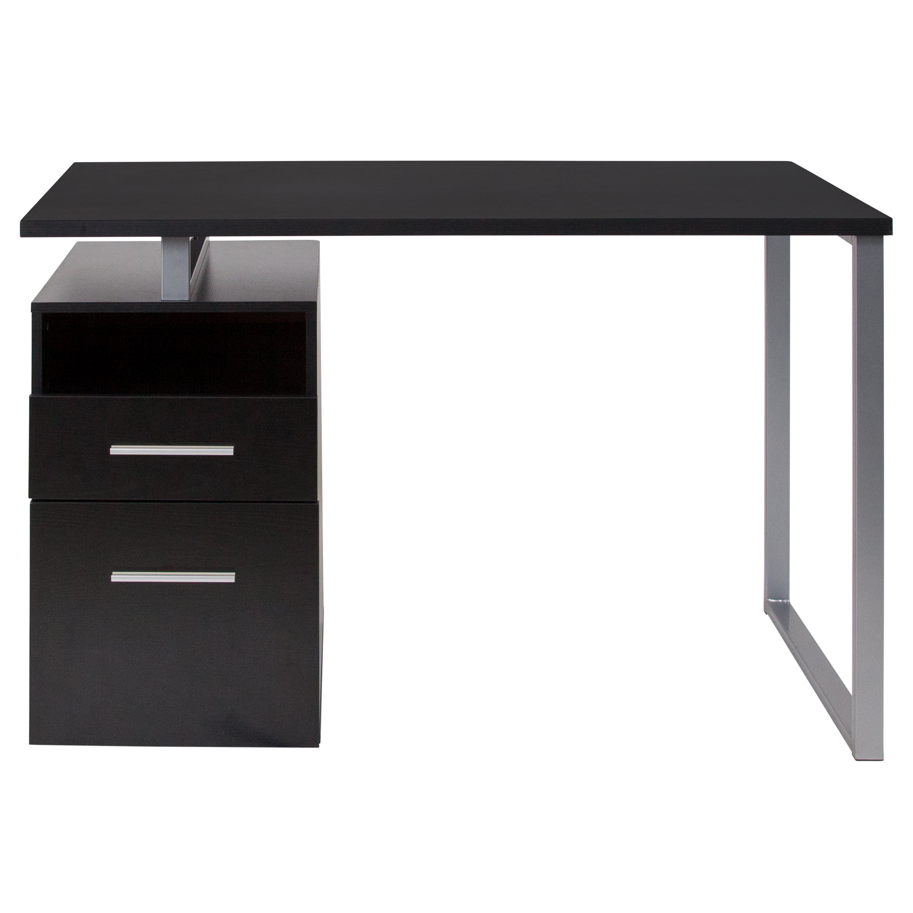 Flash Furniture Harwood Dark Ash Wood Grain Finish Computer Desk with Two Drawers and Silver Metal Frame