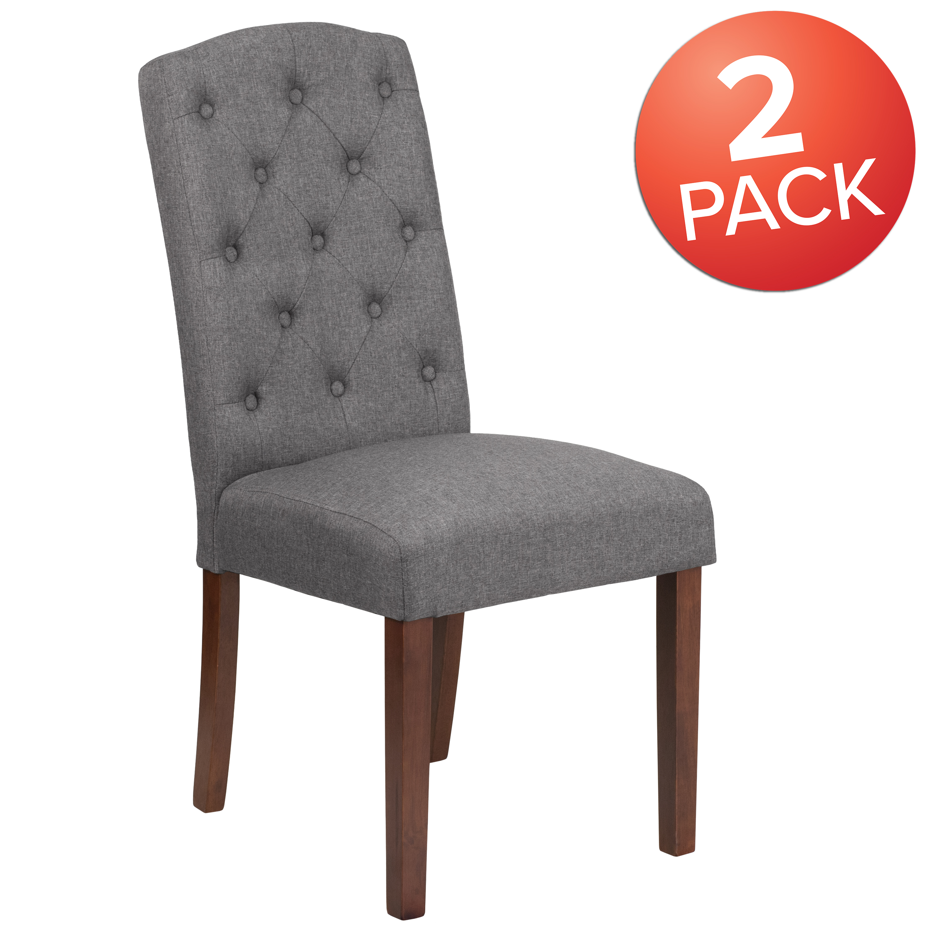 Flash Furniture HERCULES Grove Park Mid-Century Polyester Plywood Larch Tufted Accent Chairs, Gray (Set of 2) Set of 2 Mid-century Style Parsons Chairs. Upholstered in gray fabric for a modern look Features a button tufted panel back for added elegance. High-density foam padding ensures comfort during use CAL 117 fire retardant foam for safety. Sturdy mahogany wood legs provide durability Equipped with floor protector plastic glides to prevent scratches. Designed for residential use only Product Measurements: Overall Size: 18.25″W x 26.25″D x 38.5″H; Seat Size: 1518″W x 17.5″D x 19.5″H; Back Size: 15″W x 21.5″H