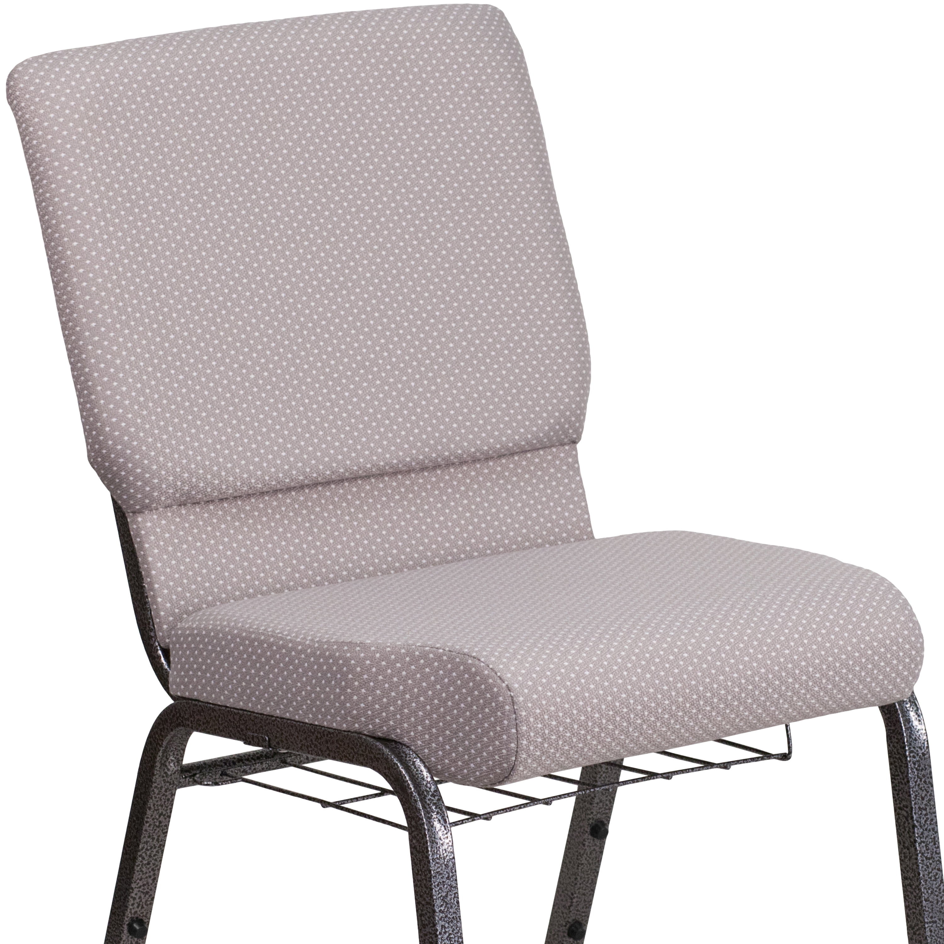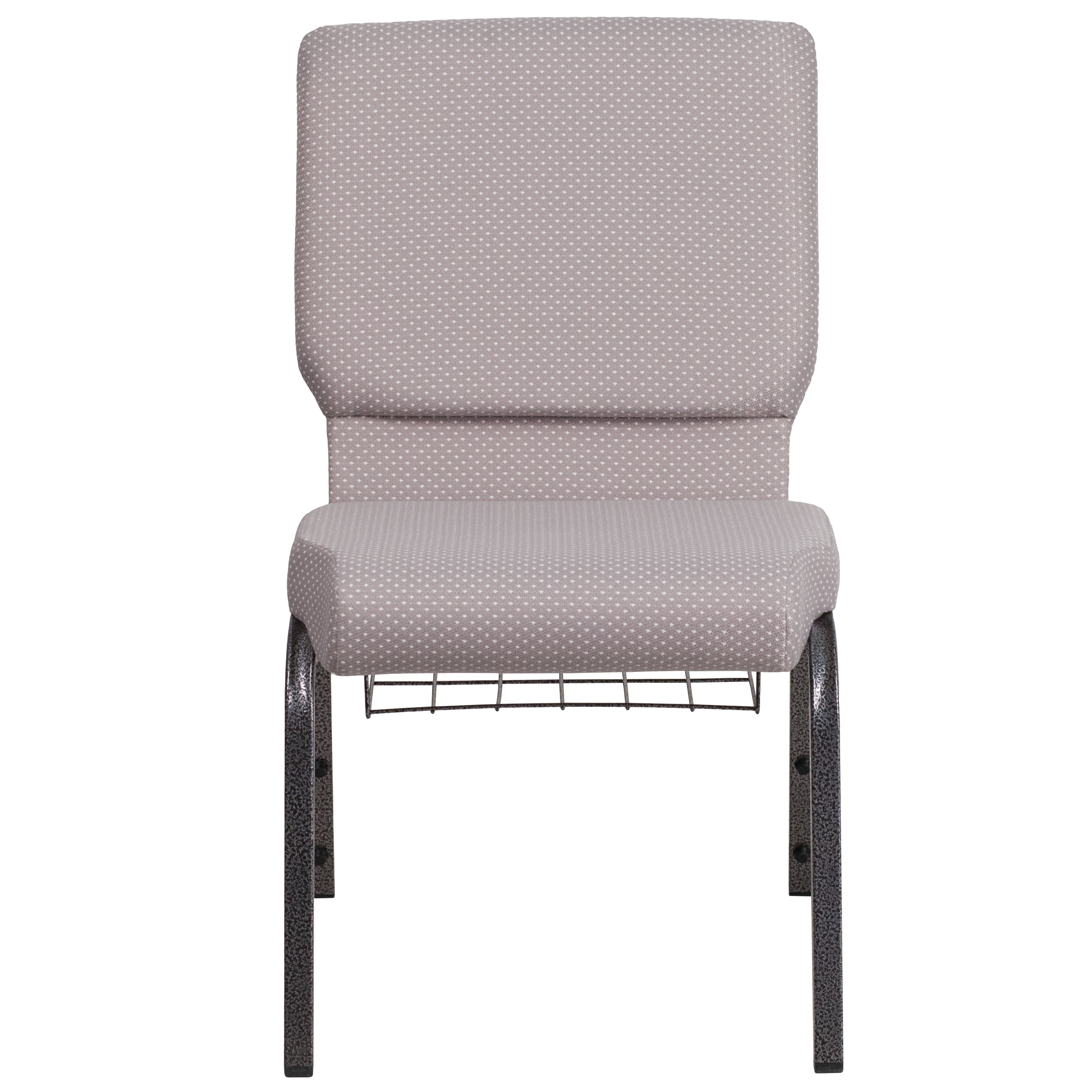 Flash Furniture HERCULES Series 18.5”W Church Chair in Gray Dot Fabric with Book Rack – Silver Vein Frame