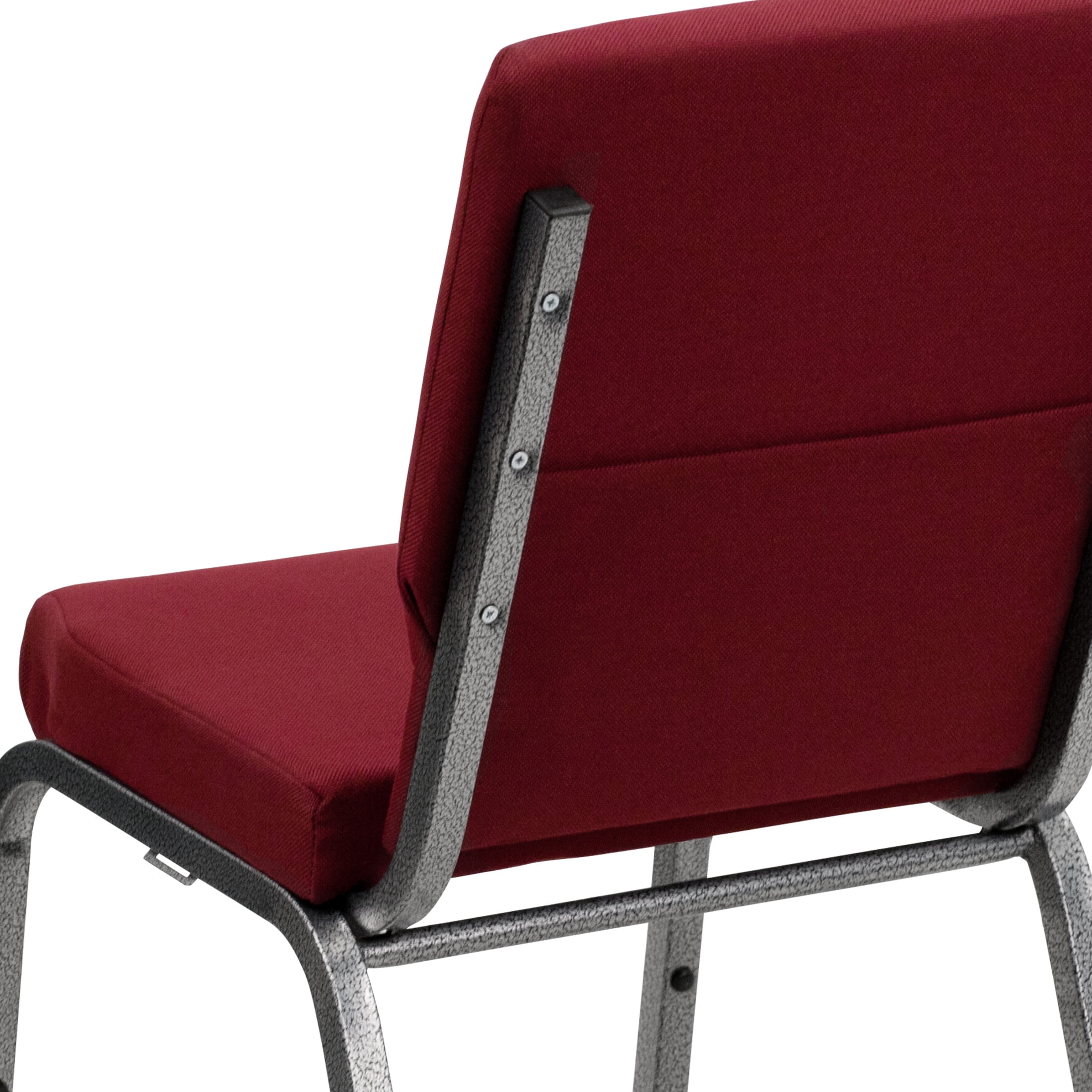 Flash Furniture Hercules Series 18.5″W Upholstered Adult Church Chair with Book Pouch, Burgundy 4″ thick, generously padded 18.5″ wide seat Extra wide seat with ergonomic waterfall edge Seat and back are covered in an elegant fabric upholstery Book pouch on back for seminar materials, bibles, or hymn books Constructed with sturdy 16-gauge steel, copper vein frame with angled legs Plastic rocker glides protect your floor Supports up to 800 lbs. of static weight PRODUCT MEASUREMENTS: Overall Size: 19″W x 24″D x 33″H; Seat Size: 19″W x 16.25″D x 17.5″H; Back Size: 19″W x 18″H