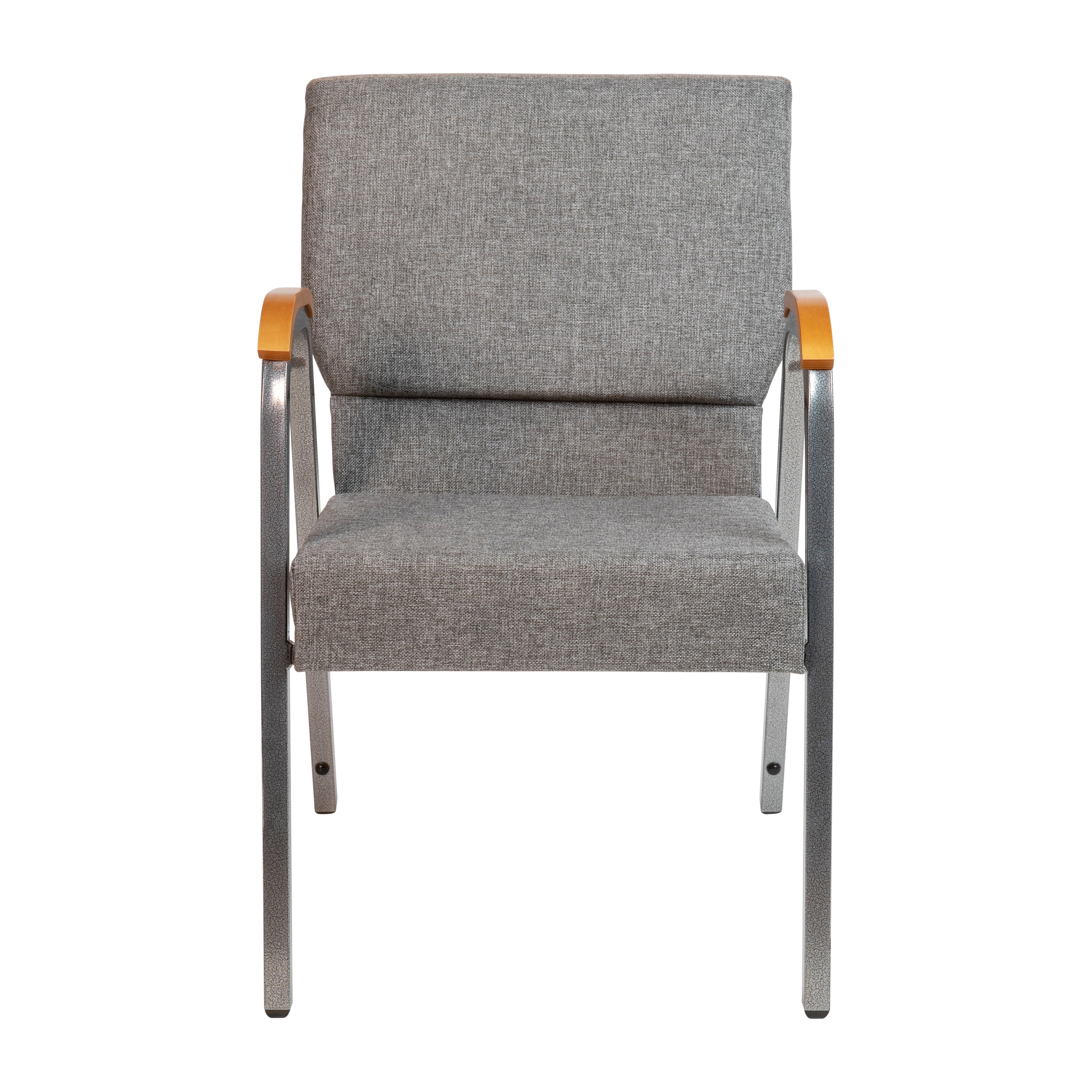 Flash Furniture HERCULES Series 21″W Stacking Wood Accent Arm Church Chair in Gray Fabric – Silver Vein Frame