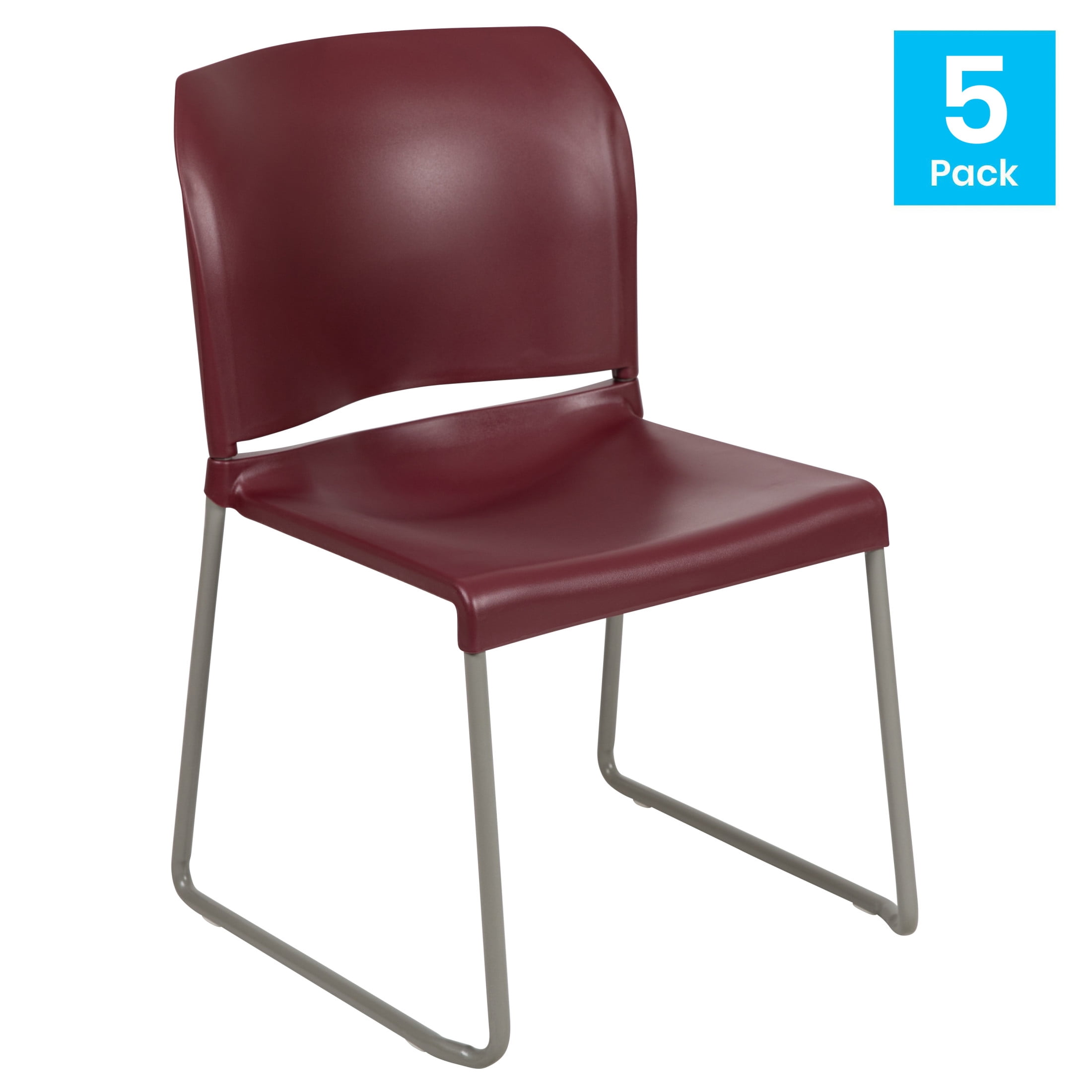 Flash Furniture HERCULES Series 5 Pack 880 lb. Capacity Burgundy Full Back Contoured Stack Chair with Gray Powder Coated Sled Base