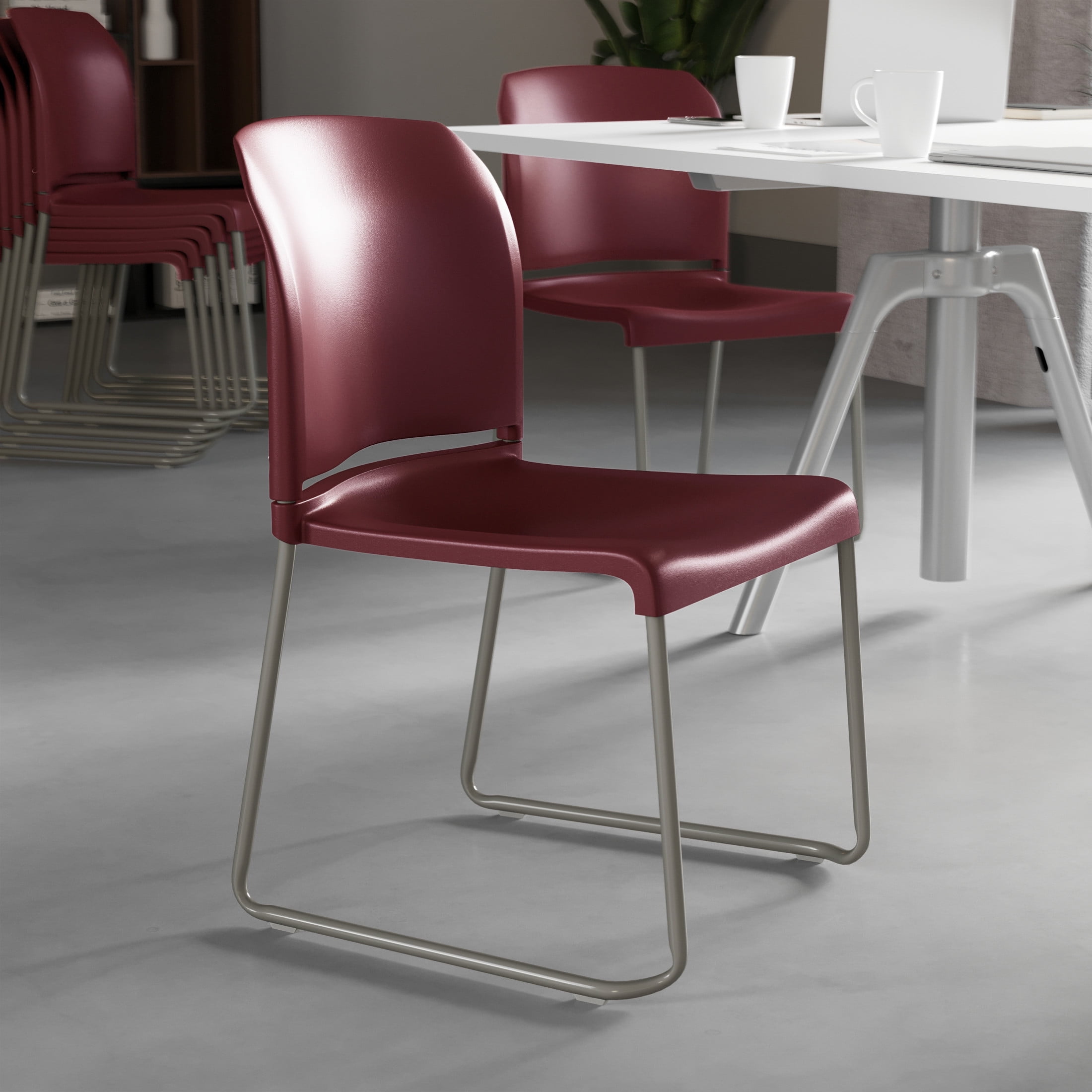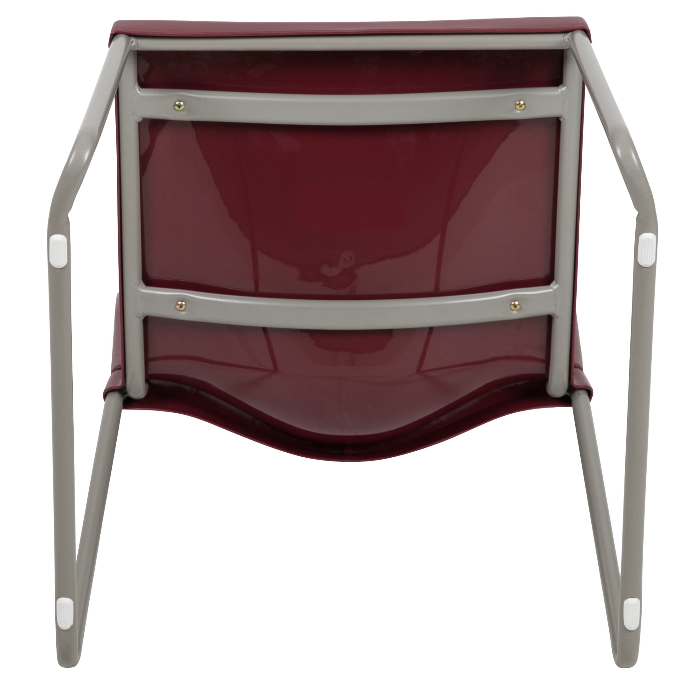 Flash Furniture HERCULES Series 5 Pack 880 lb. Capacity Burgundy Full Back Contoured Stack Chair with Gray Powder Coated Sled Base Set of 5 Multipurpose Stack Chairs 880 lb. Weight Capacity Stack Quantity: 5 Ergonomically Contoured Design with Burgundy Plastic Back and Seat Polypropylene Material Gray Powder Coated Sled Base Frame Floor Protector Plastic Glides Limited Lifetime Warranty on Frame Designed for Commercial Use Ships Fully Assembled PRODUCT MEASUREMENTS: Overall Size: 19.5″W x 23.75″D x 32″H; Seat Size: 18″W x 17.5″D x 17″H; Back Size: 19.5″W x 16″H; No Assembly Required
