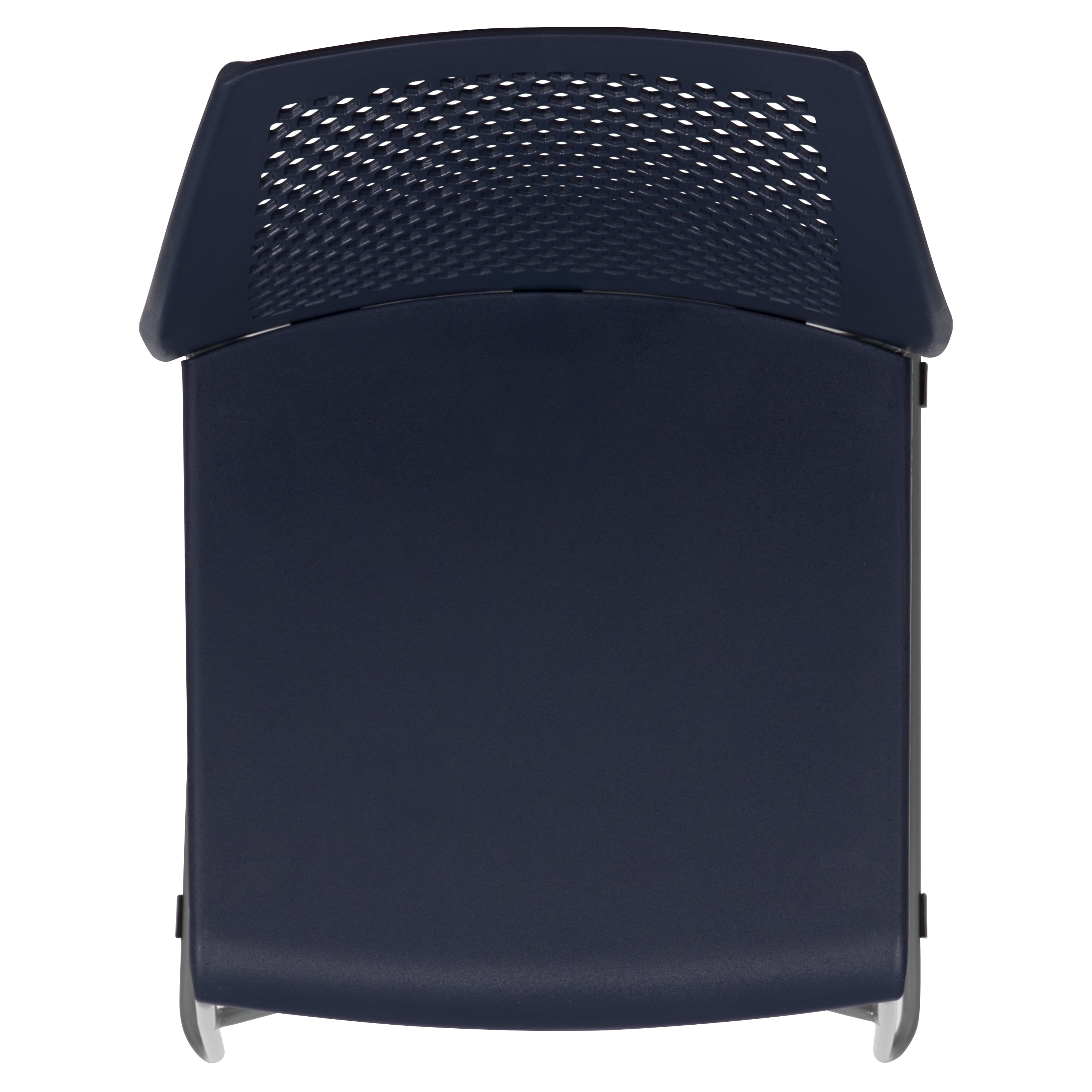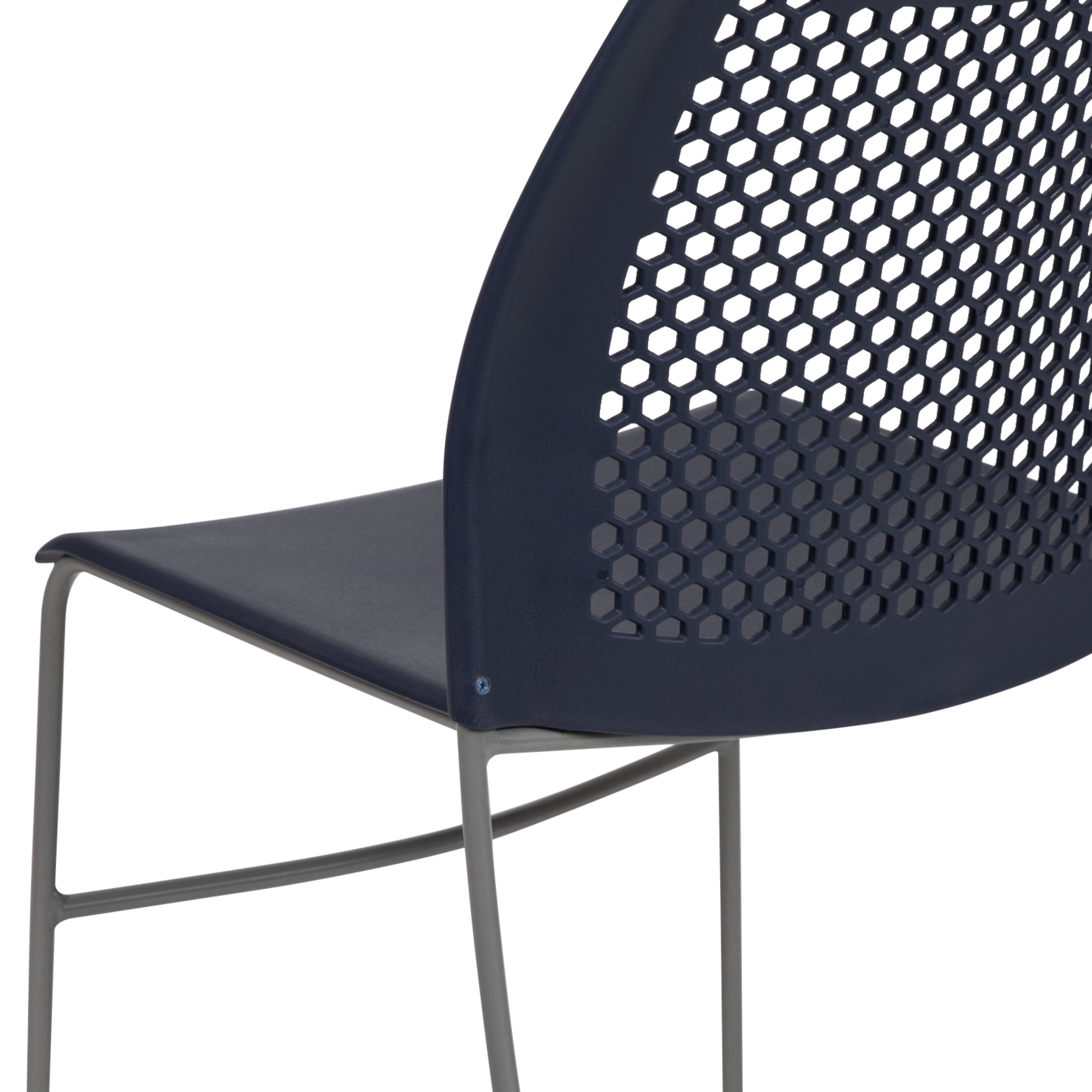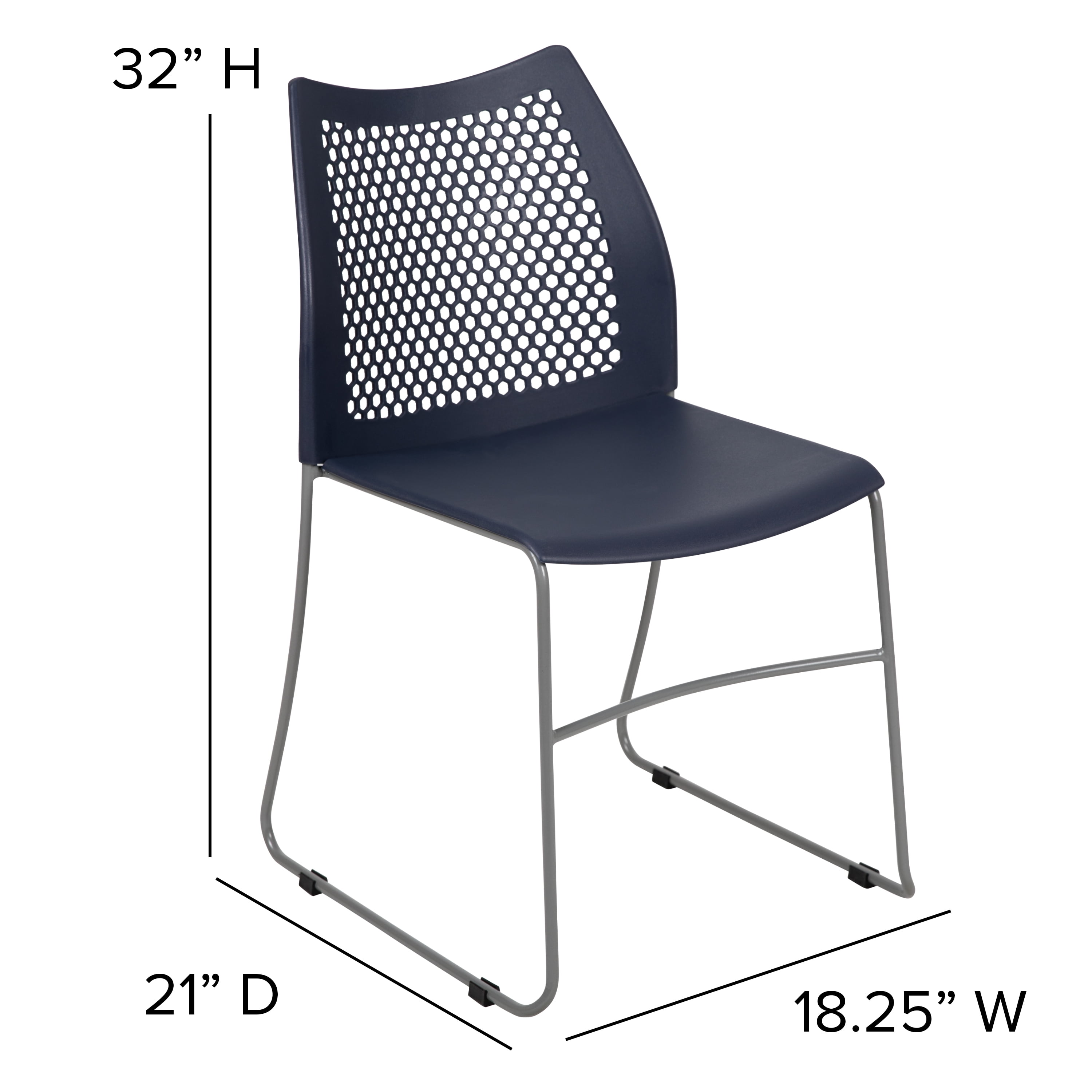 Flash Furniture HERCULES Series 661 lb. Capacity Navy Stack Chair with Air-Vent Back and Gray Powder Coated Sled Base