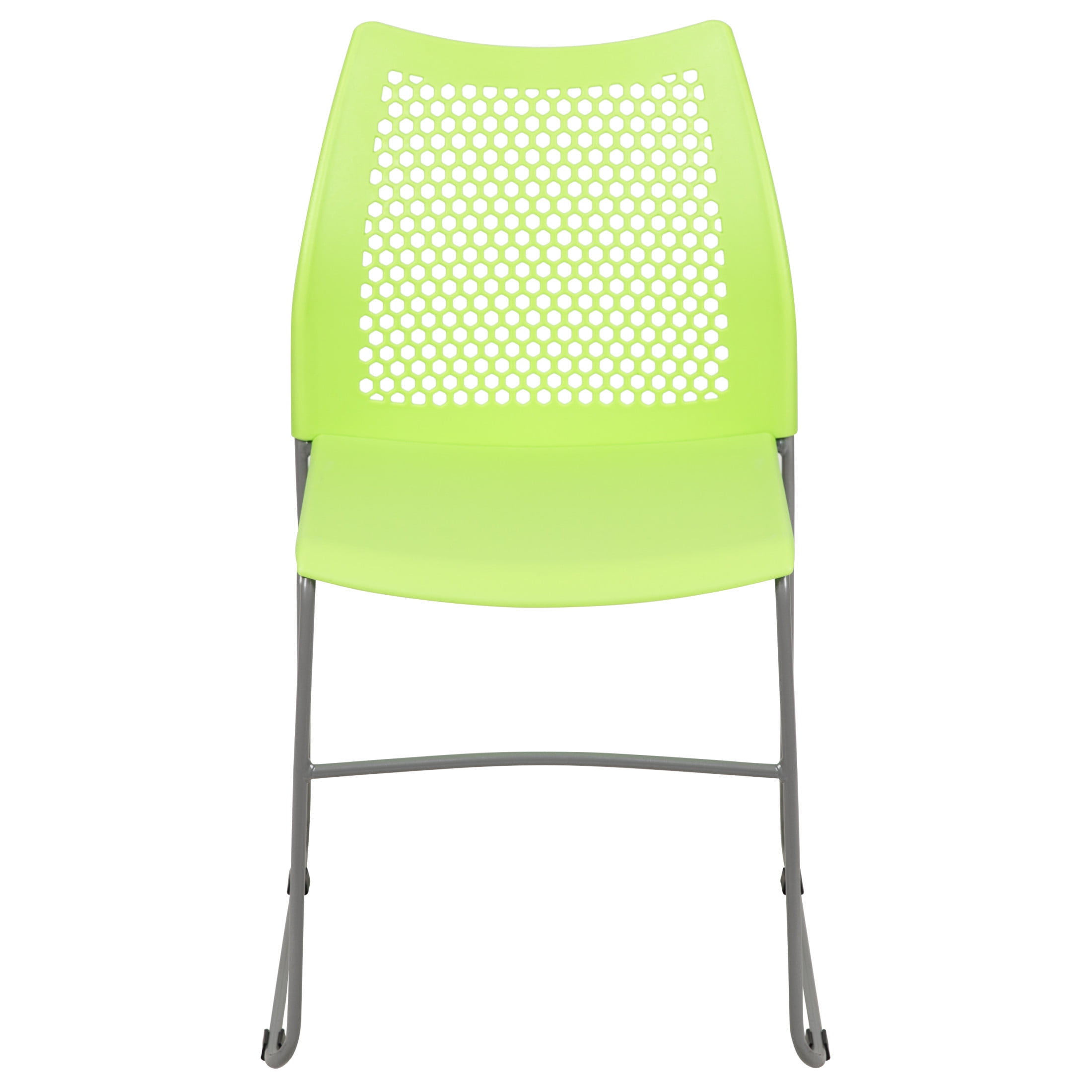 Flash Furniture Hercules Series Adult Air-Vent Back Stacking Waiting Room Chairs, Set of 5, Green Set of 5 adult size stacking chairs for residential or commercial spaces Creates a welcoming atmosphere in lobbies, offices, training rooms, or libraries Ergonomic honeycomb back provides ventilation and contours the back Curved seat with a waterfall edge Stabilizing sled base ensures that the legs won’t snap Protective plastic floor glides Constructed from heavy-duty polypropylene material Stacks up to 5 chairs high for compact storage Supports up to 661 lbs. of static weight Overall size: 18.25″W x 21″D x 32″H; Seat size: 16.25″W x 16.75″D x 18″H; Back size: 13.5″W x 17.75″D x 14.5″H NO ASSEMBLY REQUIRED: Each chair measures 18.25″W x 21″D x 32″H with no assembly required, and they stack up to 5 high for compact storage in between uses